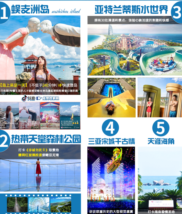 🌴经典景区:网红景点轻松打卡:亚特兰蒂斯+千古情+玻璃栈道, 蜈支洲VIP快速通道上下岛。