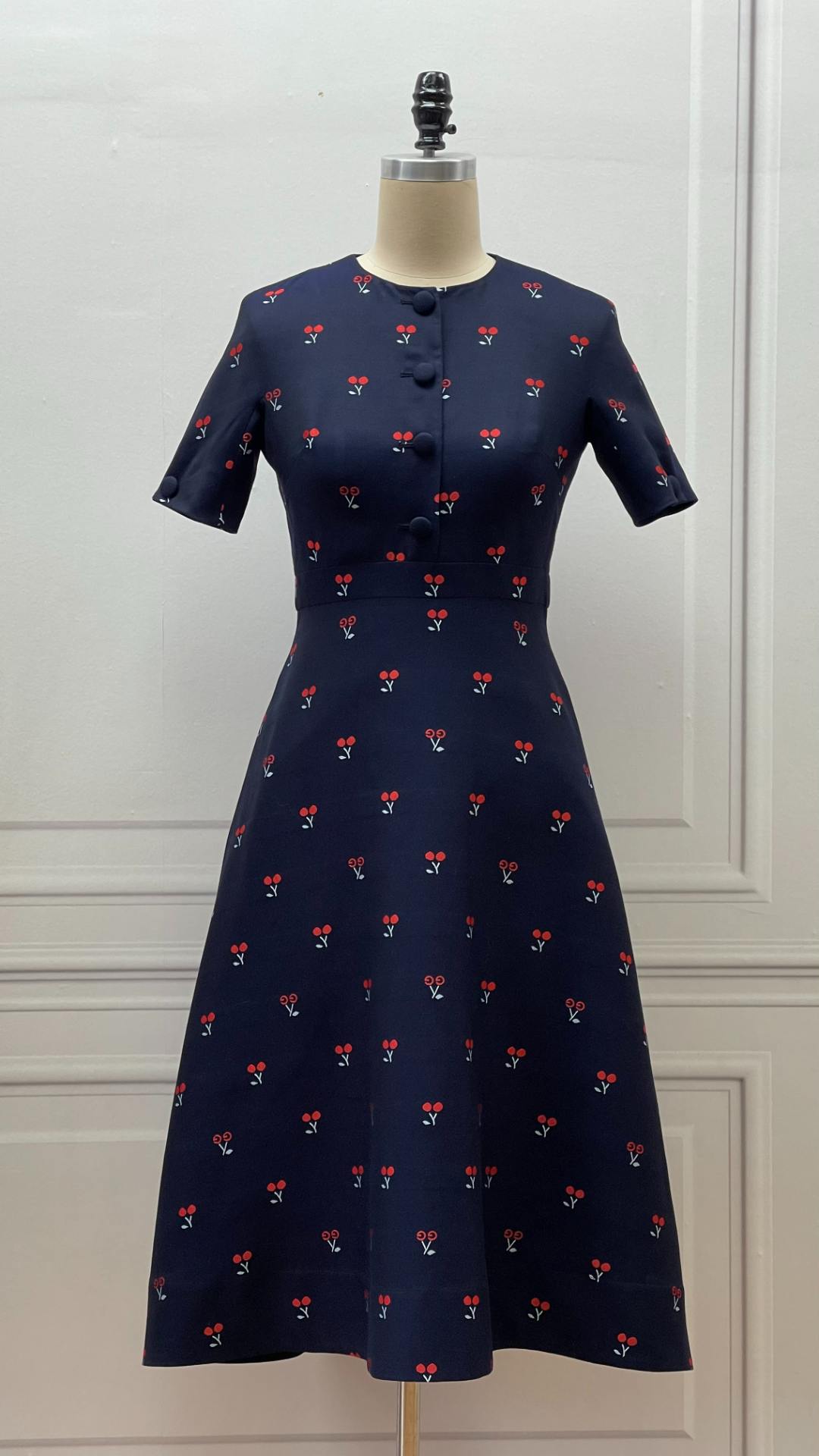 樱桃款-古着新穿-法式复古优雅赫本风修身轻奢高腰连衣裙 2201056