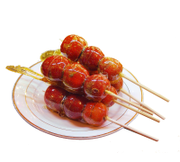 山楂洗净,去掉头部的缔结部分,用竹签串好。当然,不串也是可以的,做成功就是一个一个的糖葫芦球。