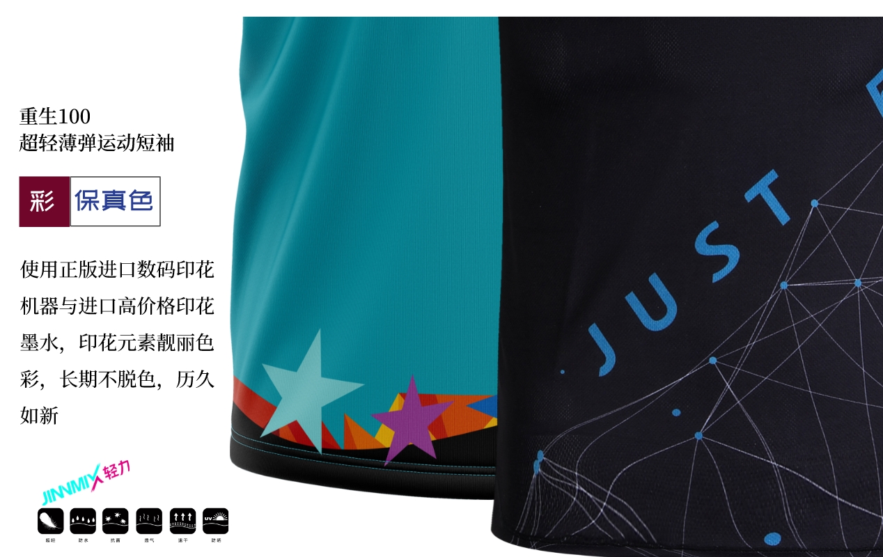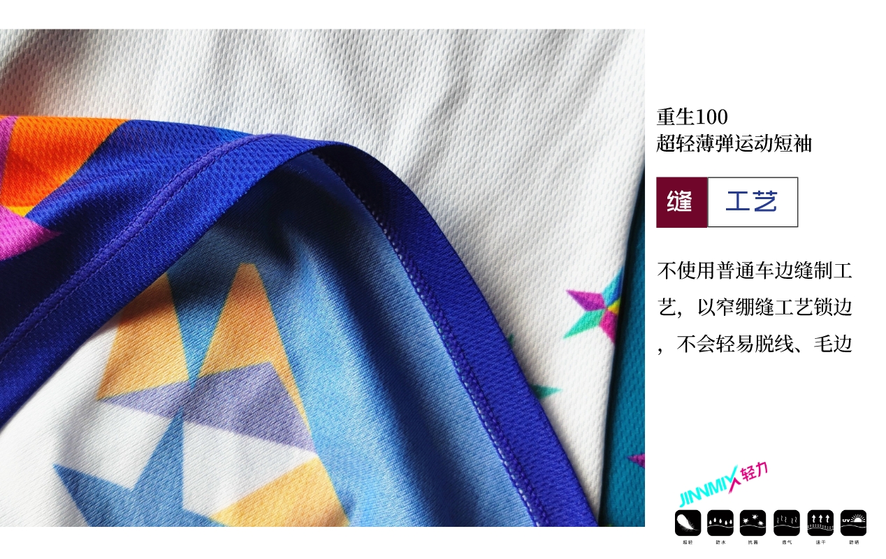 科技数码进口墨水印染,呈现多彩个性;插肩袖与窄绷缝工艺,人体工学更加保护肌肤。