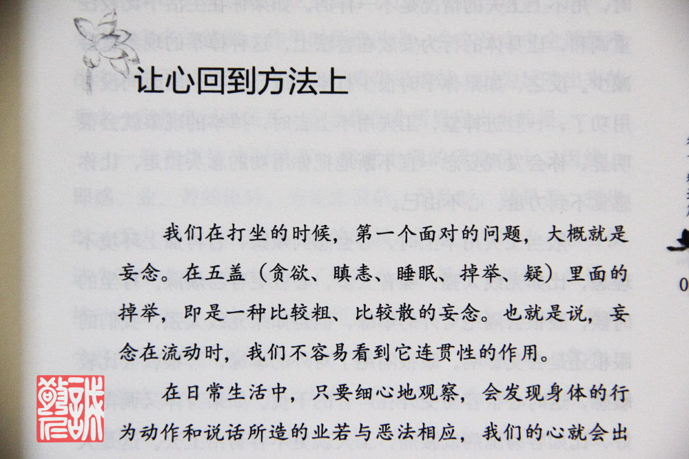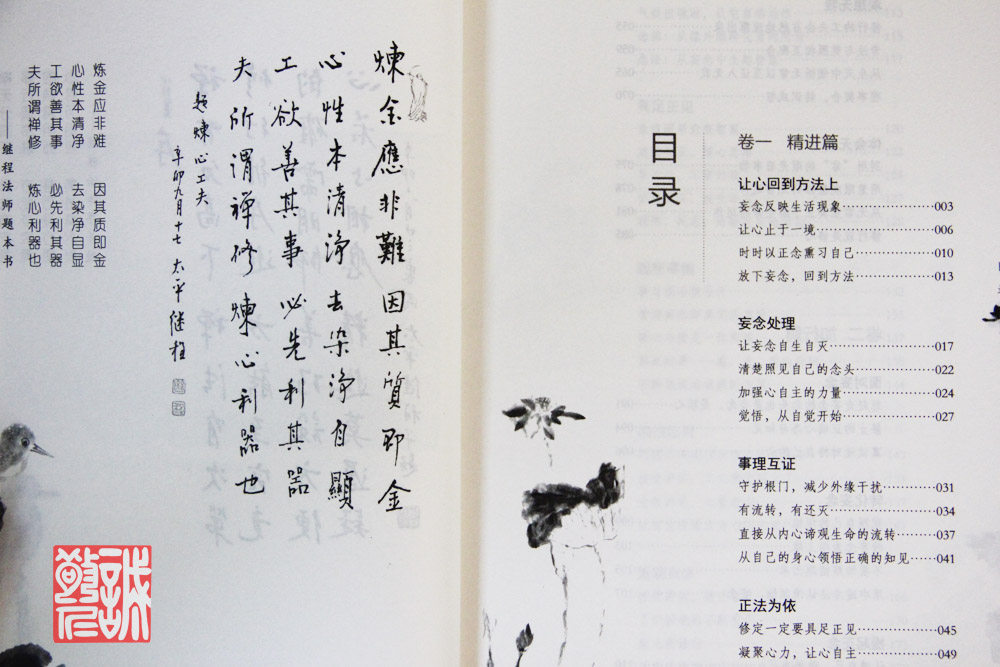 【基本信息】: 产品名称:练心工夫 作 者:继程法师 著 出 版 社:世界知识出版社 出版时间:2012-8-1 版 次:1 页 数:234 字 数:149000 印刷时间:2012-8-1 开 本:32开 纸 张:胶版纸 印 次:1 I S B N :9787501243075 包 装:平装 定 价:25.00元 【作者简介】: 继程法师,1955年生于马来西亚,1978年依止竺摩上人出家,同年赴台湾松山寺依ED顺导师受具足戒,并于佛光山佛教研究院研究部研读佛法,亲近星云法师。后依圣严法师修习禅法,对佛法的认识从了解而进入体验,并一直依此精进修行和系统教学,是为圣严法师的法子。 曾于马来西亚闭关一千日。出关后,积极弘法利生,在世界各地主持一系列佛学讲座和禅修课程。且为了使讲课内容超越具体时空和情境限制而让更多读者受益,法师精心著述,出版有《一代人天师范》、《心经的智慧》、《心的锻炼》、《练心工夫》等专着、开示录、随笔集等50余种,并创作现代佛曲歌词逾百首。 法师注重契理契机地引导修习者把知见的提升和实证的修行结合起来,在生活中落实禅法。本书平实而凝练地总结了无数人的修行经验,告诉我们:人生就是修行,而修行就是修心。回到自己的心,每个人都能在自己的人生中体认和掌握一套独特的练心工夫,让自己的人生之路愈走愈开阔,行住坐卧皆得自在! 【内容简介】: 很多时候,我们常是身不由己,甚至心不由己,没办法自主。当生活上的时间表不是我们自己安排,而必须去应付一些活动时,我们就知道自己的心了。 修行,就是要提高我们的心的觉照作用。我们用方法的目的,就是让心能够安止下来。心专注在一境上一段时间后,它就有力量了。 修行要用智慧,它能帮助我们解决困境,清理自己内心的杂染。不要以为在禅堂打坐,或在家里打坐,才叫有修行。我们要把打坐修行的力量,或受熏的智慧,在生活中一分一分地发挥出来。 只要很用心地修行,就会发觉我们内心的修养会在现实生活中很自然地流露出来。修行的工夫与生活不是两回事。 【目录】: 卷一 精进篇 让心回到方法上 妄念反映生活现象 让心止于一境 时时以正念熏习自己 放下妄念,回到方法 妄念处理 让妄念自生自灭 清楚照见自己的念头 加强心自主的力量 觉悟,从自觉开始 事理互证 守护根门,减少外缘干扰 有流转,有还灭 直接从内心谛观生命的流转 从自己的身心领悟正确的知见 正法为依 修定一定要具足正见 凝聚心力,让心自主 熏习久了,自然与佛法相应 观想无我 修行的工夫会自然地流露出来 专注与觉照相互配合 从生灭中领悟无常以至证入无我 理事契合,转识成智 体会无常 别用“常”的眼光看事物 用慧眼观微细的无常运作 从无常里真正了解生命的运作 修行就是修心 卷二 加行篇 面对妄念 想赶走妄念的念头也是妄念,是嗔心 修止的正确心态与知见 真诚地对待自己的心 转化妄念 觉照自己的烦恼 转妄念为增上缘 不要怕烦恼跑出来 用中道方法认清烦恼、妄念 提起正念 认清自己,改善自己 【精彩内容】: 如果心很专注,就可以跟随着每一个动作,觉察到每一个刹那的动作。平常我们拜佛都是觉察到比较大的动作,一些比较细微的动作是觉察不到的。因此,我们觉察的作用平时还是有的,只是因为专注的作用不够,觉察的作用就不强。 另外,作意与觉察的作用在前五识里会有,但是定的作用只在意识里才有。我们平时用功,有些方法只是帮助自己觉照而已。因为我们一般的习惯都是动态比较多,感官容易接触外在的境。假如觉照作用一直是在动态中,只是前五识的作用,就没办法产生定。我们一定要把觉照的作用转成内在的意识作用,才能够有定,因为定不可能和前五识相应。前五识的作用,是不缘过去、现在、未来的;而前五根在缘境时,是刹那刹那生灭的,这不可能有定。定是心止于一境,意识是缘过去、现在、未来,才能把专注的作用连贯起来,在相对的一段时间里,保持在那个念上,或定在那个境上。 当我们能够达到专注一境时,其他的作用,包括觉照的作用一定很强。觉照的作用会不断地提醒我们把专注力收摄回来,加强我们的念力;当念的力量加强了,才能转成定。念即是把我们的心保持在那个境上,忆念着那个境,这样持续下来,便能得定。 ...... |