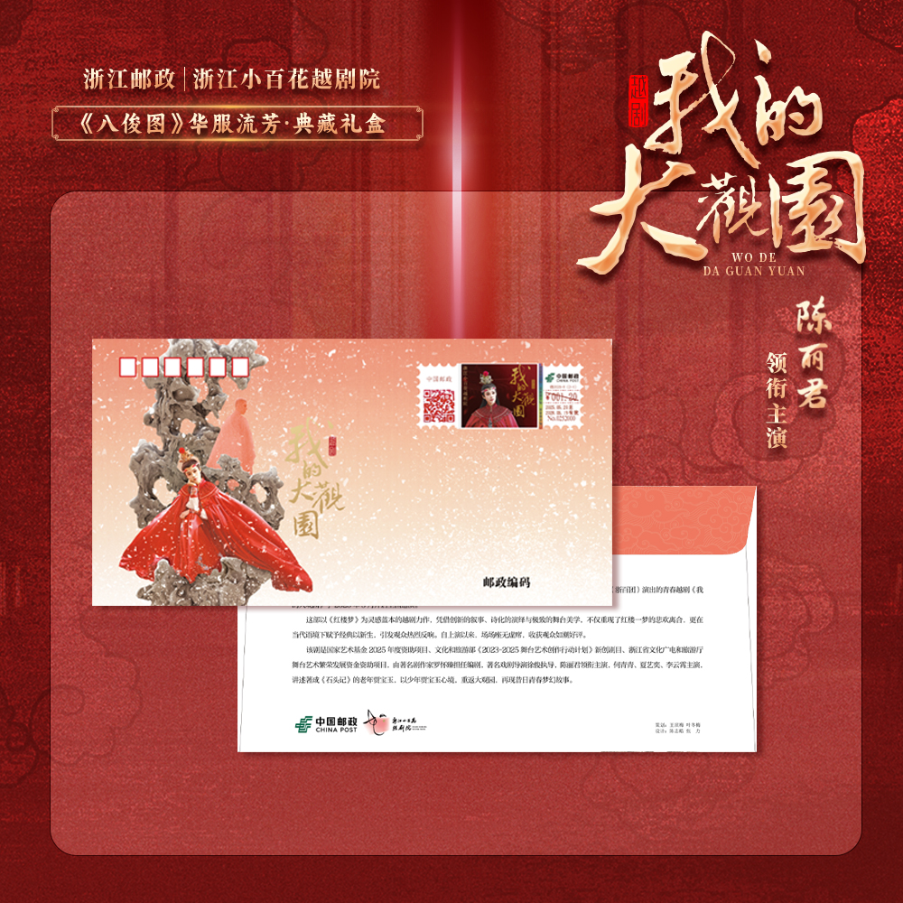 最近,浙江小百花越剧院与中国邮政联合推出的《越剧〈我的大观园〉青春芳华邮资珍藏套装》,荣获浙江省文化广电和旅游厅2025全省“浙派好礼”城市礼物文创产品大赛金奖。