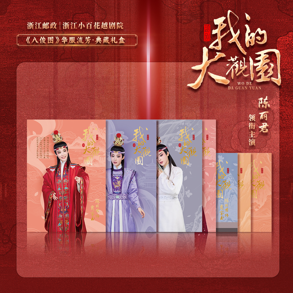 籍此,浙江小百花越剧院与中国邮政再次携手,与领衔主演陈丽君联袂钜献焕新产品:《我的大观园·八俊图》华服流芳典藏礼盒——官方完整集结八套绝美戏服剧照。