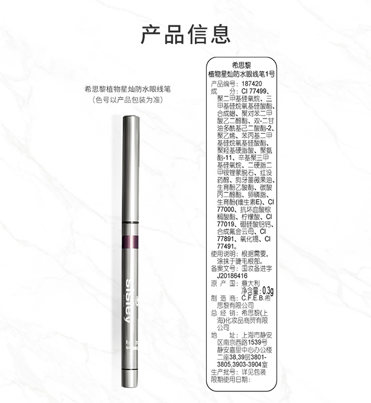 【1F】希思黎植物星灿防水眼线笔0.3g