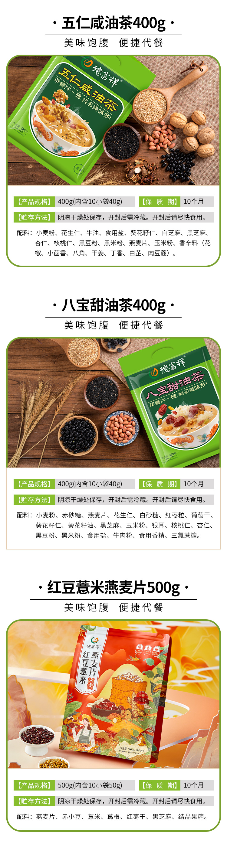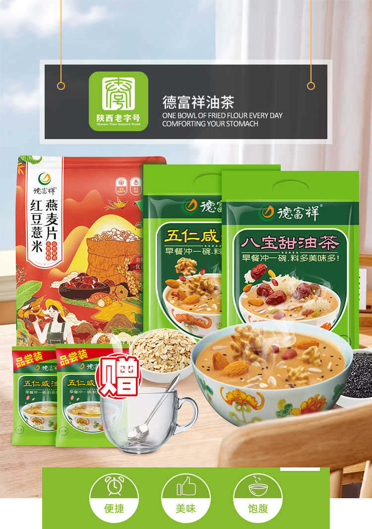 【超值5件套大礼包】400g五仁咸+400g八宝甜+500g红豆薏米燕麦片+40g五仁咸*2袋
