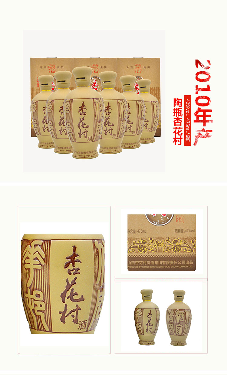 42度汾酒集团陶瓶杏花村475mL6瓶整箱