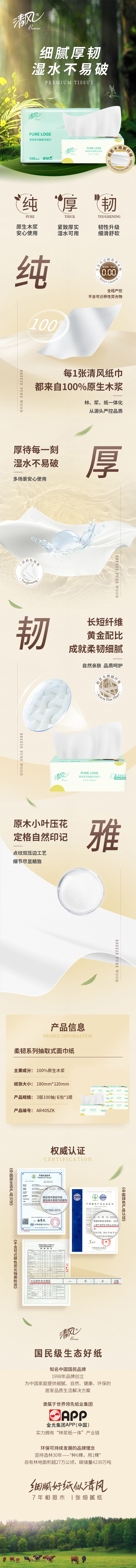 清风柔韧系列亲肤抽纸*1提,6联包/提(3层*100抽/包)AR60SZK 6922266481918