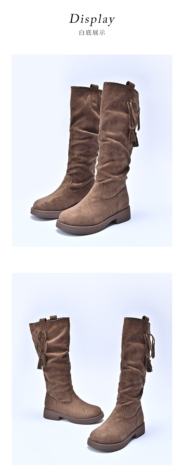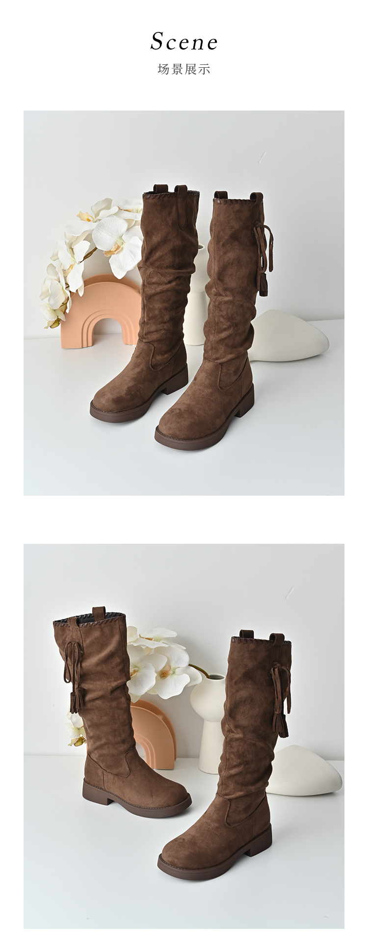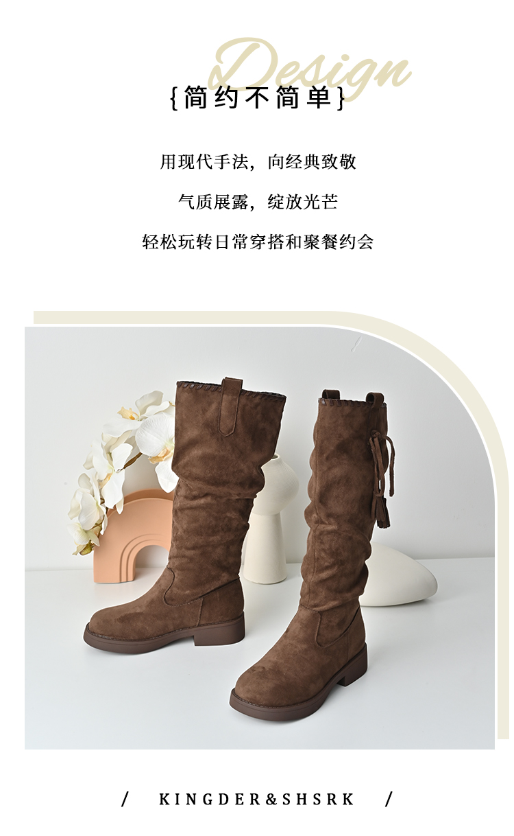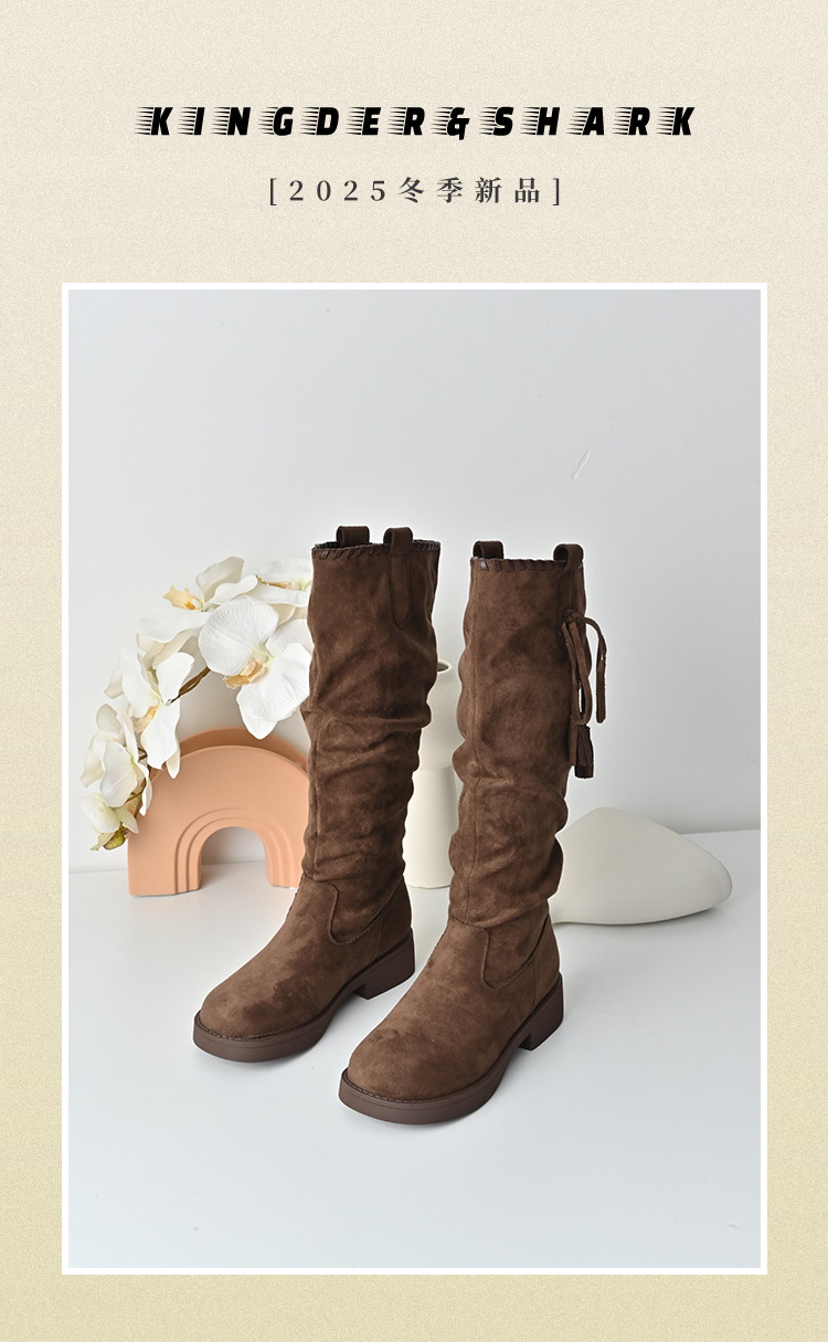 经典鲨2025年冬专柜新款百搭圆头平底套脚通勤单里长筒靴女KW96-558021