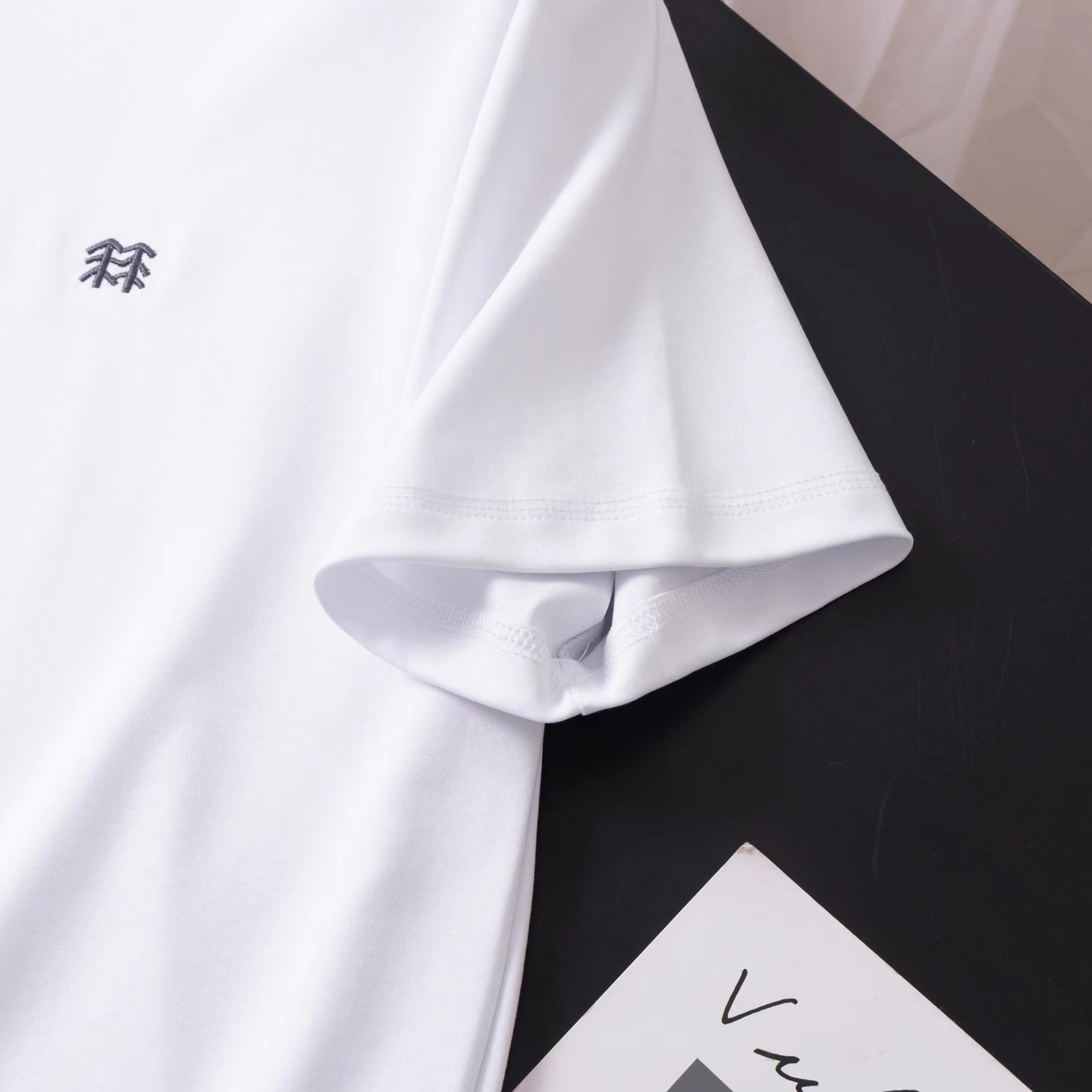 刺绣短袖T恤!面料:80支纱、95棉重磅面料,厚实挺括,亲肤透气,久穿不易变形起球。高支双面、不缩水变形。图案工艺:正面:刺绣工艺,针脚细密,质感gao级!工艺细节:布料扎实细腻、柔软贴身舒爽,加固双车线,不易变形;宽松落肩版型,修饰身形。背面:纯色无多余装饰,简约利落,适配多种穿搭场景