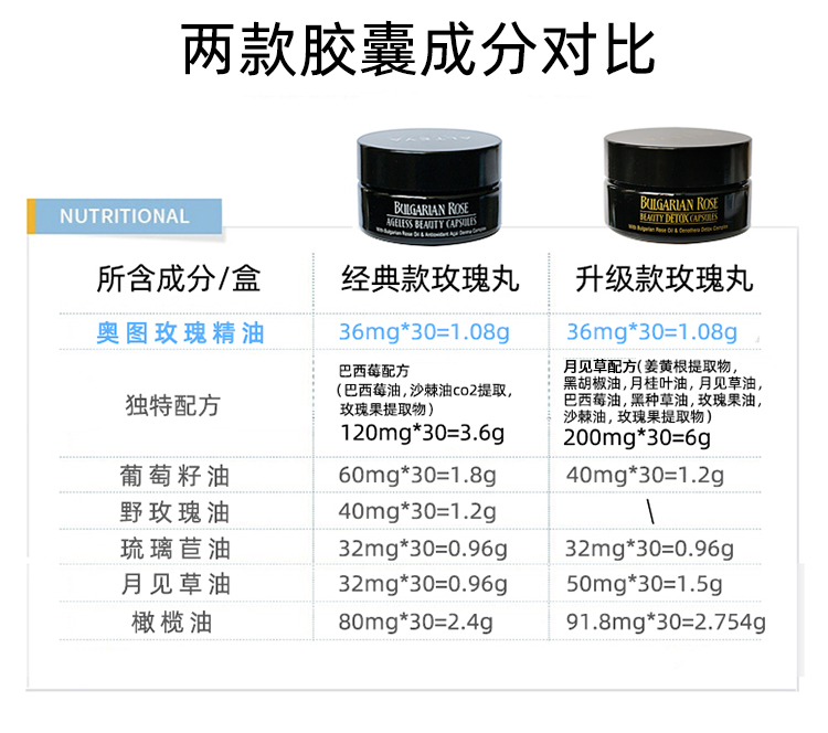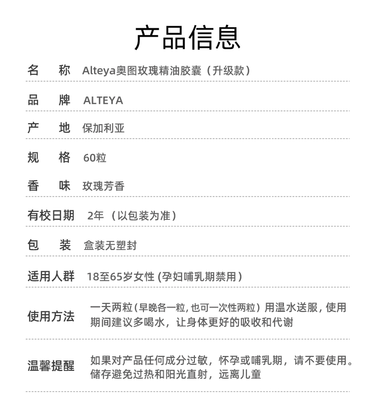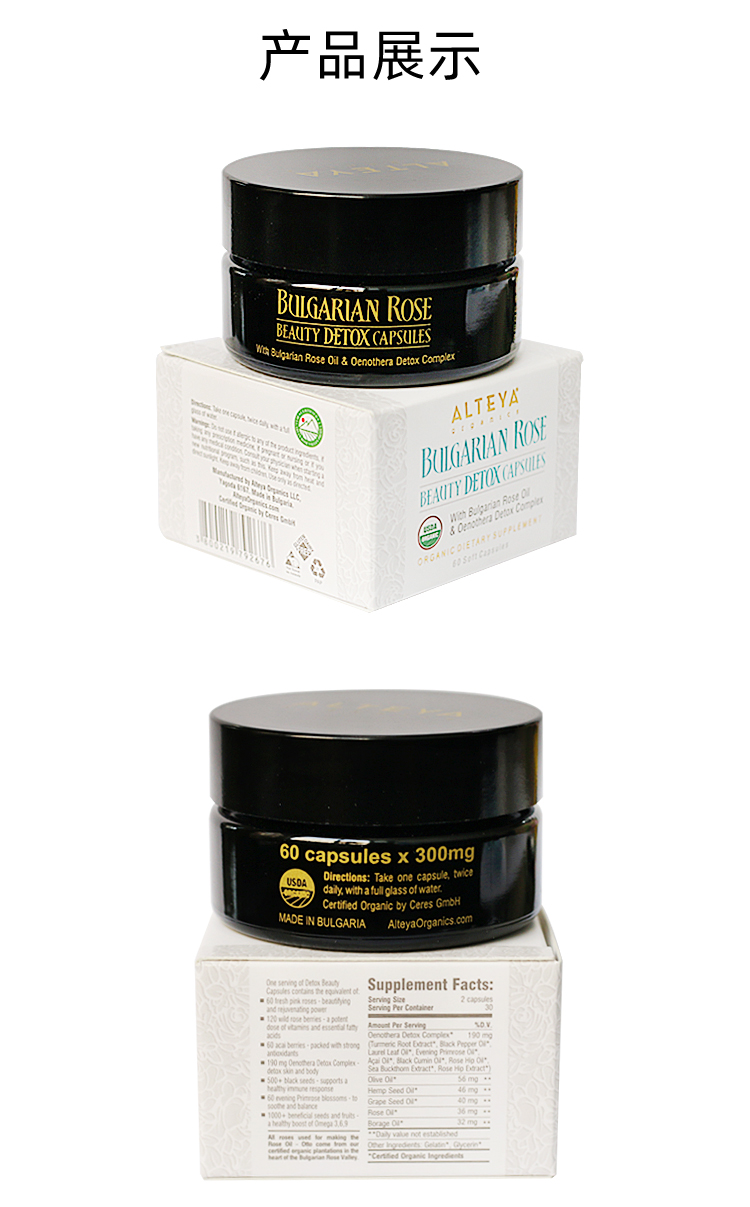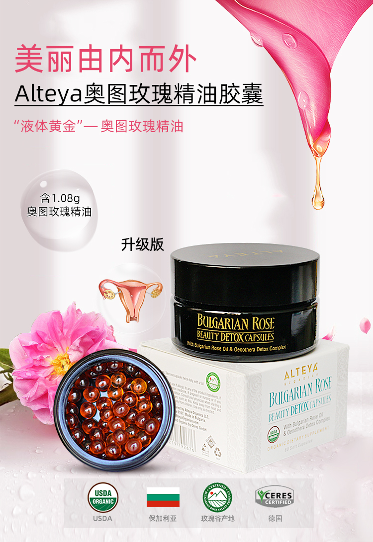Alteya爱蒂娅升级版玫瑰精油月见草胶囊60粒保加利亚原装进口USDA