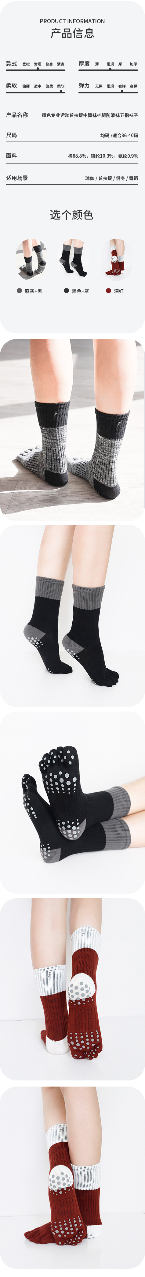 撞色中筒五指袜子瑜伽普拉提运动长袜子