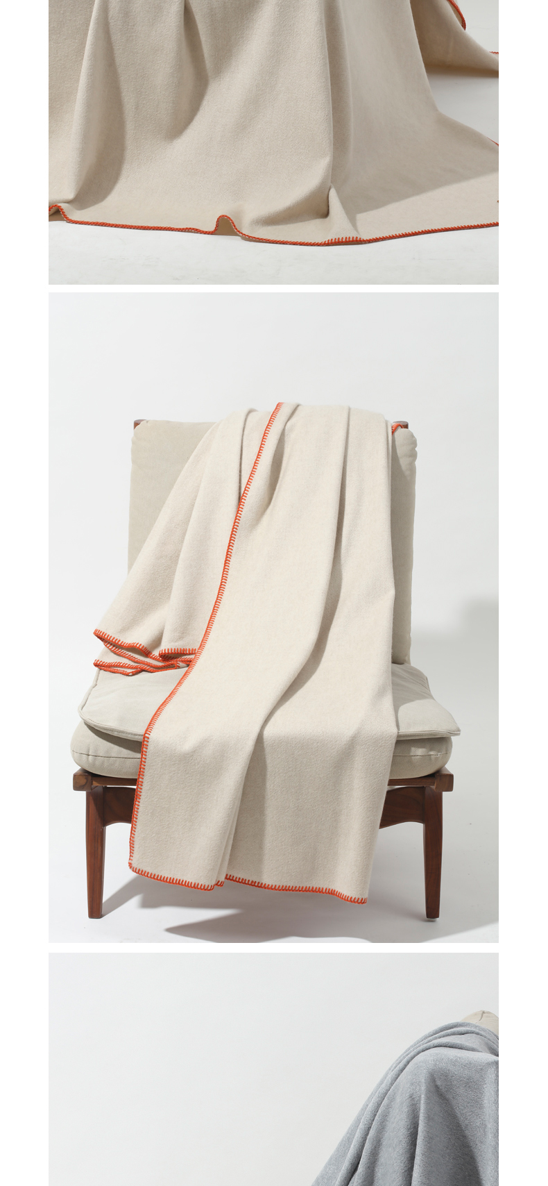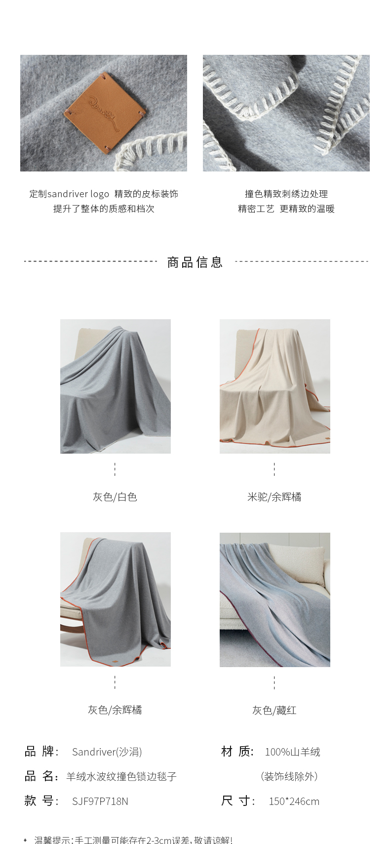 羊绒水波纹撞色锁边毯子SJF97P718N
