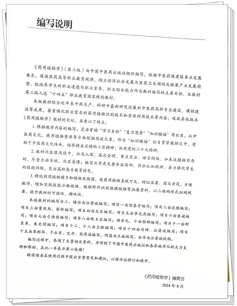 药用植物学(第三版)汪荣斌 主编 中国中医药出版社 全国中医药行业高等职业教育十四五高职规划教材