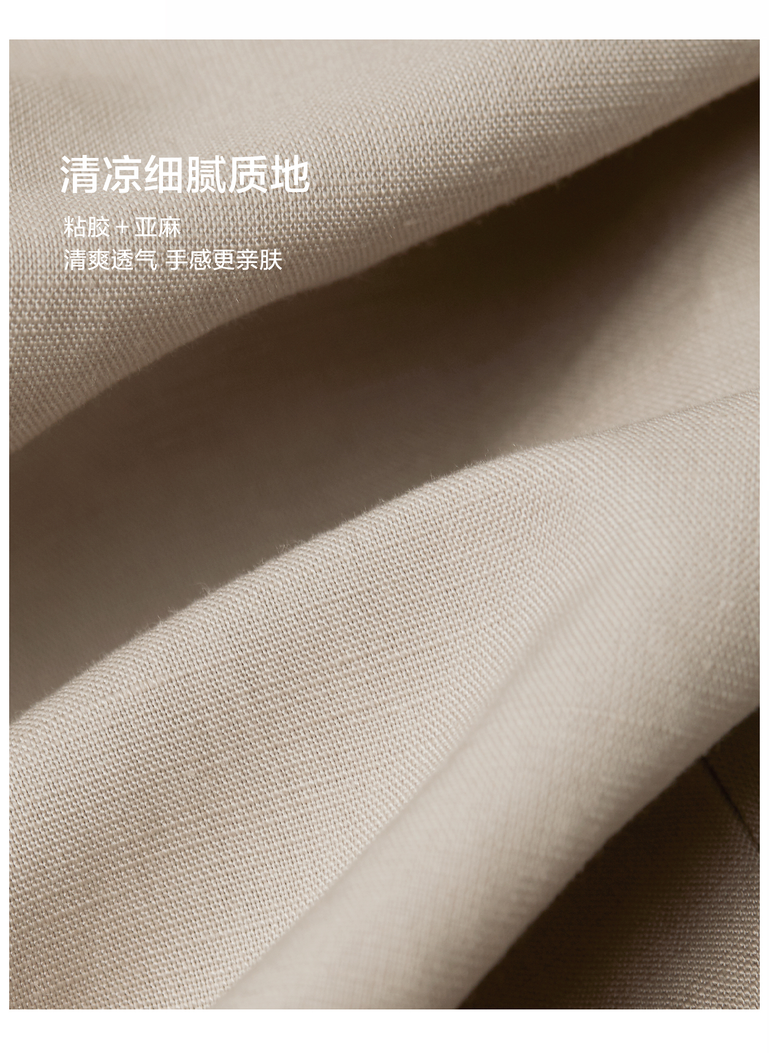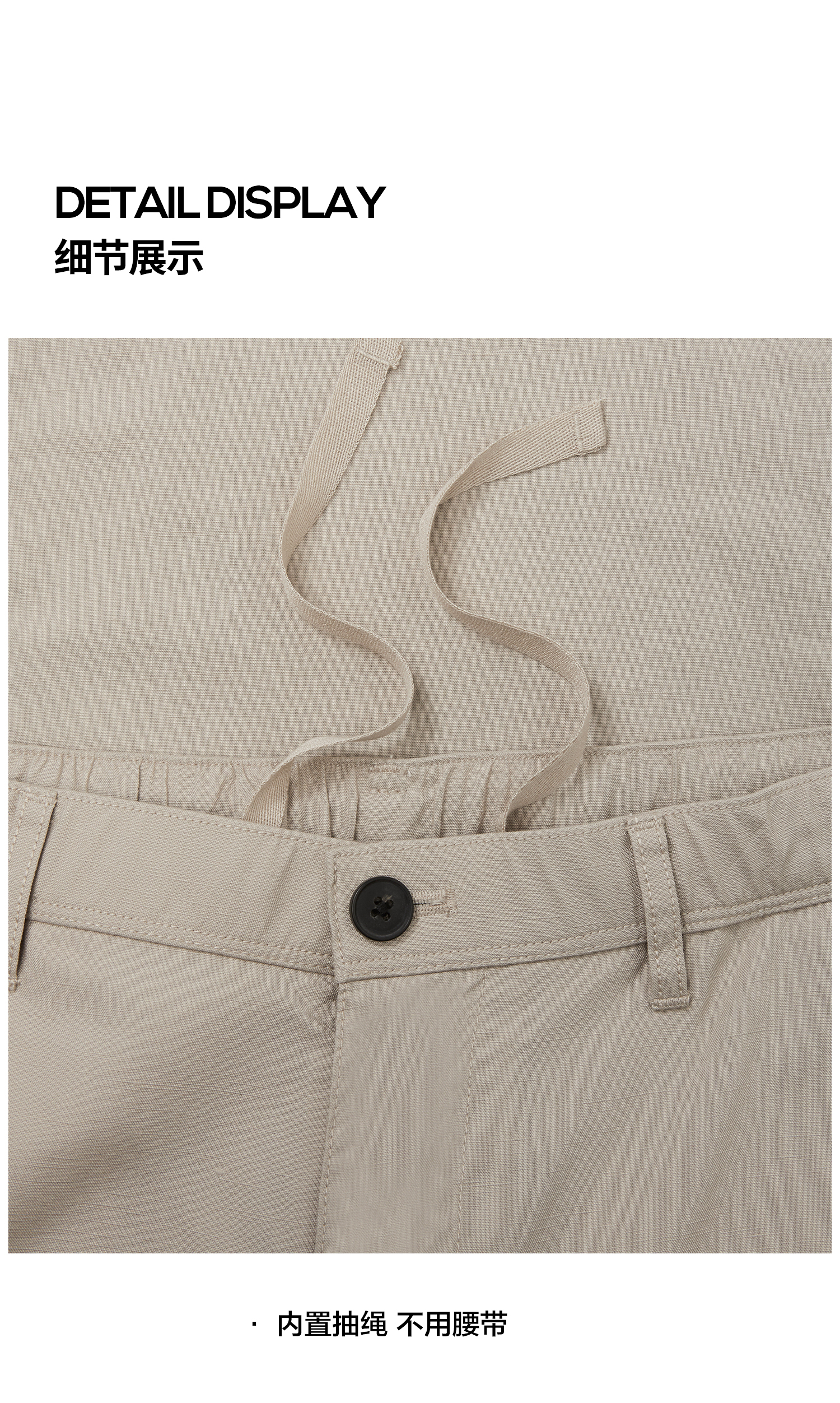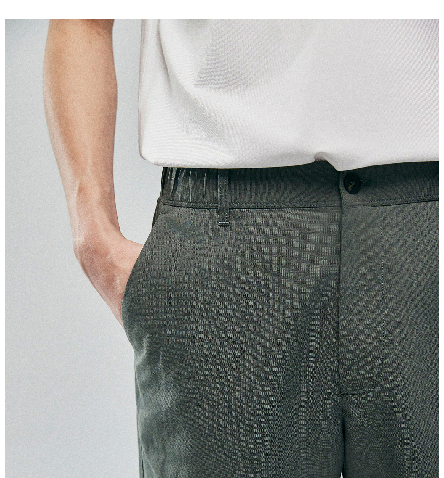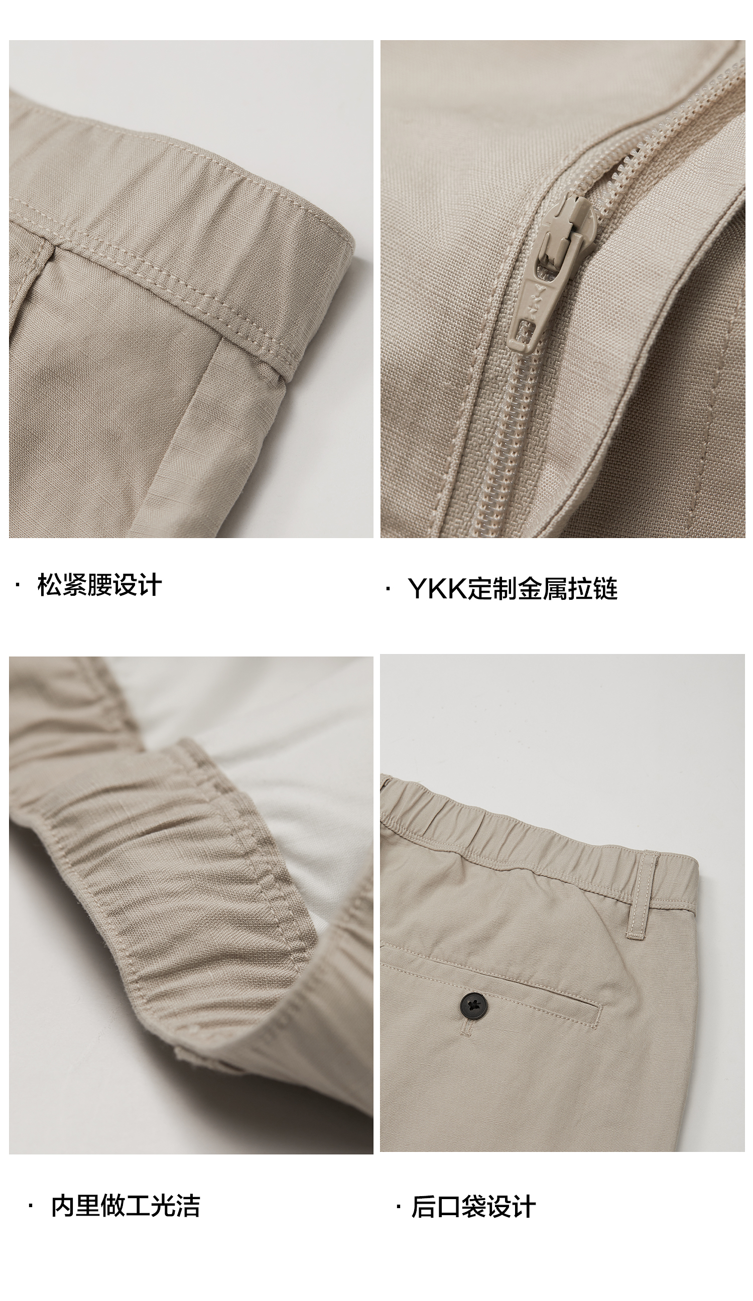 棉仓353818014-微宽松涤粘亚麻开口松紧腰休闲裤