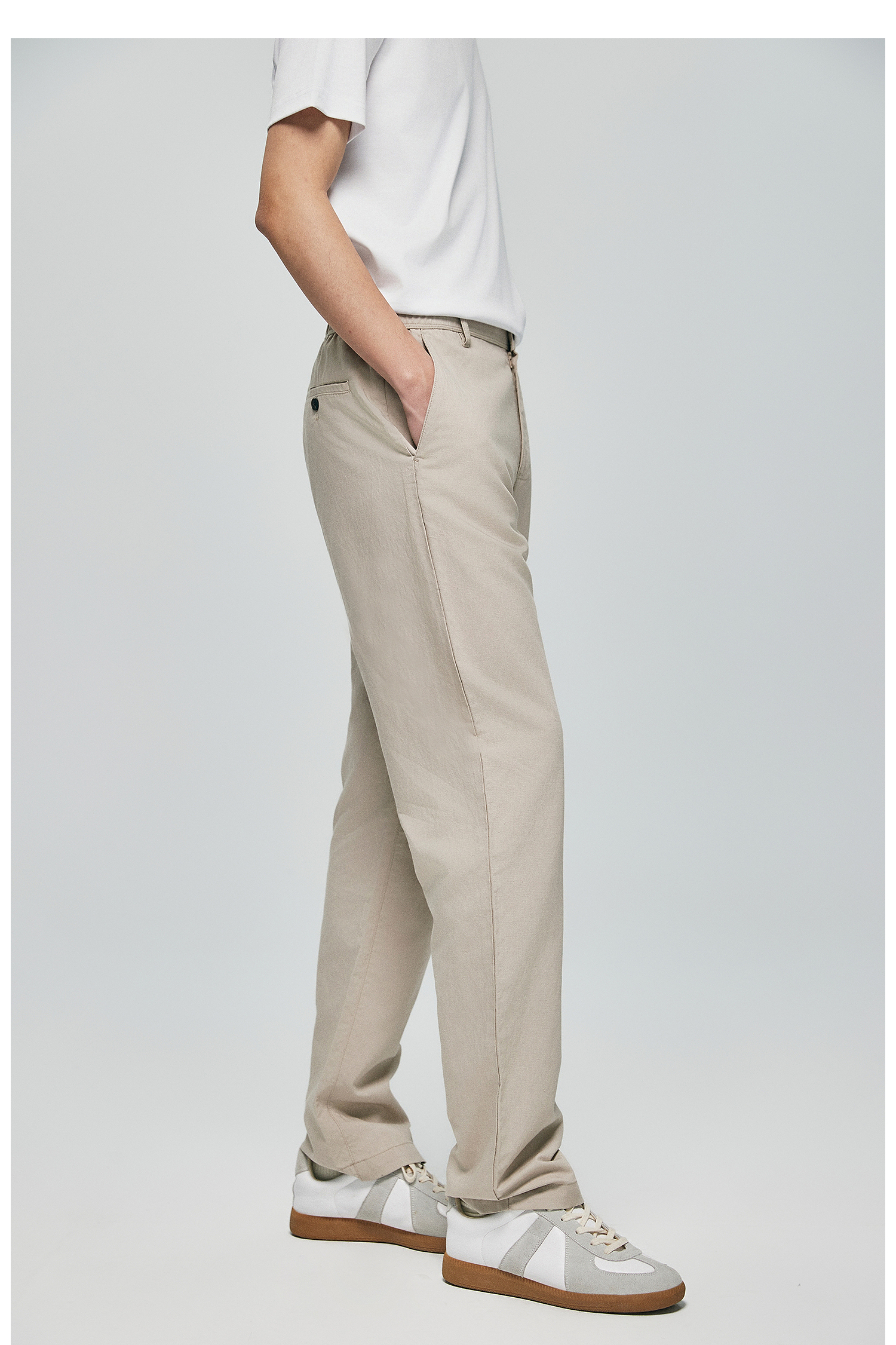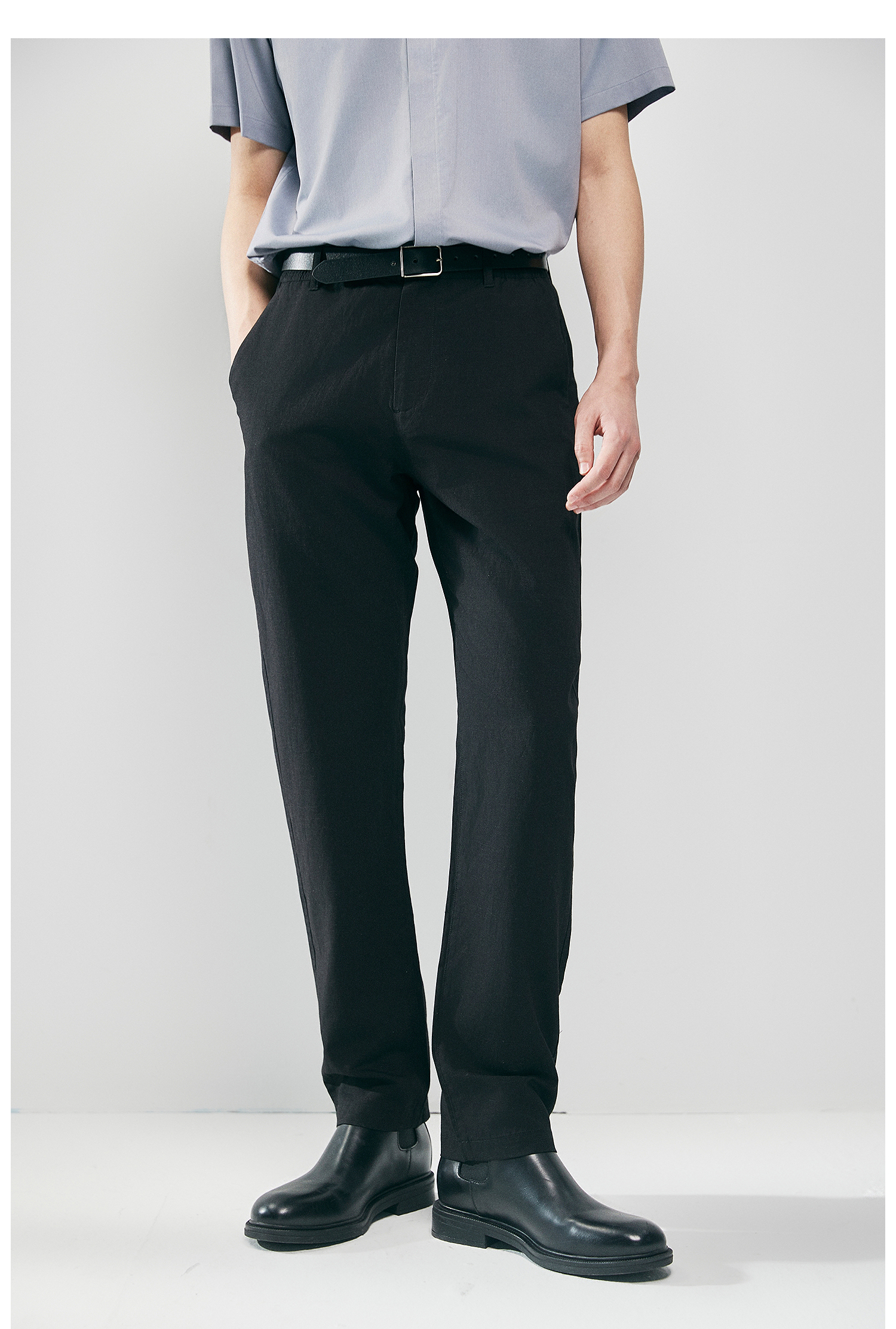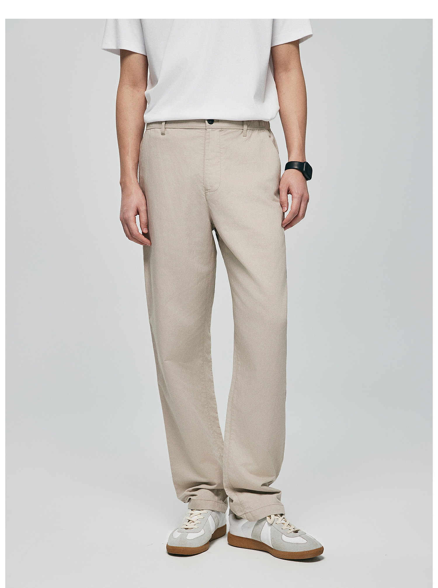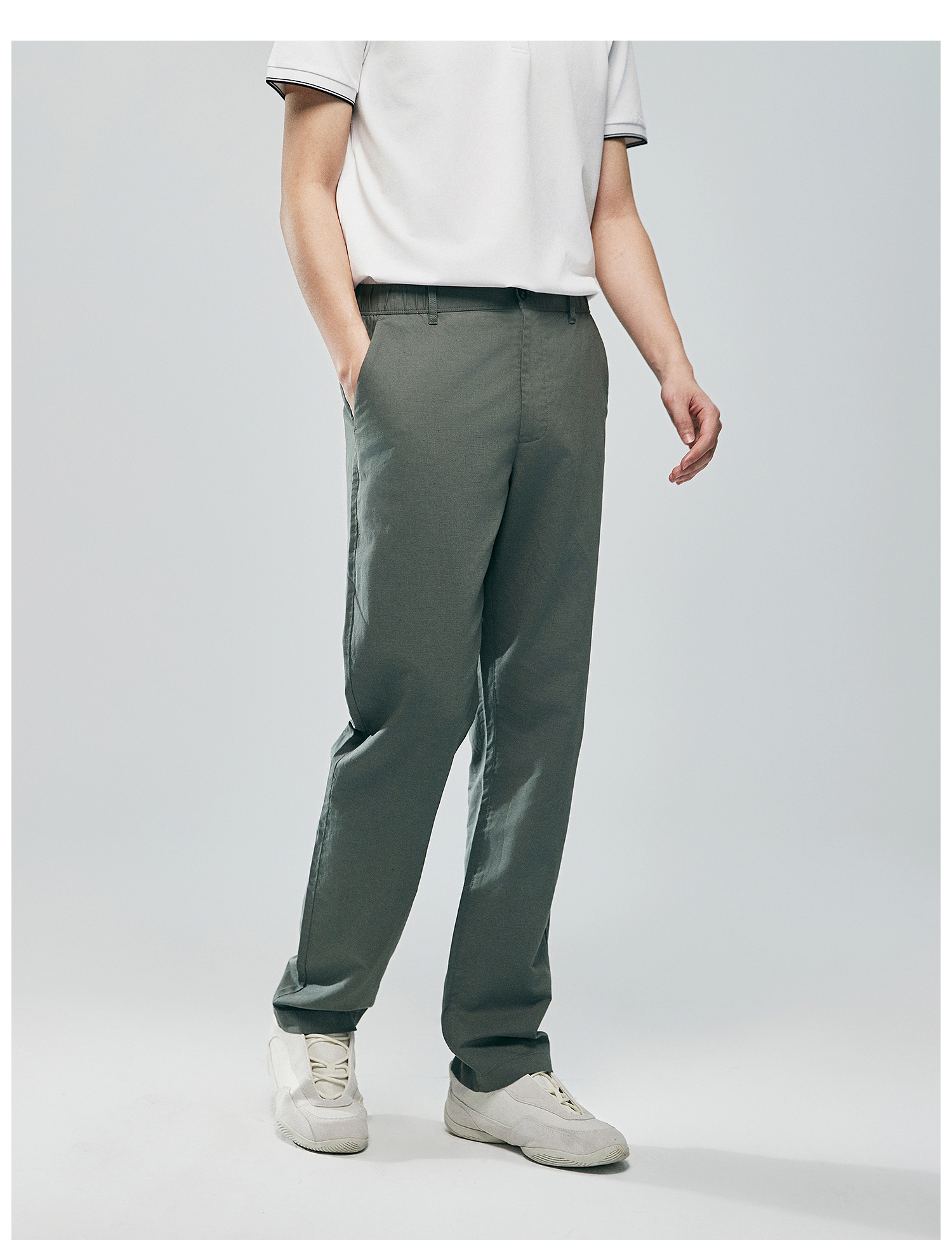 棉仓353818014-微宽松涤粘亚麻开口松紧腰休闲裤