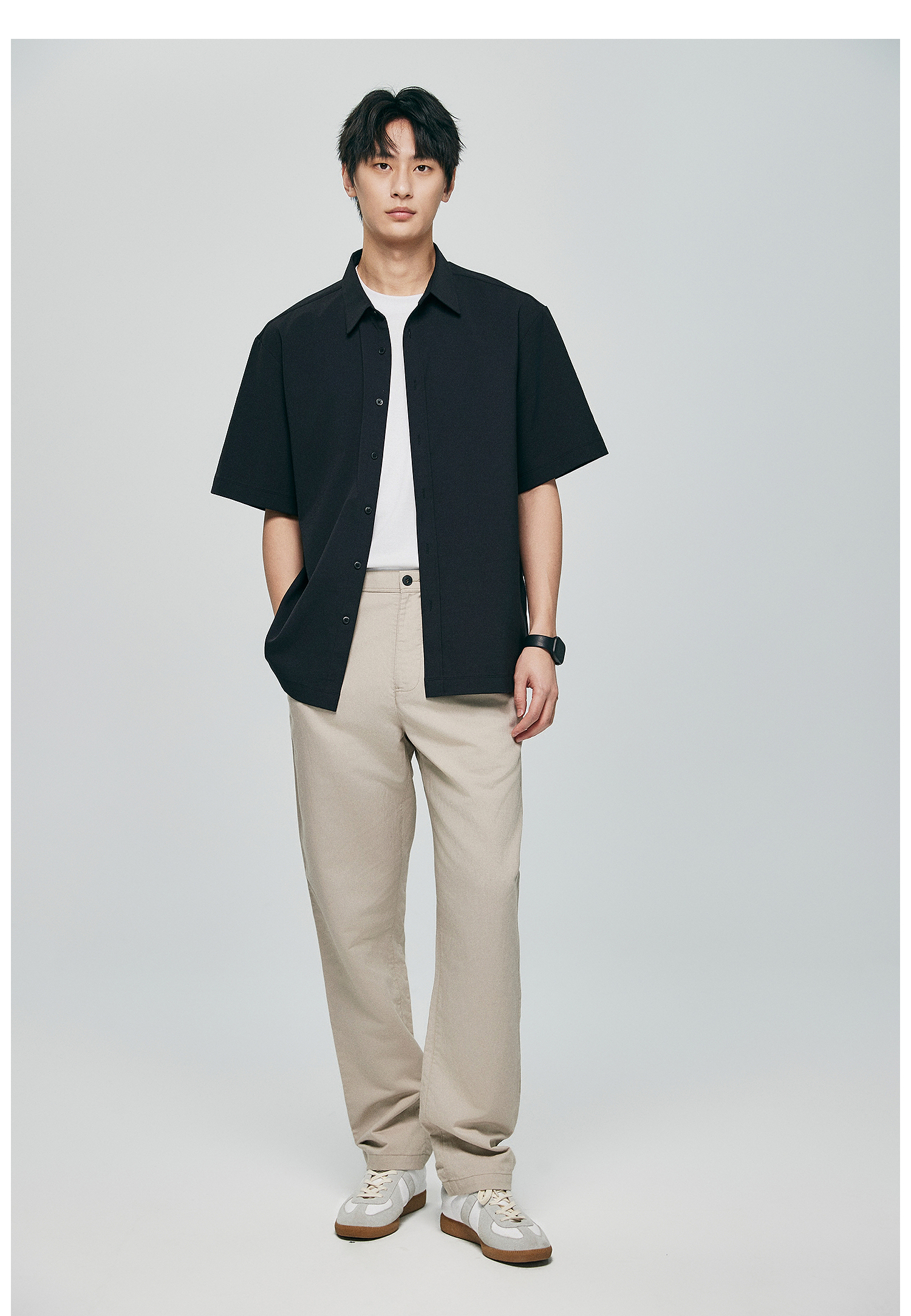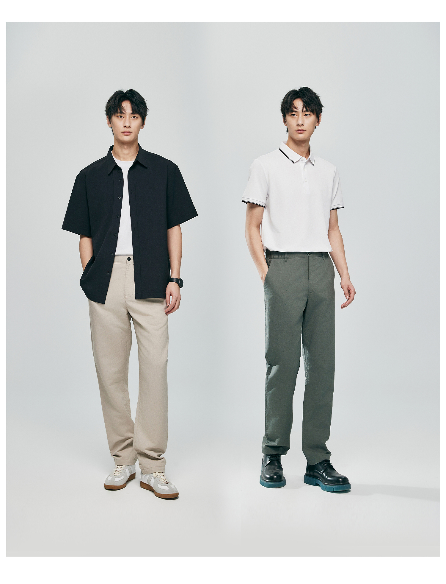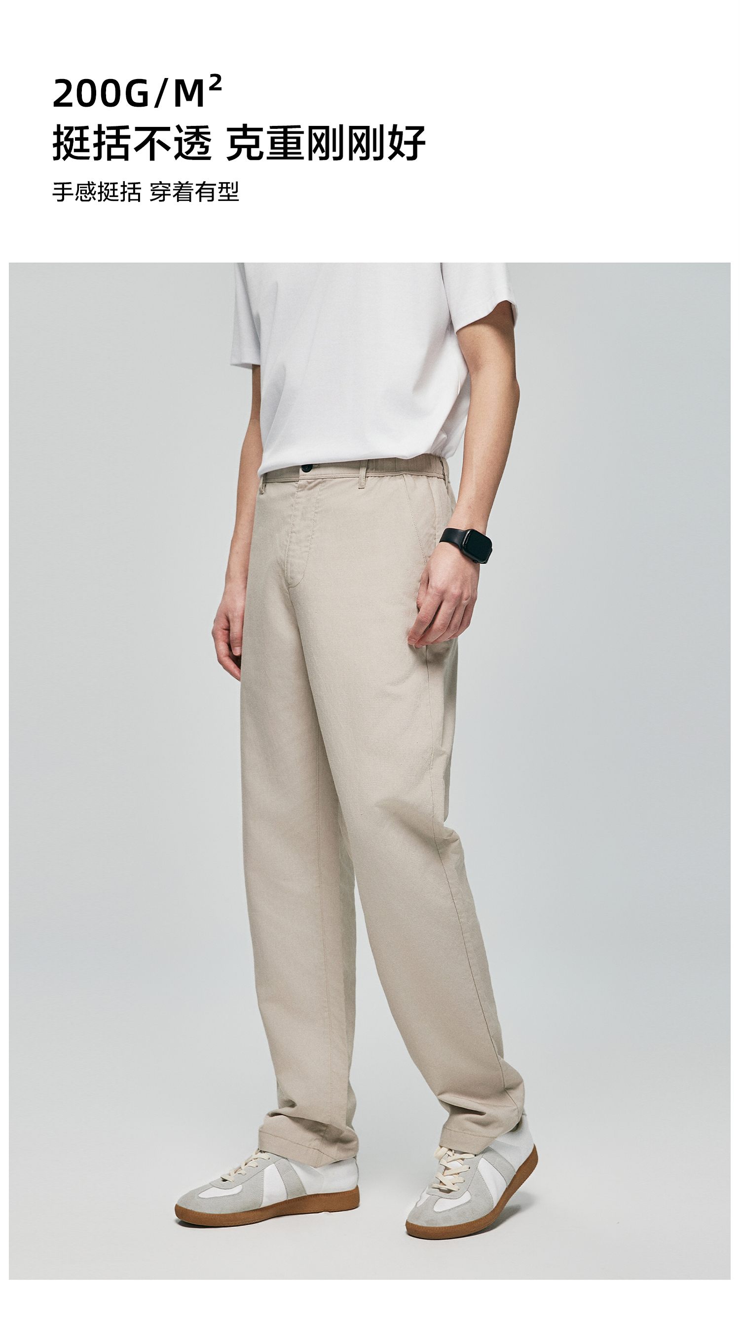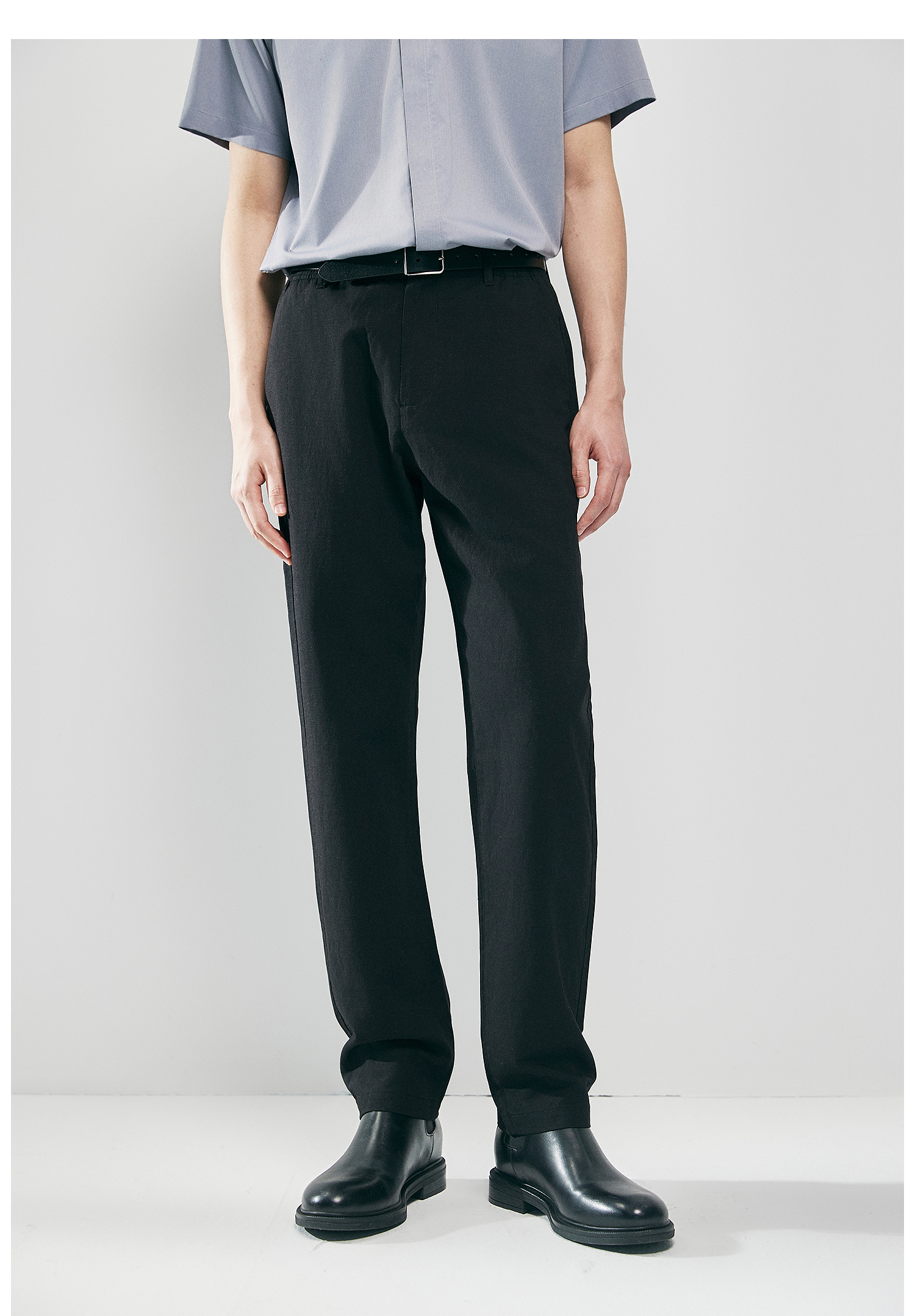 棉仓353818014-微宽松涤粘亚麻开口松紧腰休闲裤