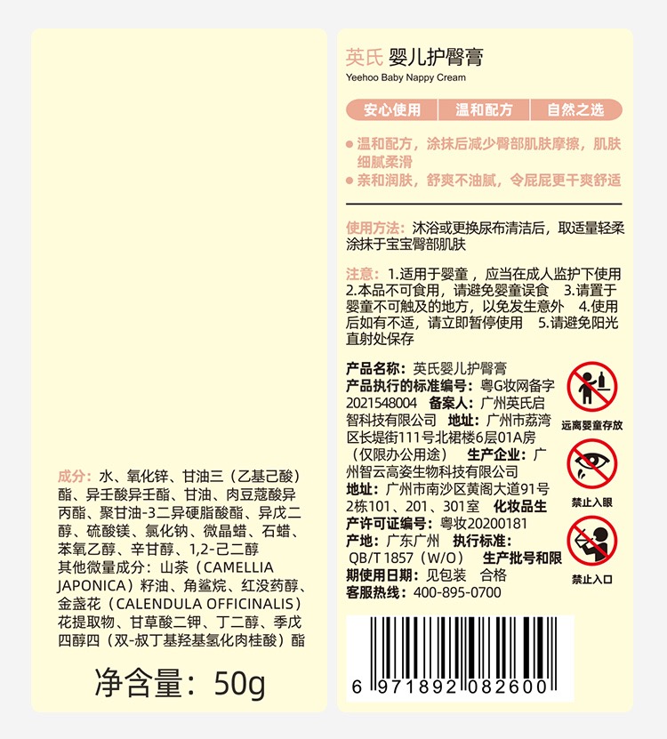【春上新】8楼英氏YeeHoO 英氏护臀膏婴儿红屁股金盏花PP霜新生儿童宝宝专用屁屁霜护肤软膏