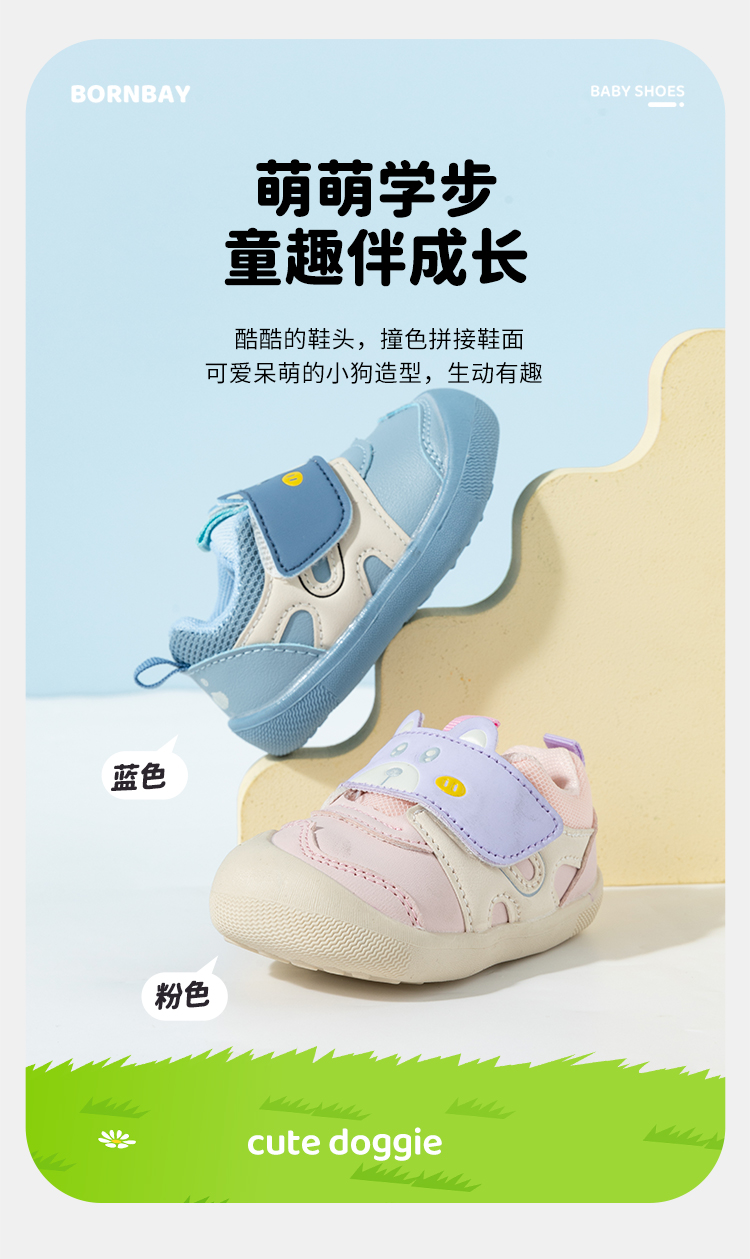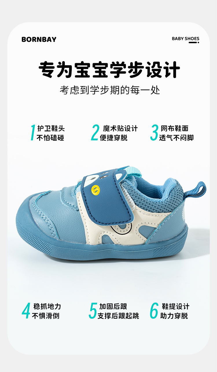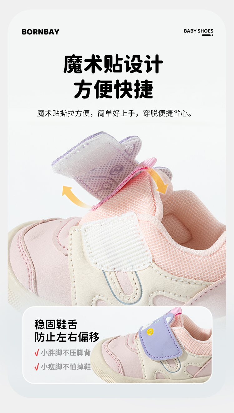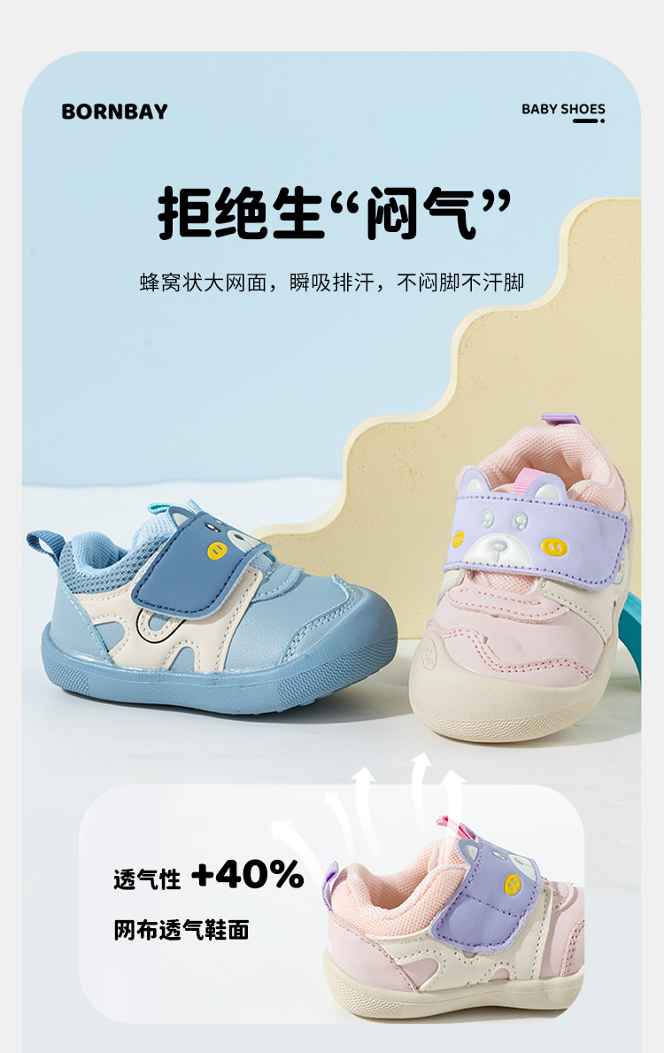 贝贝怡春季新款男女宝宝学步鞋婴幼儿童稳步鞋软底舒适包头鞋萌娃防踢鞋ZB1EX024