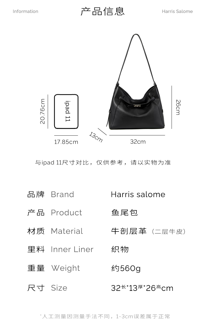 【大容量百搭】HARRIS SALOME 松弛感牛皮鱼尾包 0106