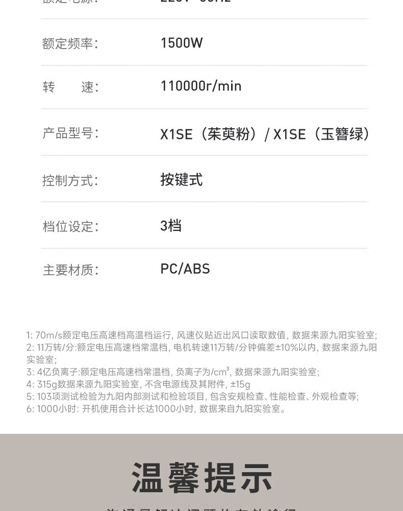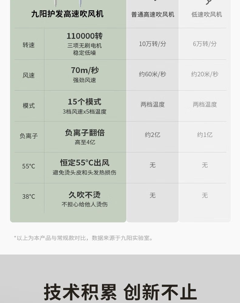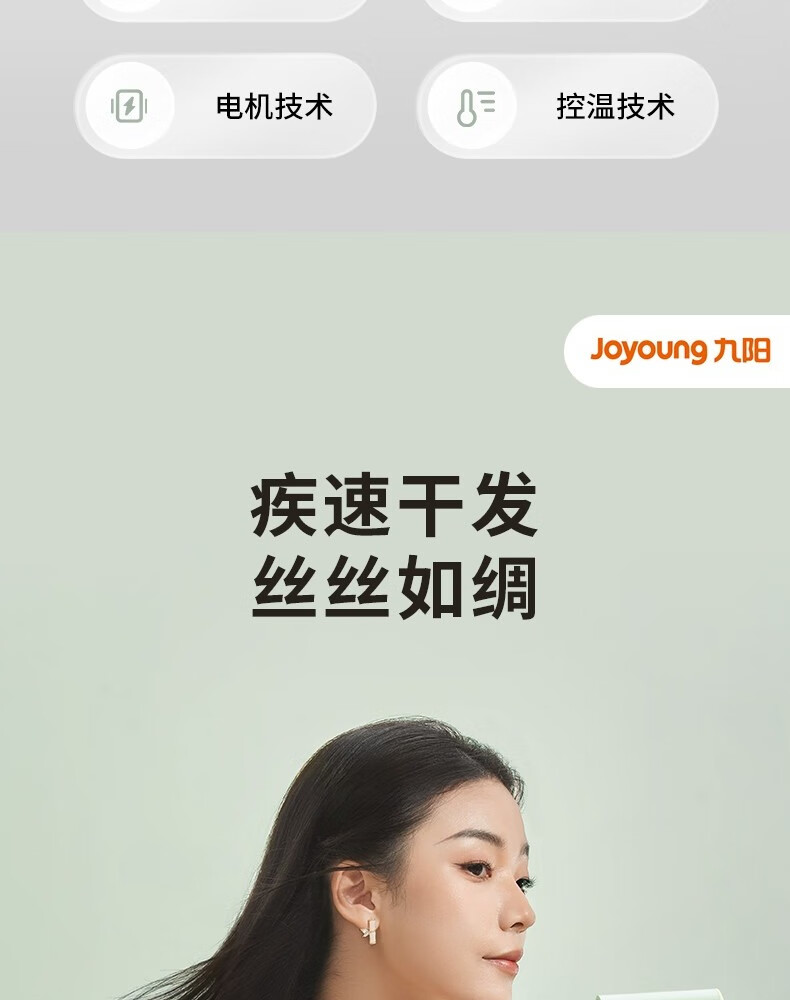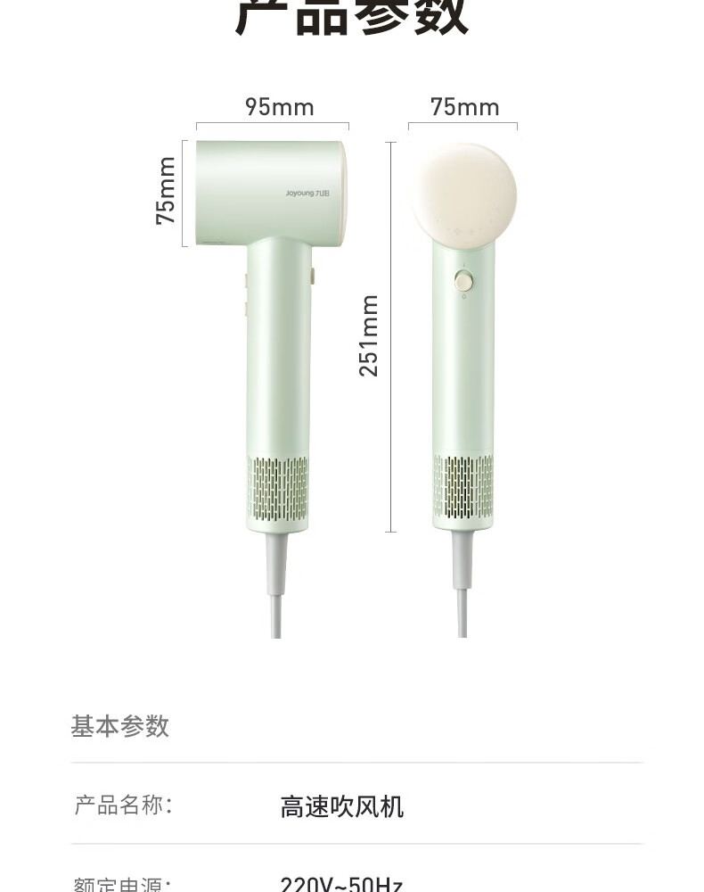 九阳高速吹风机家用超大风力负离子护发速干低噪大功率电吹风机筒
