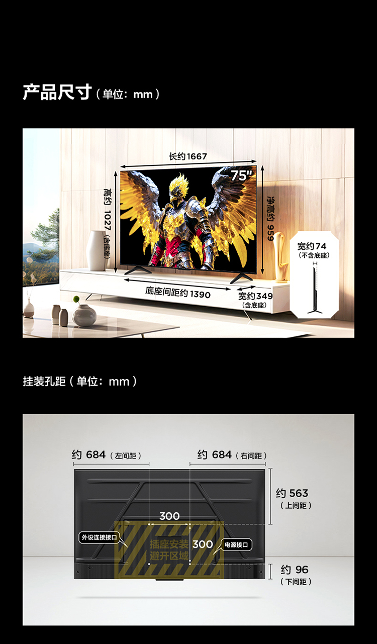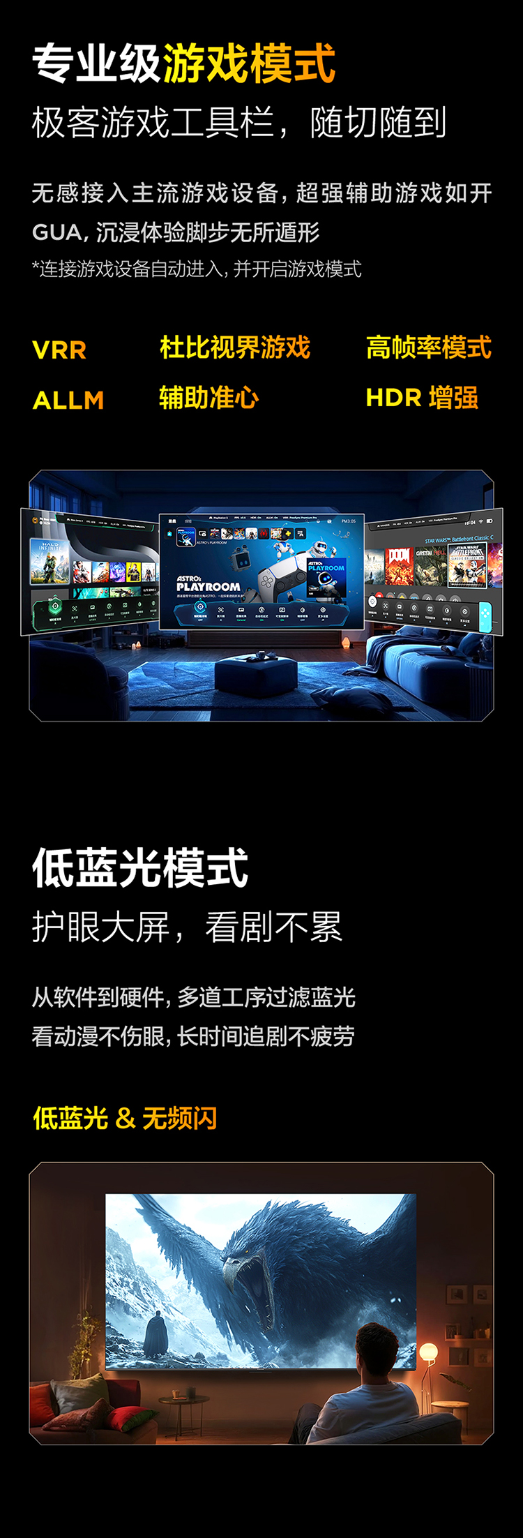 FFALCON雷鸟 鹏7 25款 75英寸 游戏电视 4K超高清 4+64GB 电视机75S385C Pro-J