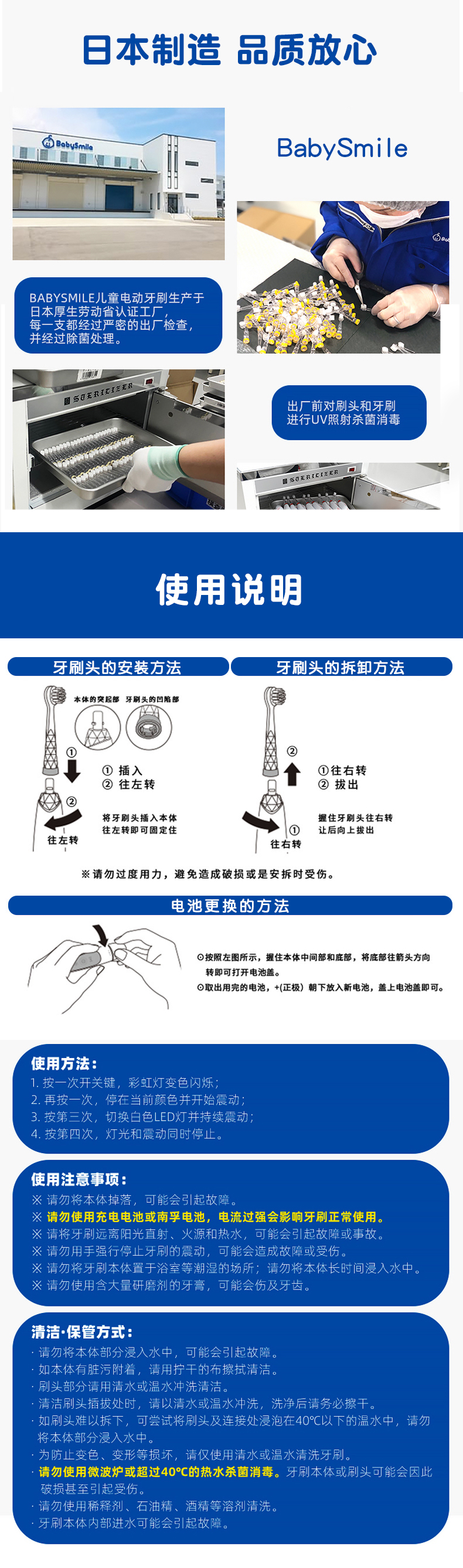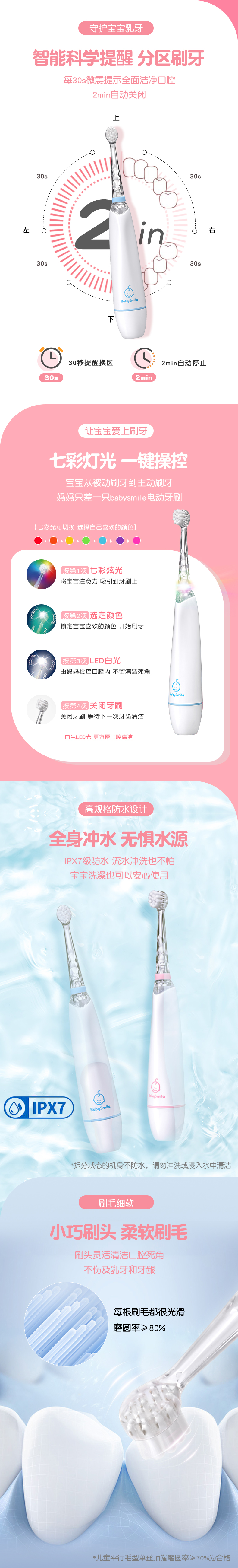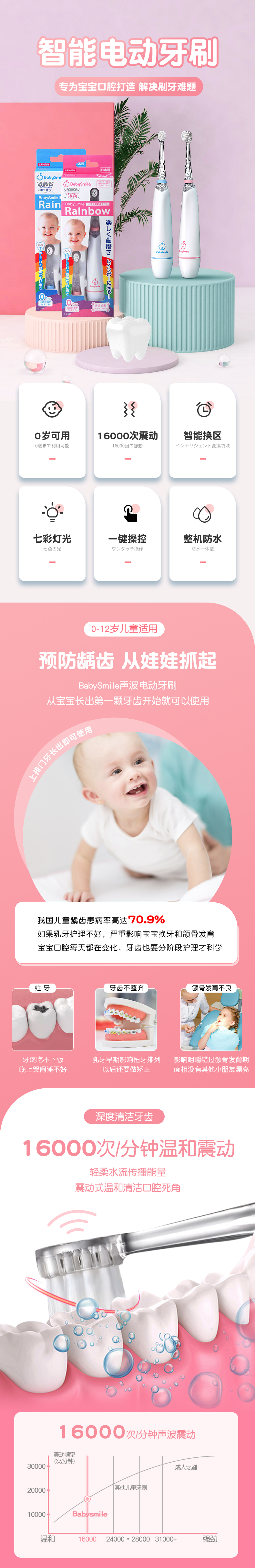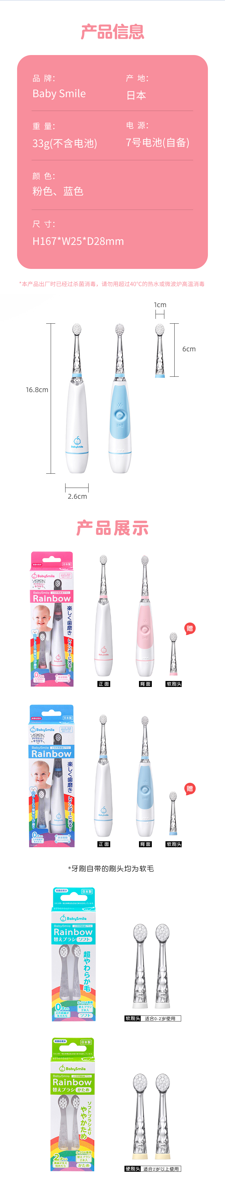 日本babysmile儿童电动牙刷2岁宝宝婴儿自动牙刷替换刷头3岁小孩