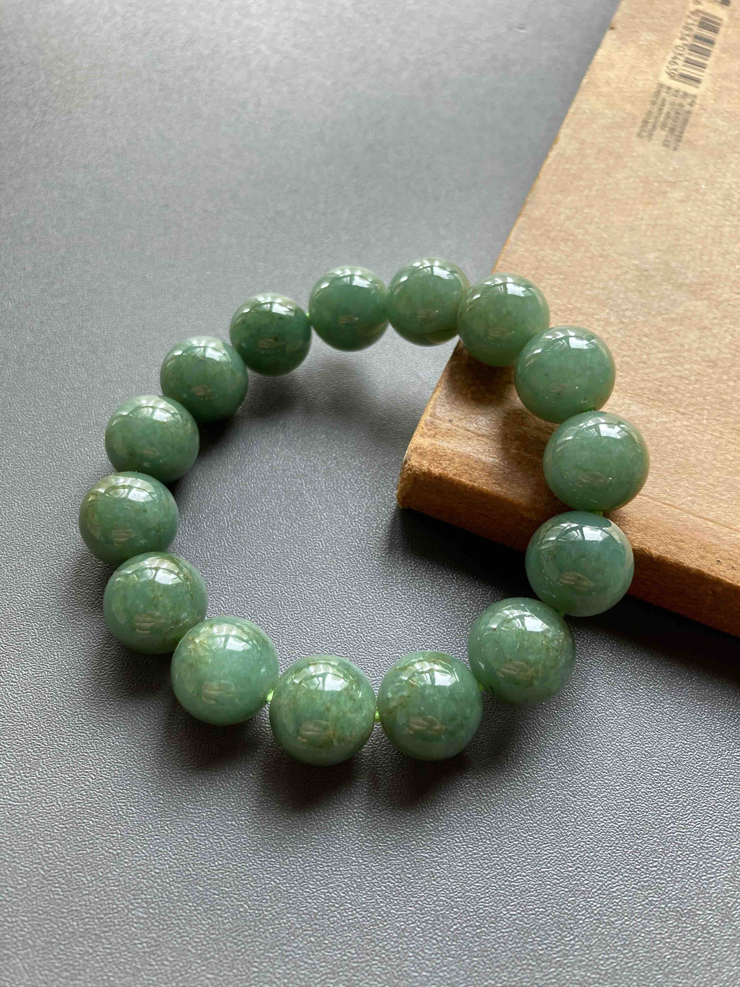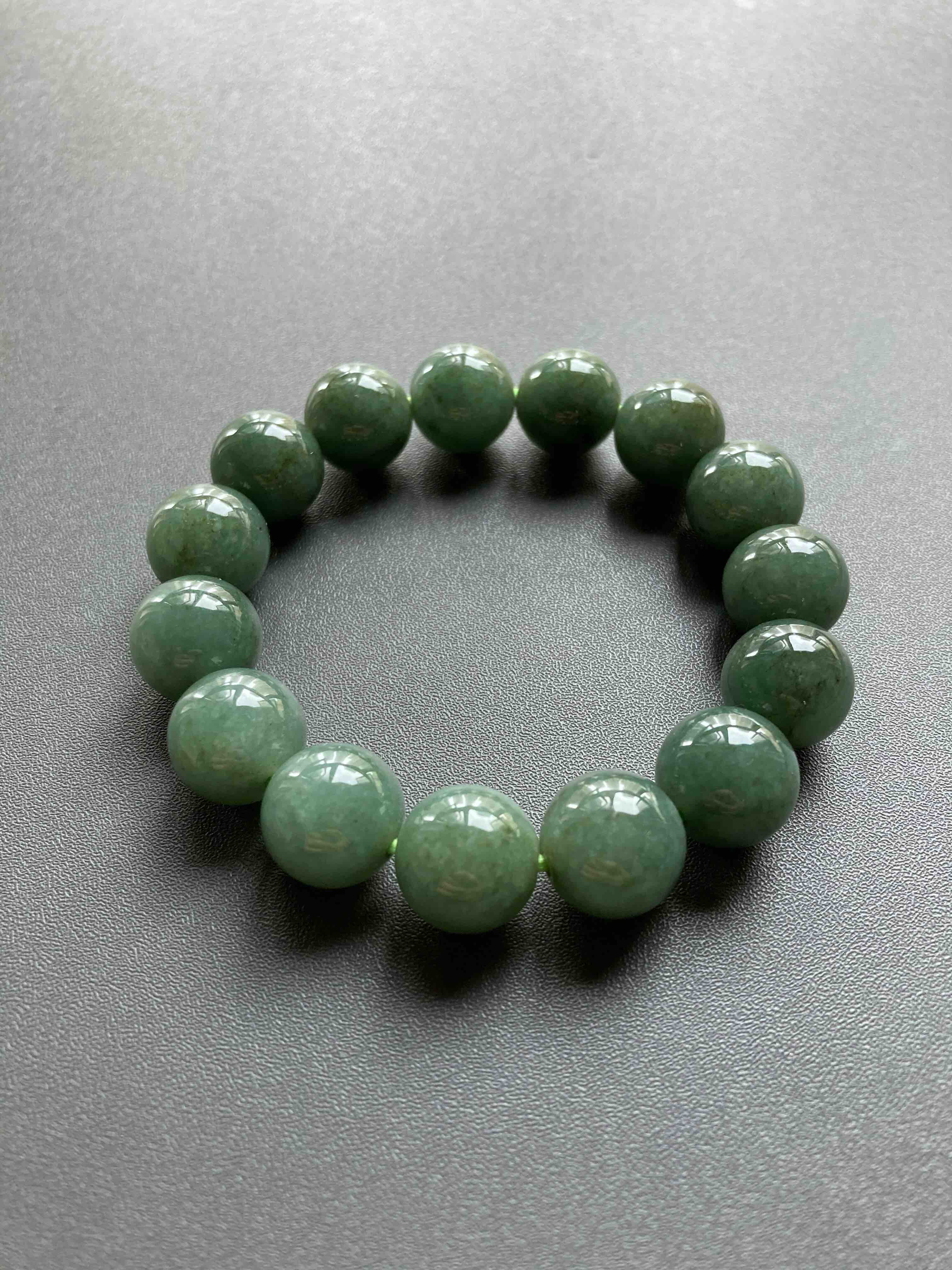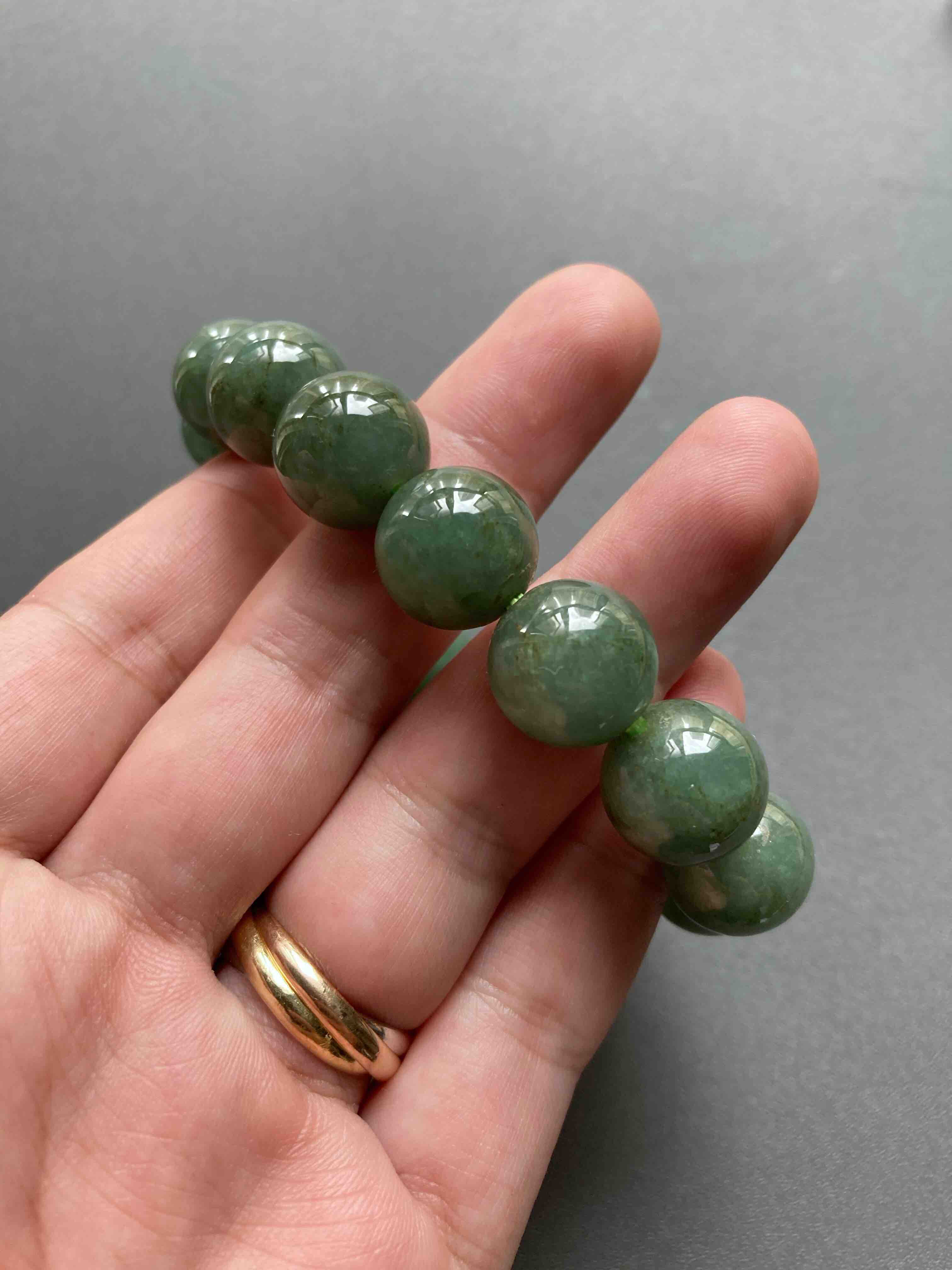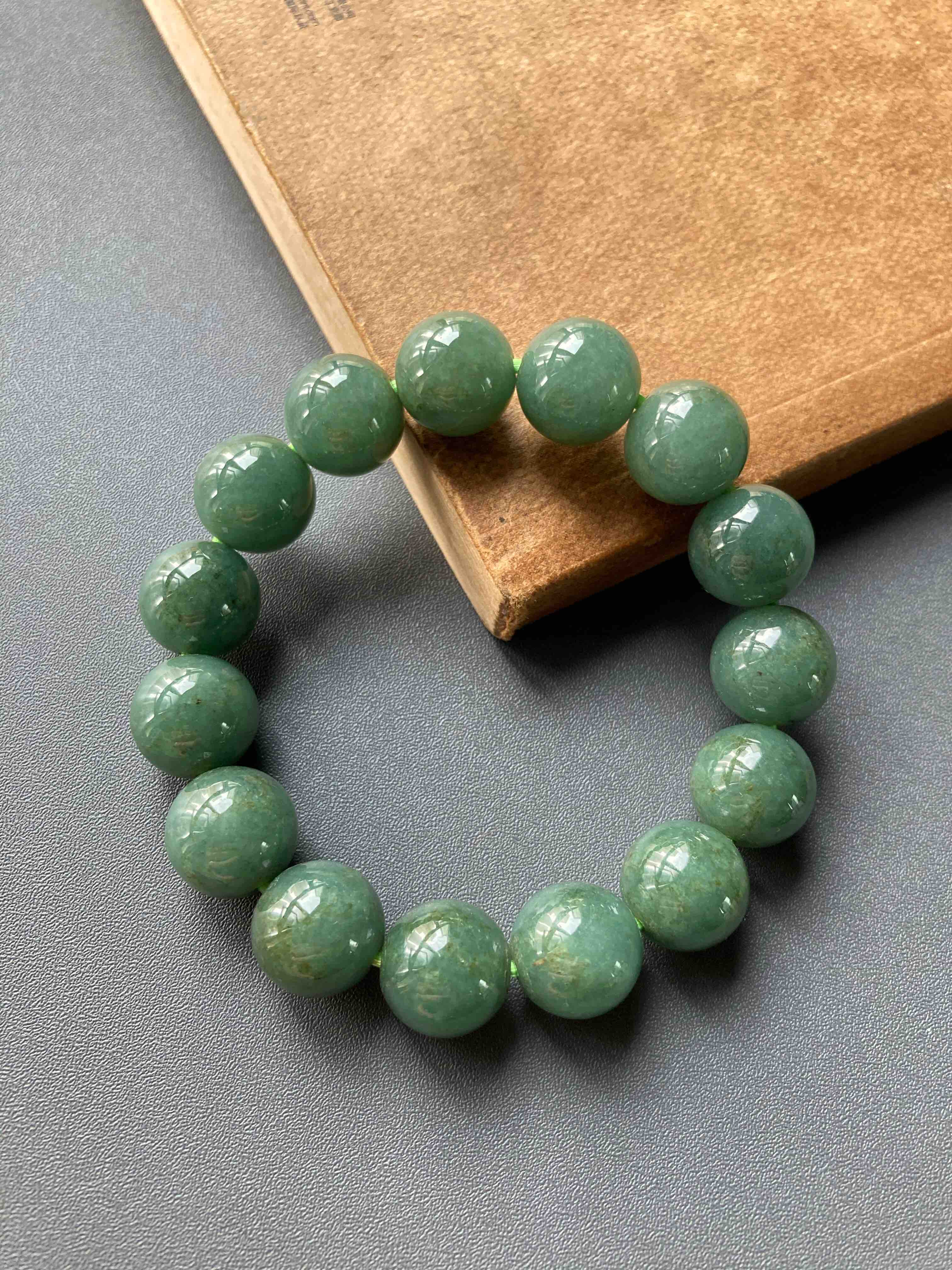 糯种墨绿翡翠大珠串手串,这样的大珠串才给力,14mm珠子大小,糯种墨绿色,珠子大,上手贵气,翡翠料做大珠子不容易,遇到了千万别错过,便宜又好,收了就对了