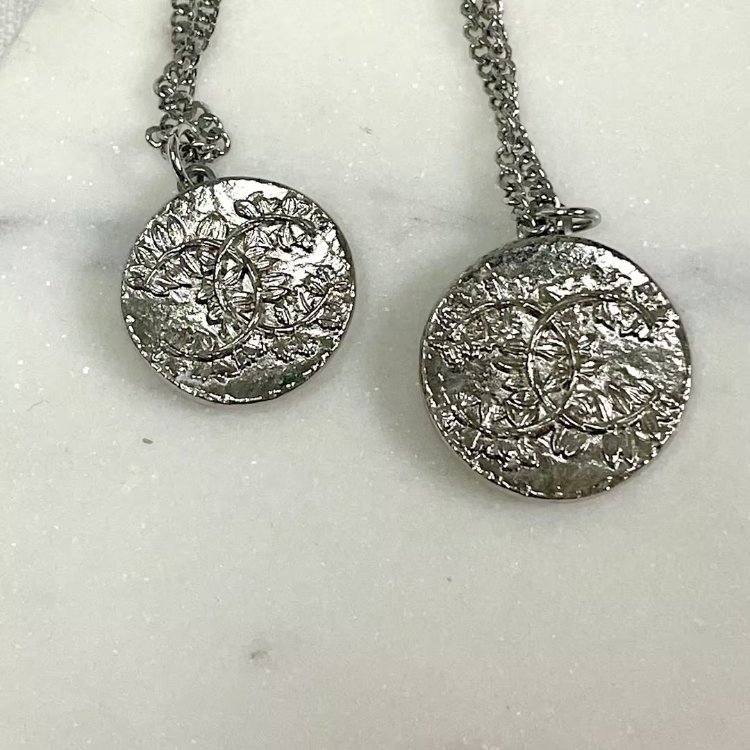 北京仓|Gigi Paris-叶片 双C Logo-银色大号 Vintage纽扣 项链[法国设计师]