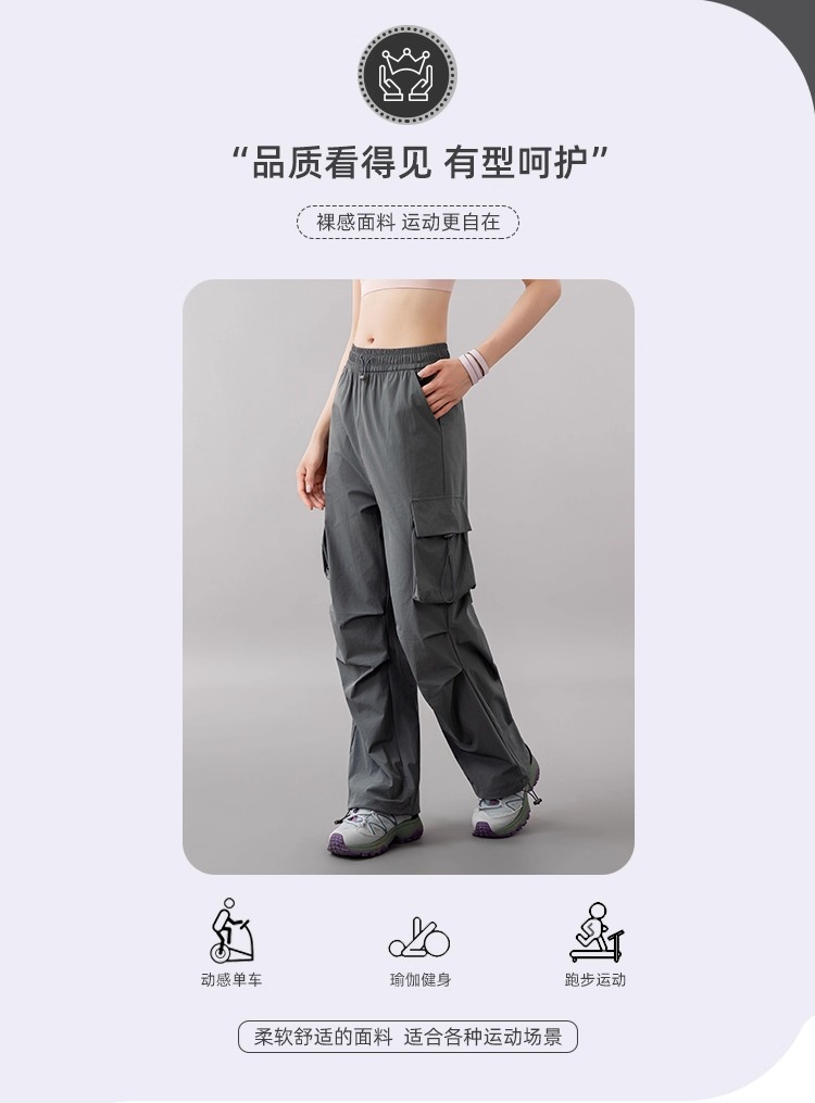 跃牌【美西西系列】美式工装裤2025夏季新款高腰显瘦阔腿休闲登山速干薄款健身长裤女CK-9938