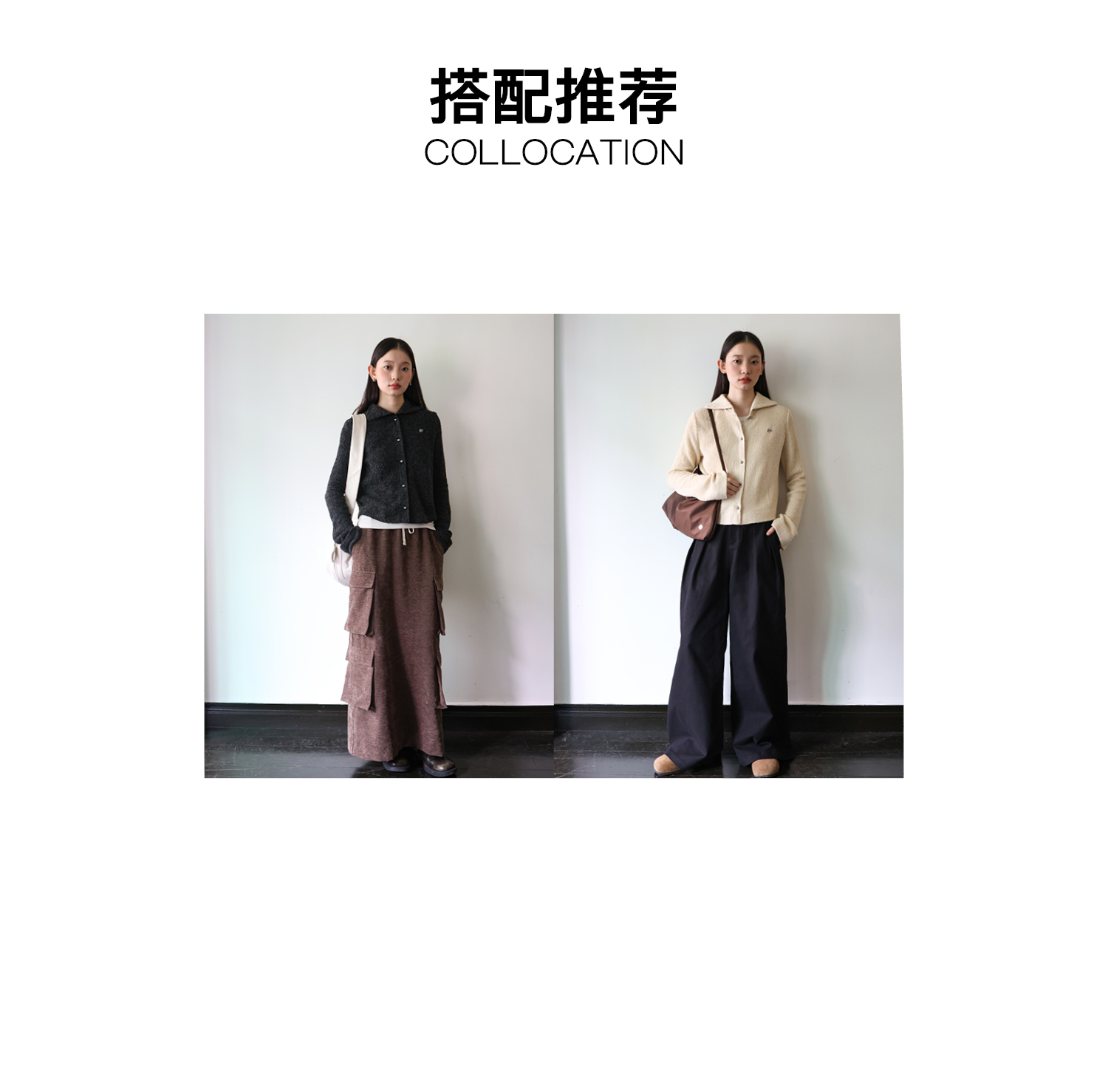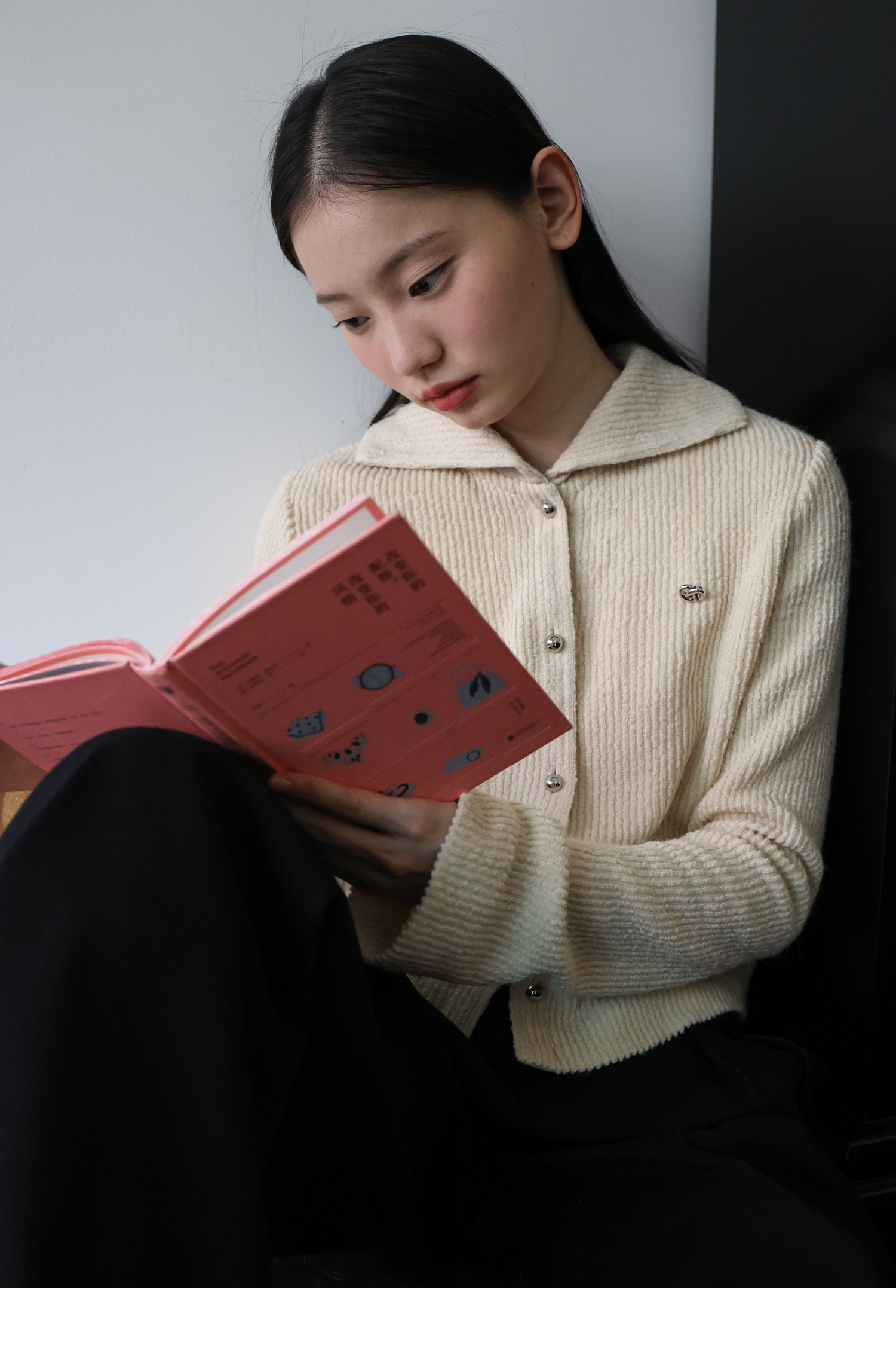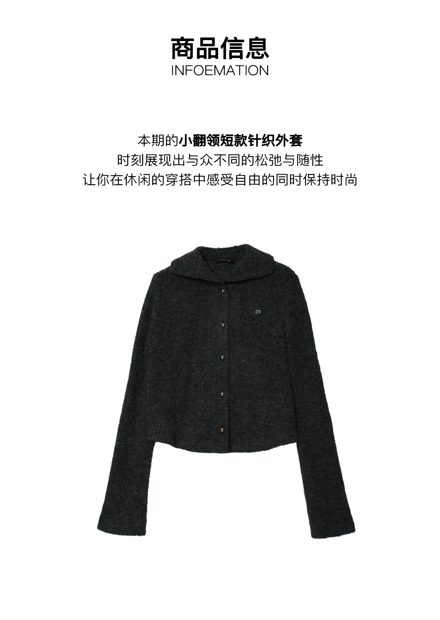 【反季清仓不退不换】精致碱水结肌理感坑条翻领针织短款小香开衫