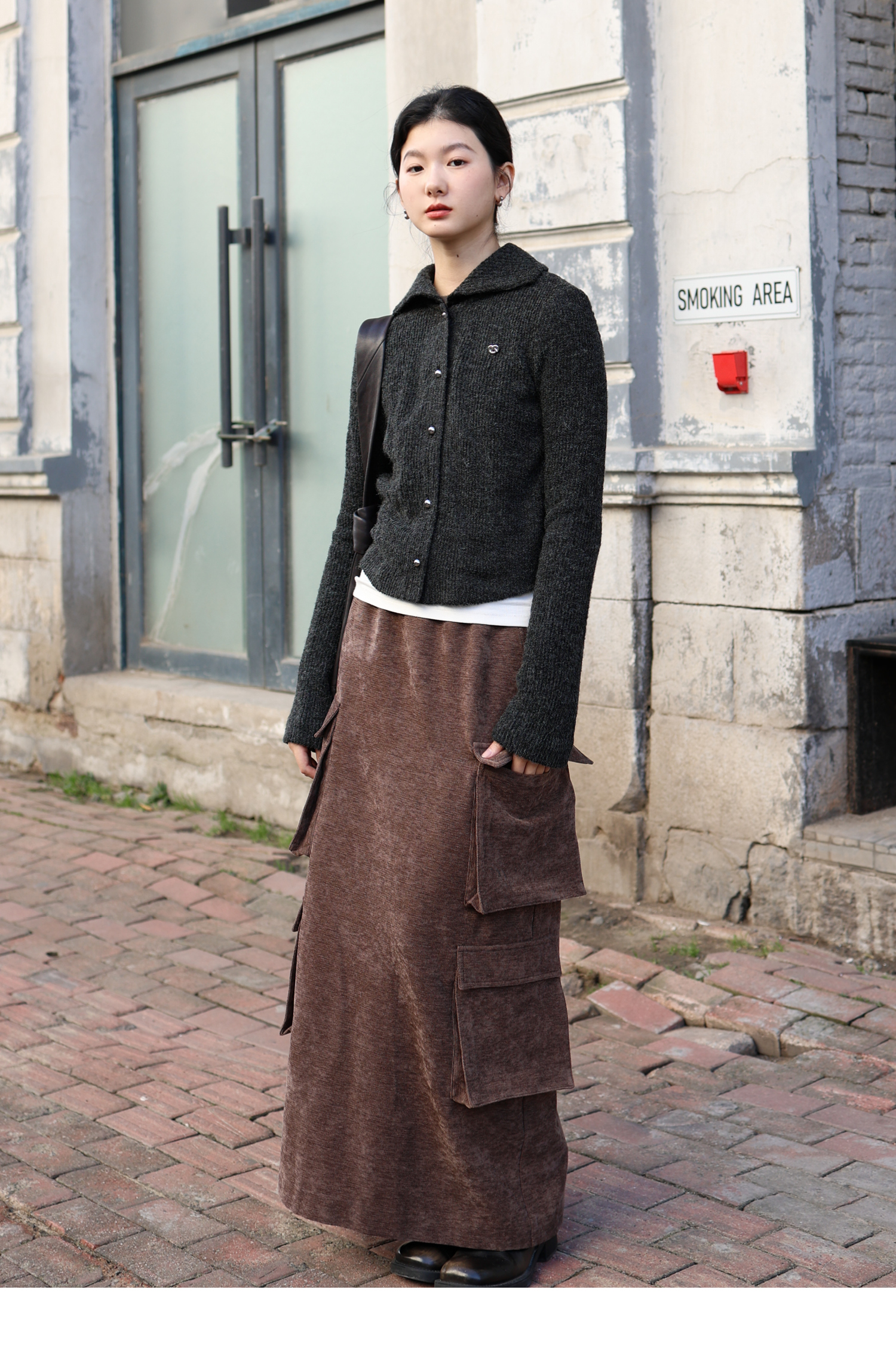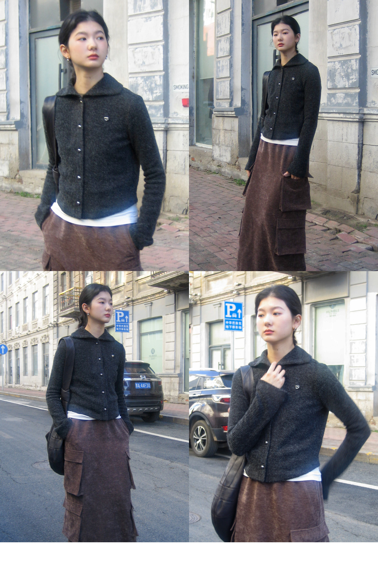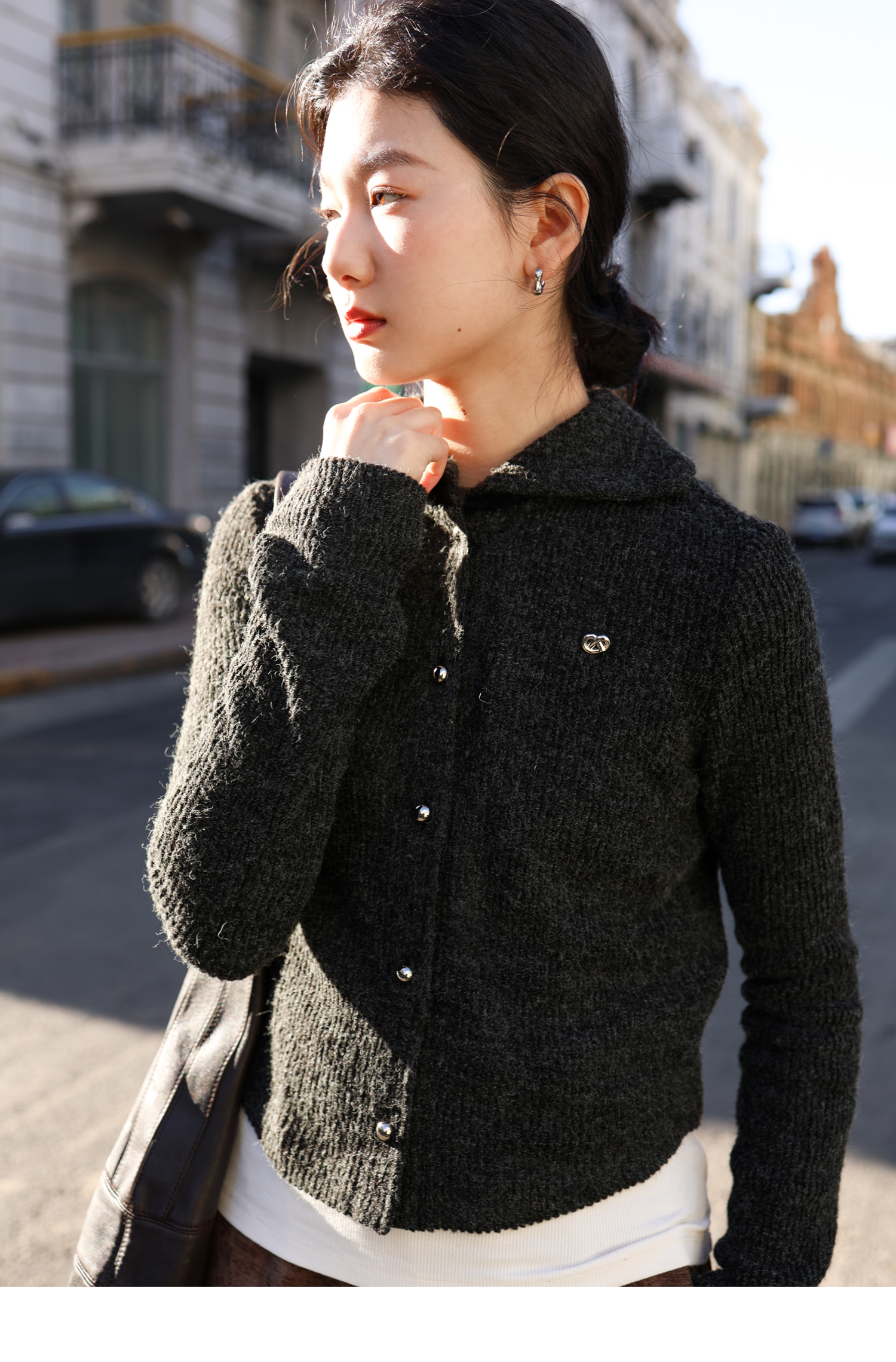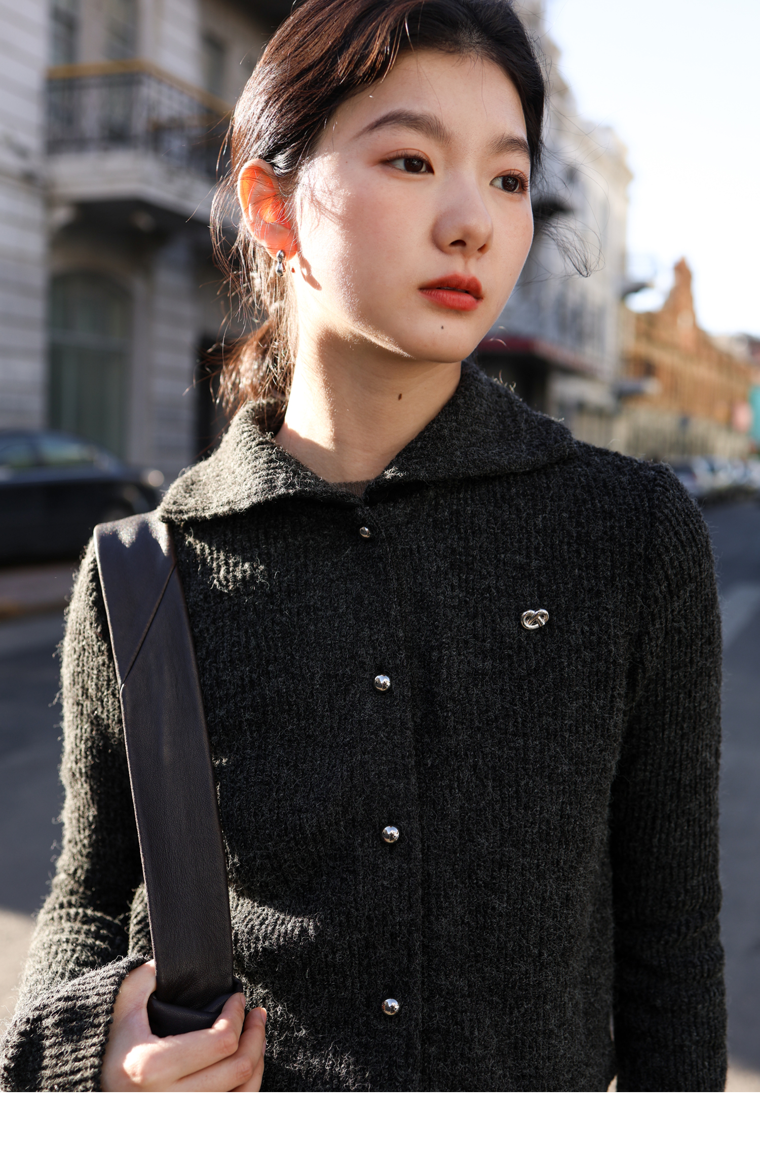 【反季清仓不退不换】精致碱水结肌理感坑条翻领针织短款小香开衫