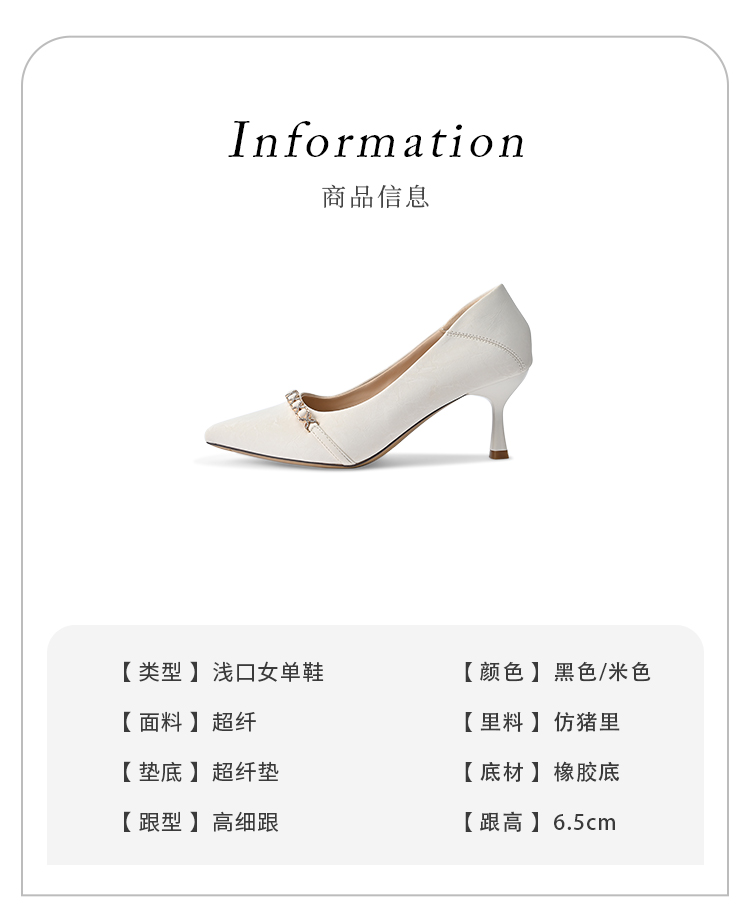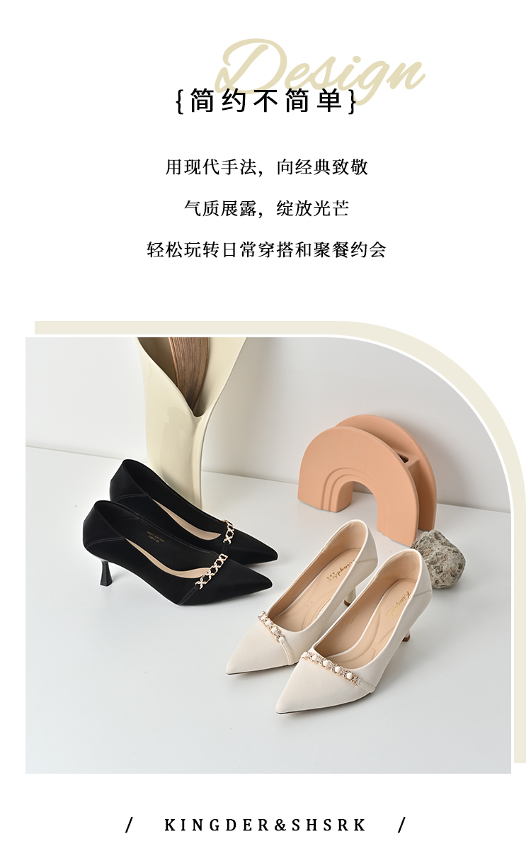 经典鲨2025秋季专柜新品优雅尖头一脚蹬6.5cm气质细高跟鞋女KW87-537101