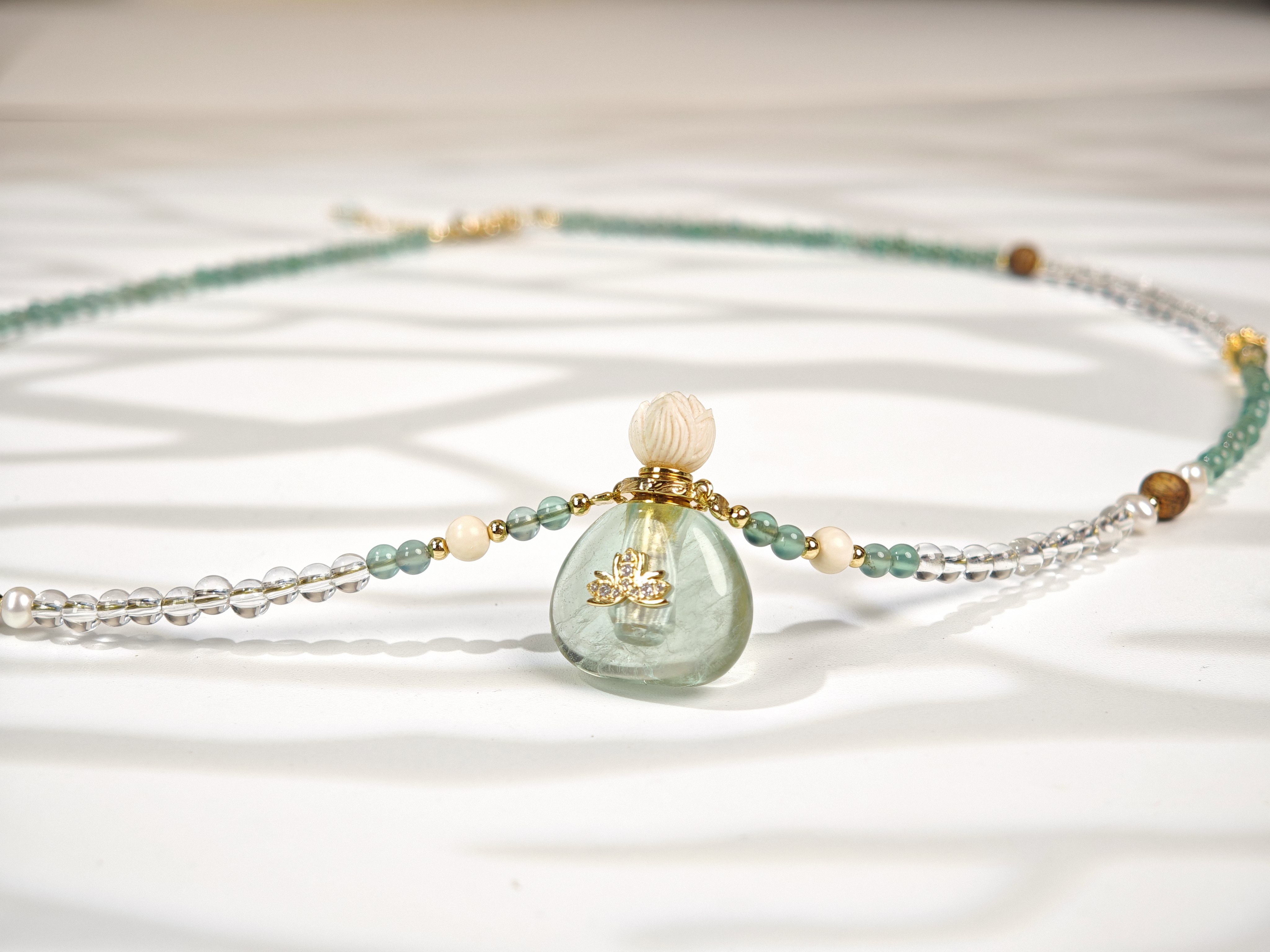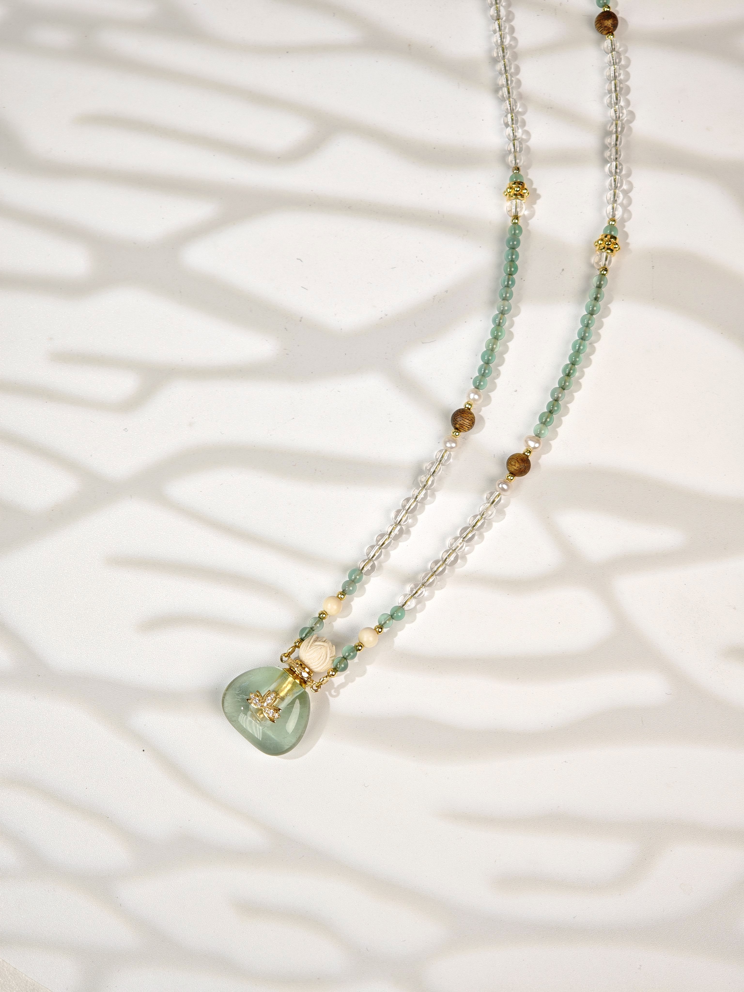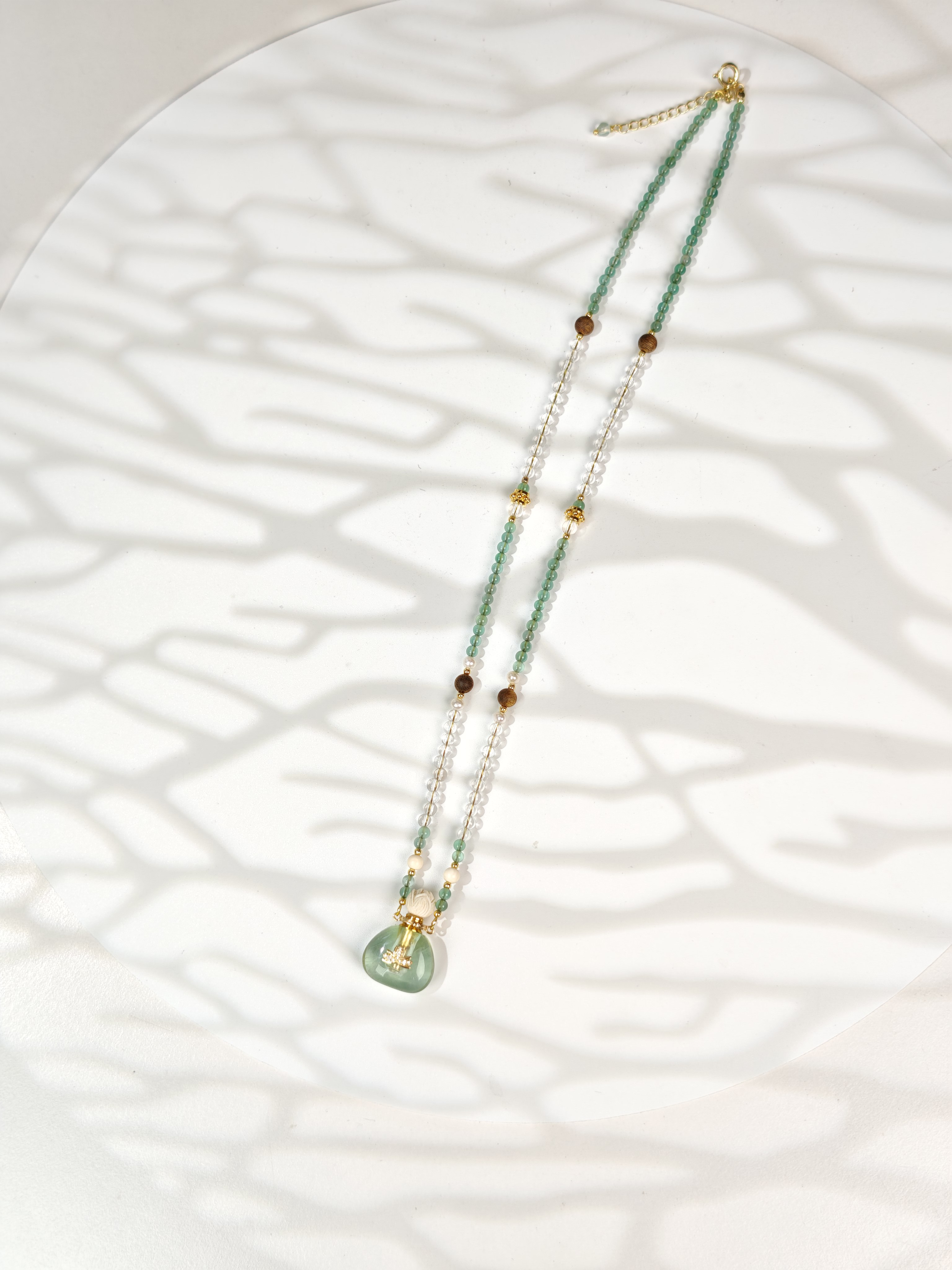 MELI&MOLI| 绿莹小号福袋镶莲花吊坠沉香珠点缀珠串项链