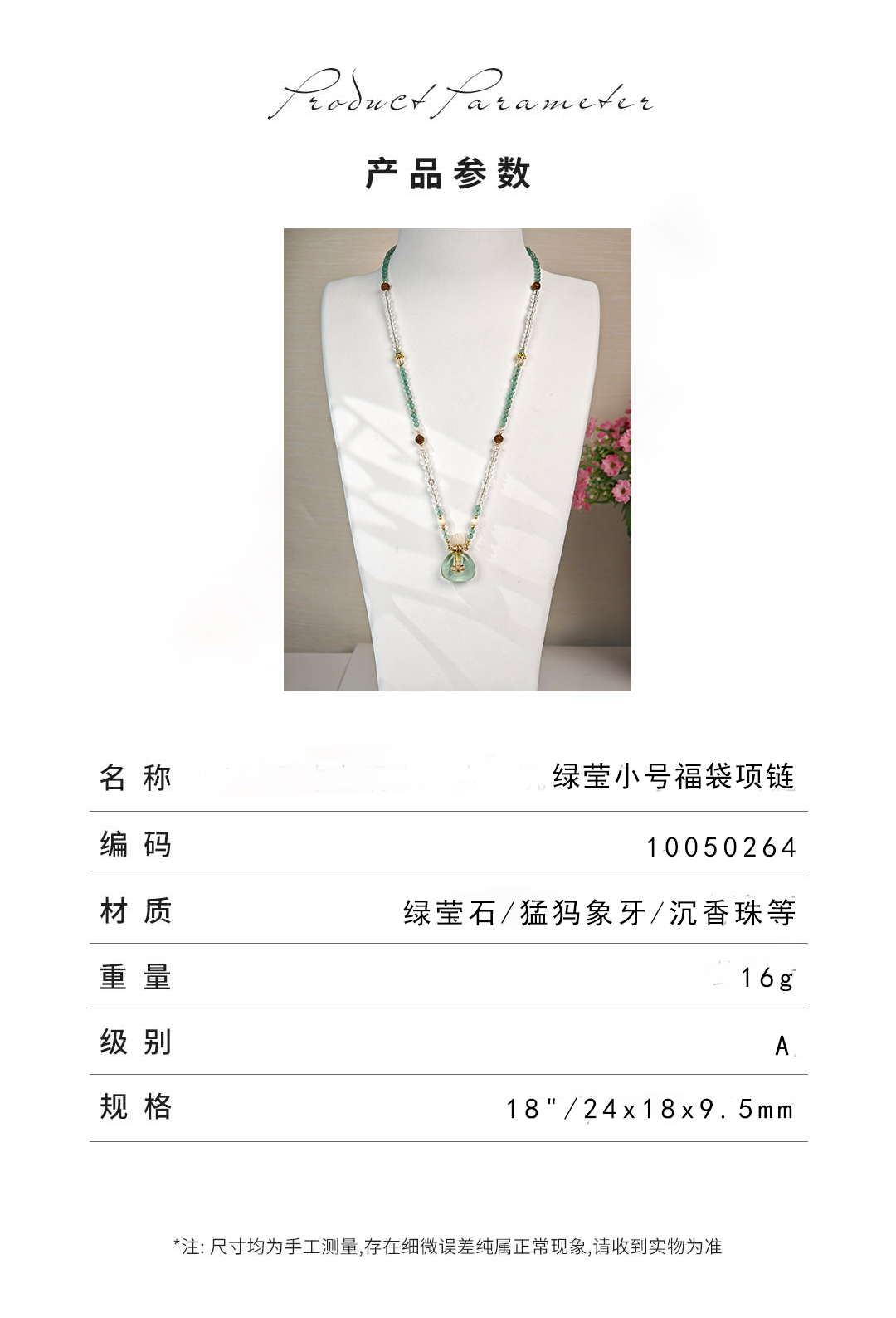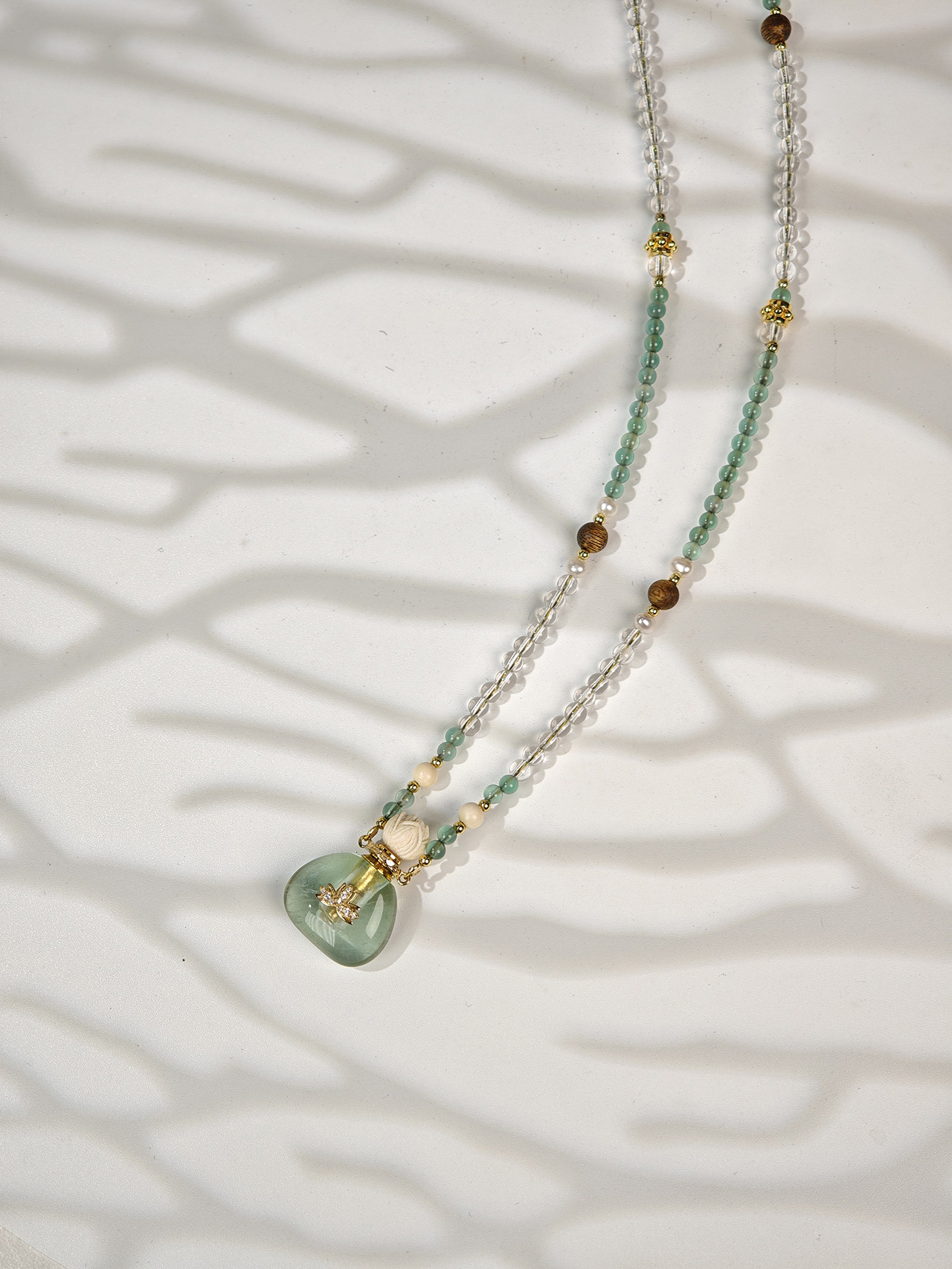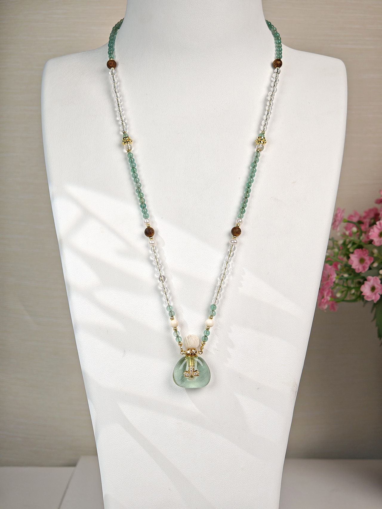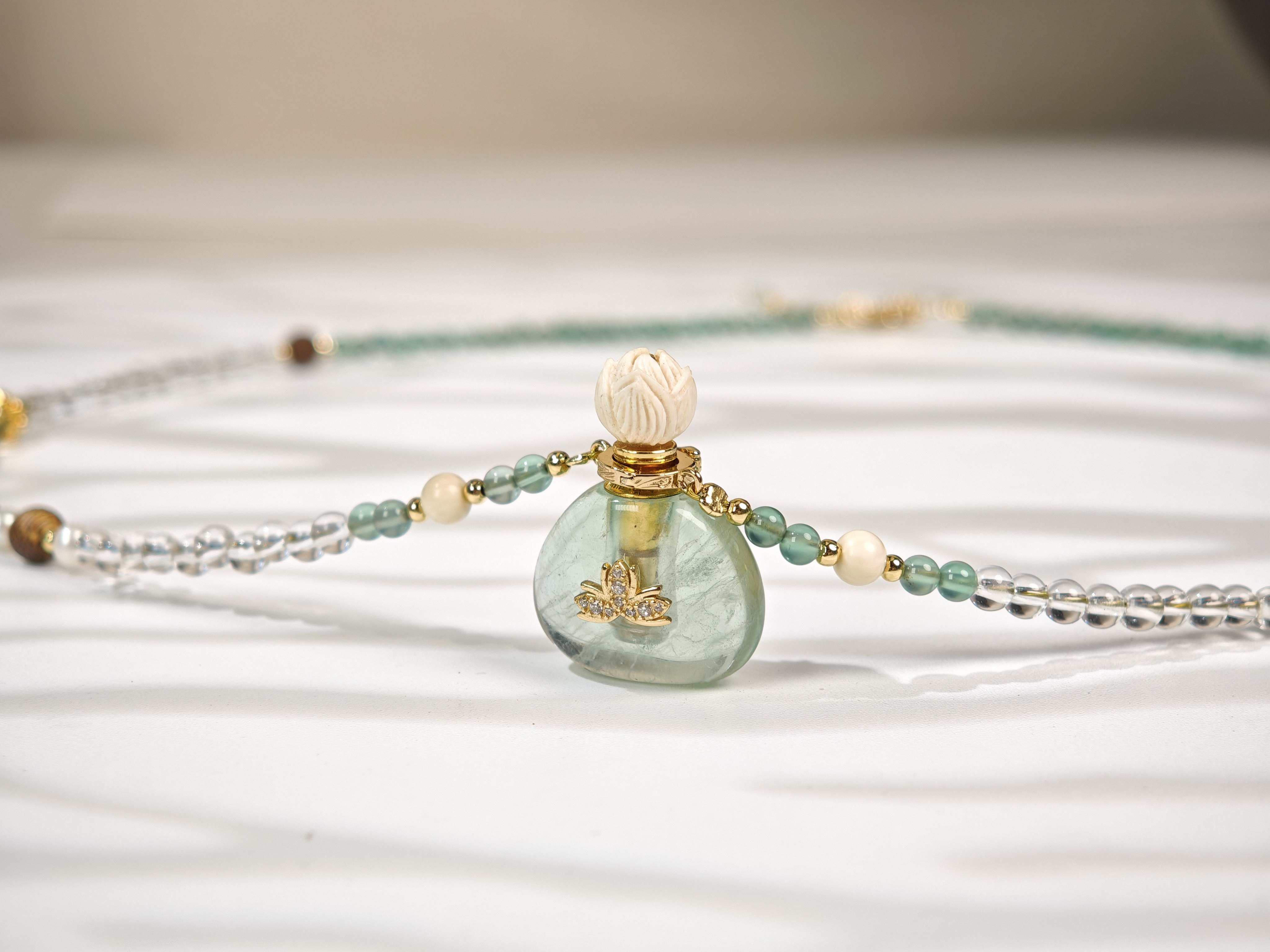 MELI&MOLI| 绿莹小号福袋镶莲花吊坠沉香珠点缀珠串项链