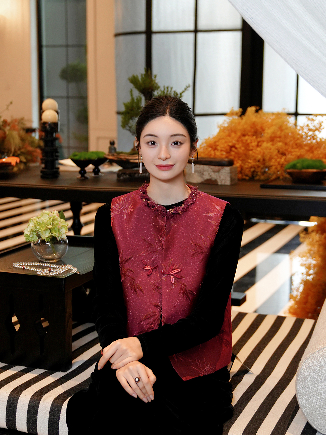 盛唐牡丹 | 文竹织金真丝漳缎马甲