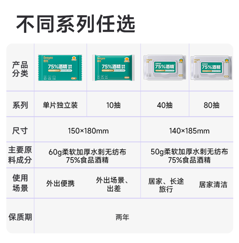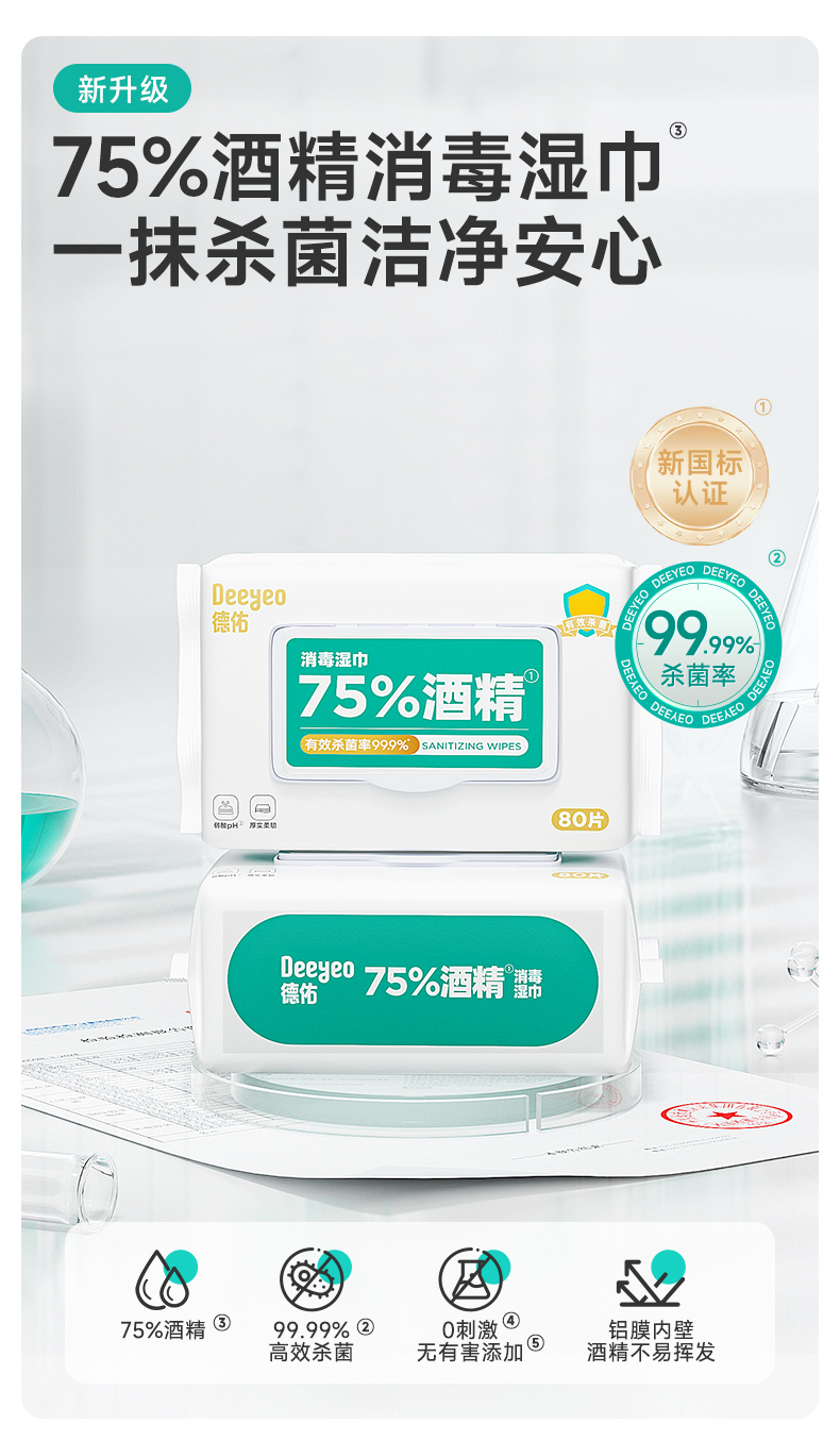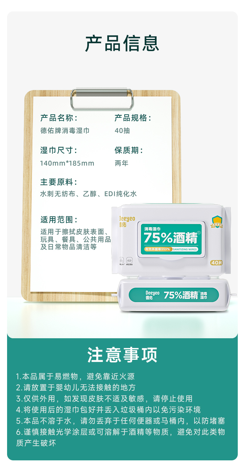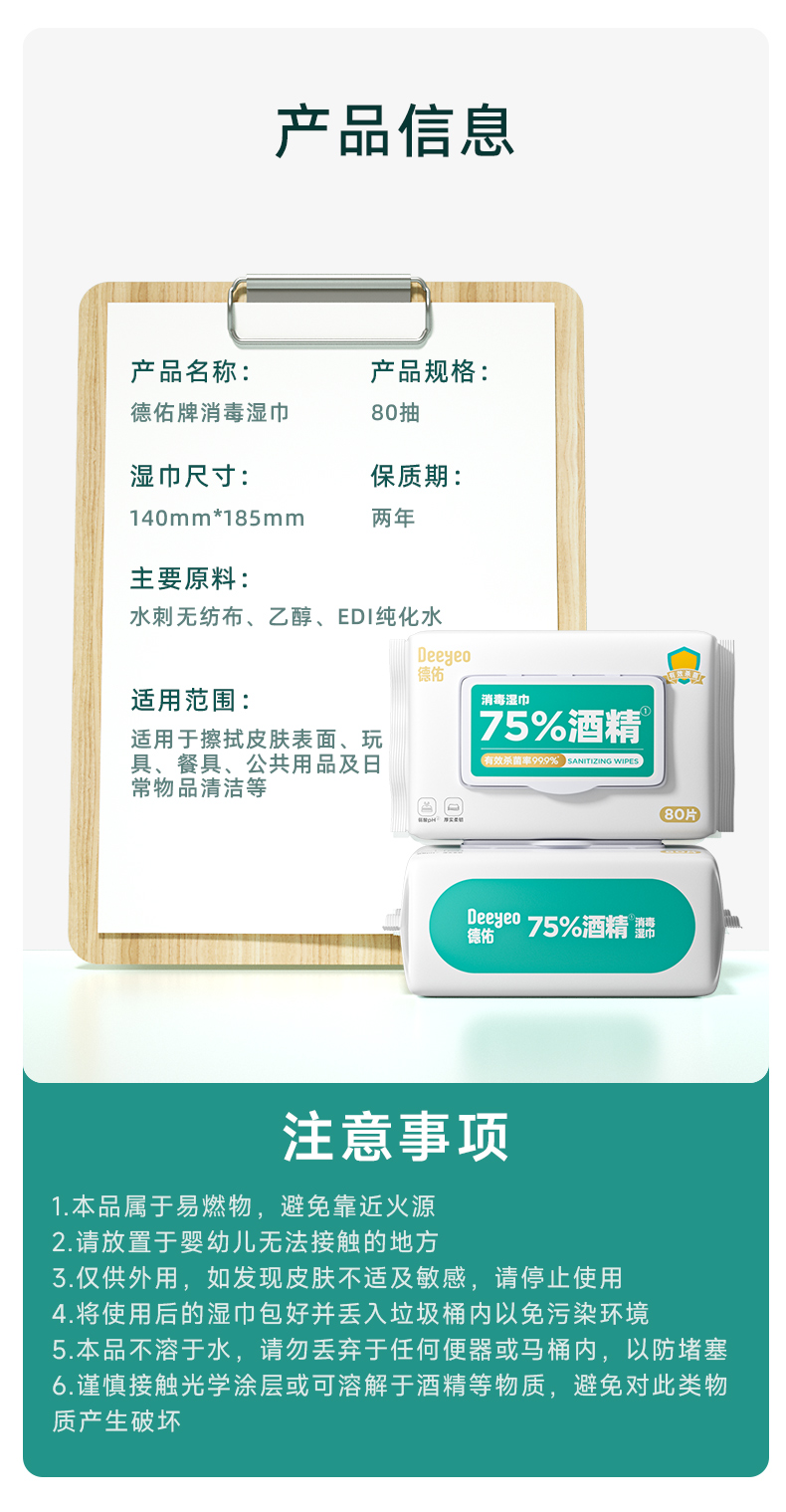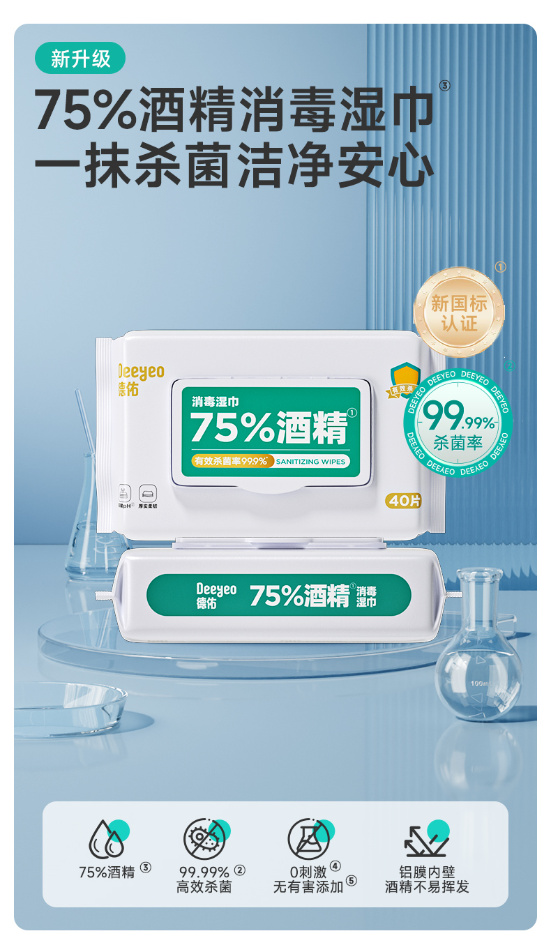 德佑75度酒精湿巾加厚家庭实惠大包装擦手40抽*4包/8包