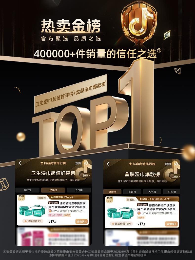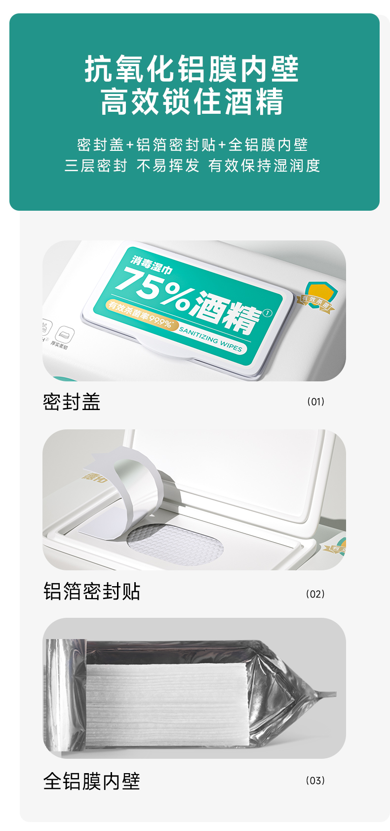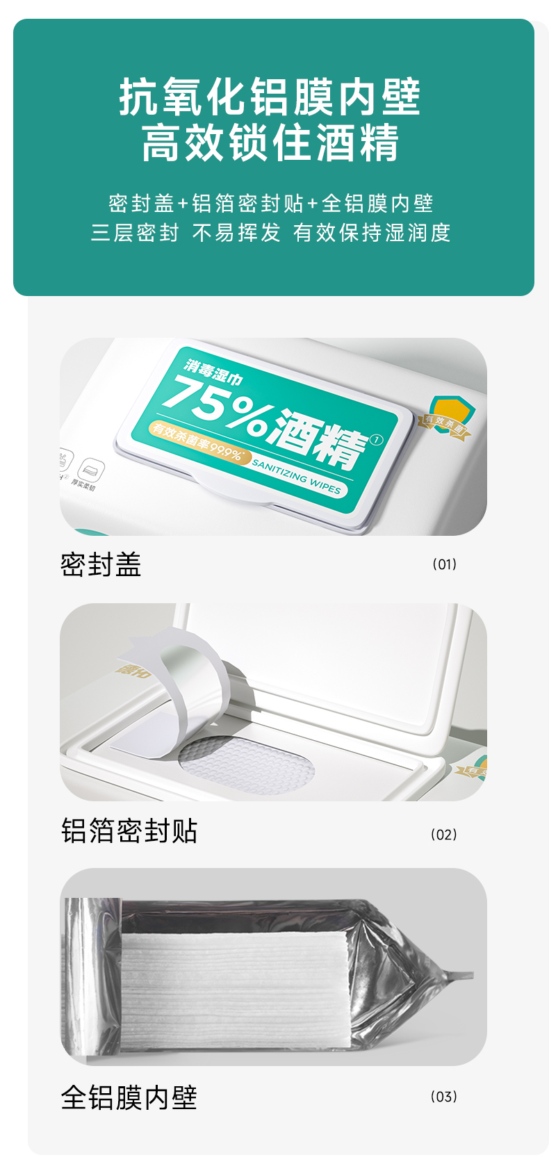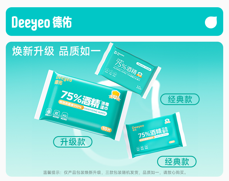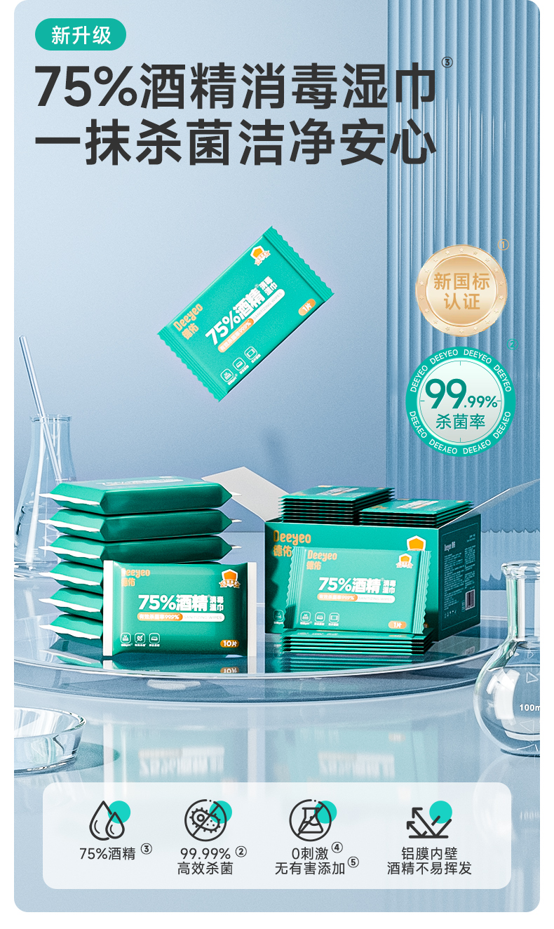 德佑75度酒精湿巾加厚家庭实惠大包装擦手40抽*4包/8包