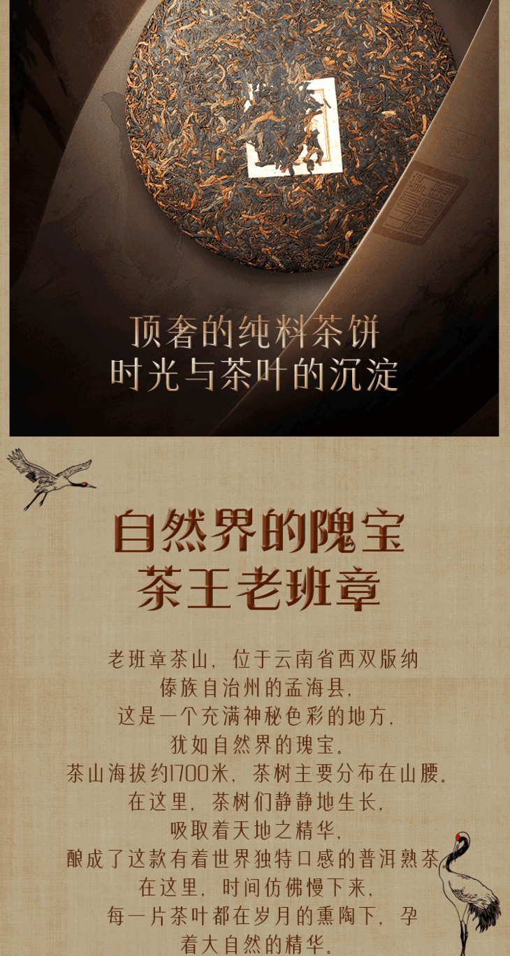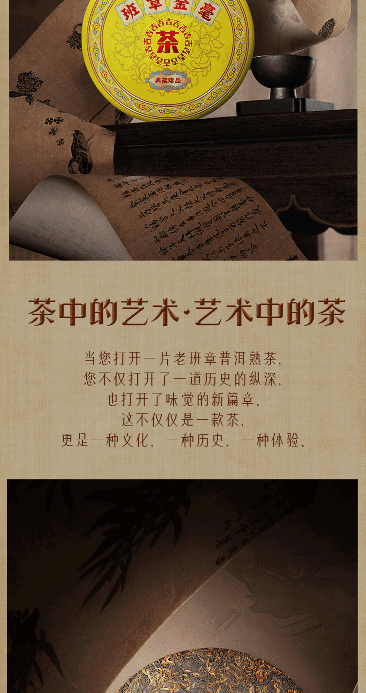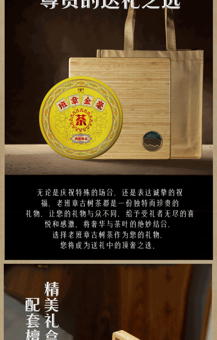 班章金毫普洱茶熟老班章古树普洱茶饼礼盒包装茶叶357g