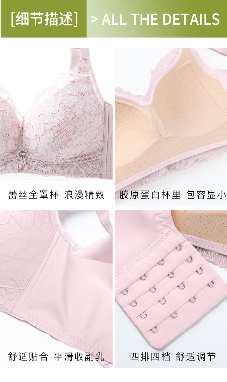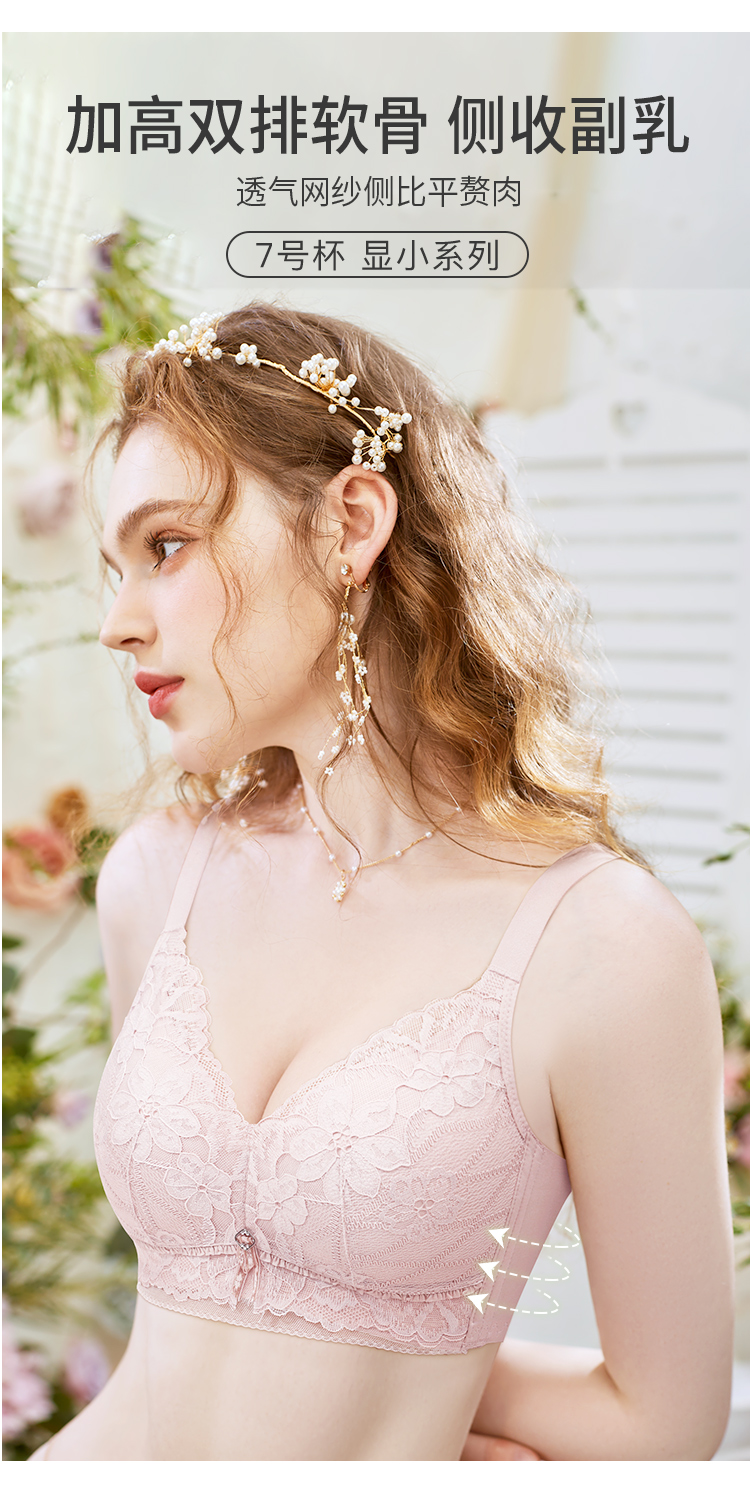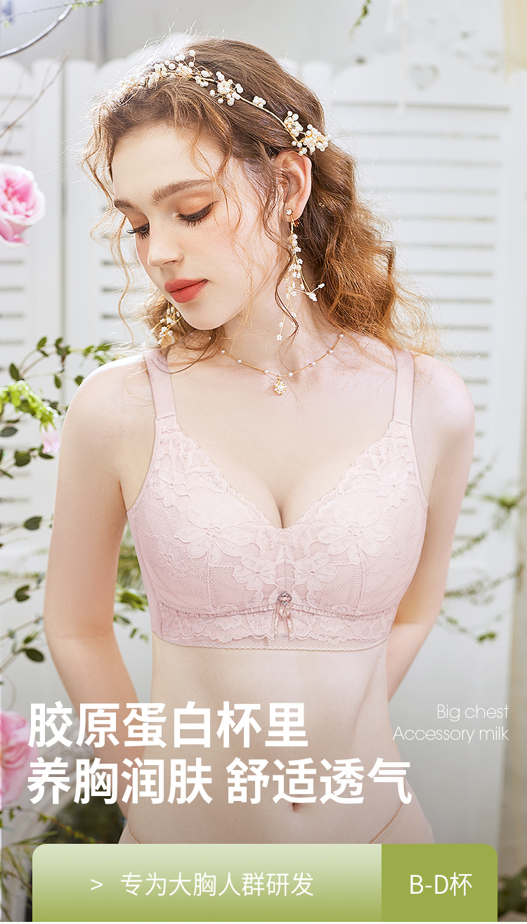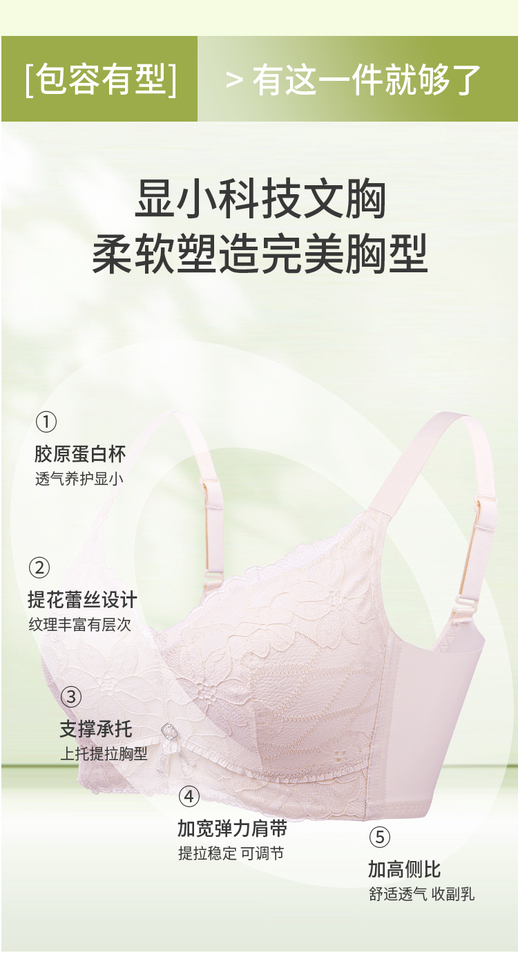 【298选3】【B-D杯】【高性价比】【大胸聚拢 胶原蛋白里杯润微大胸显小收副乳11cm高侧比文胸罩 素心暖云