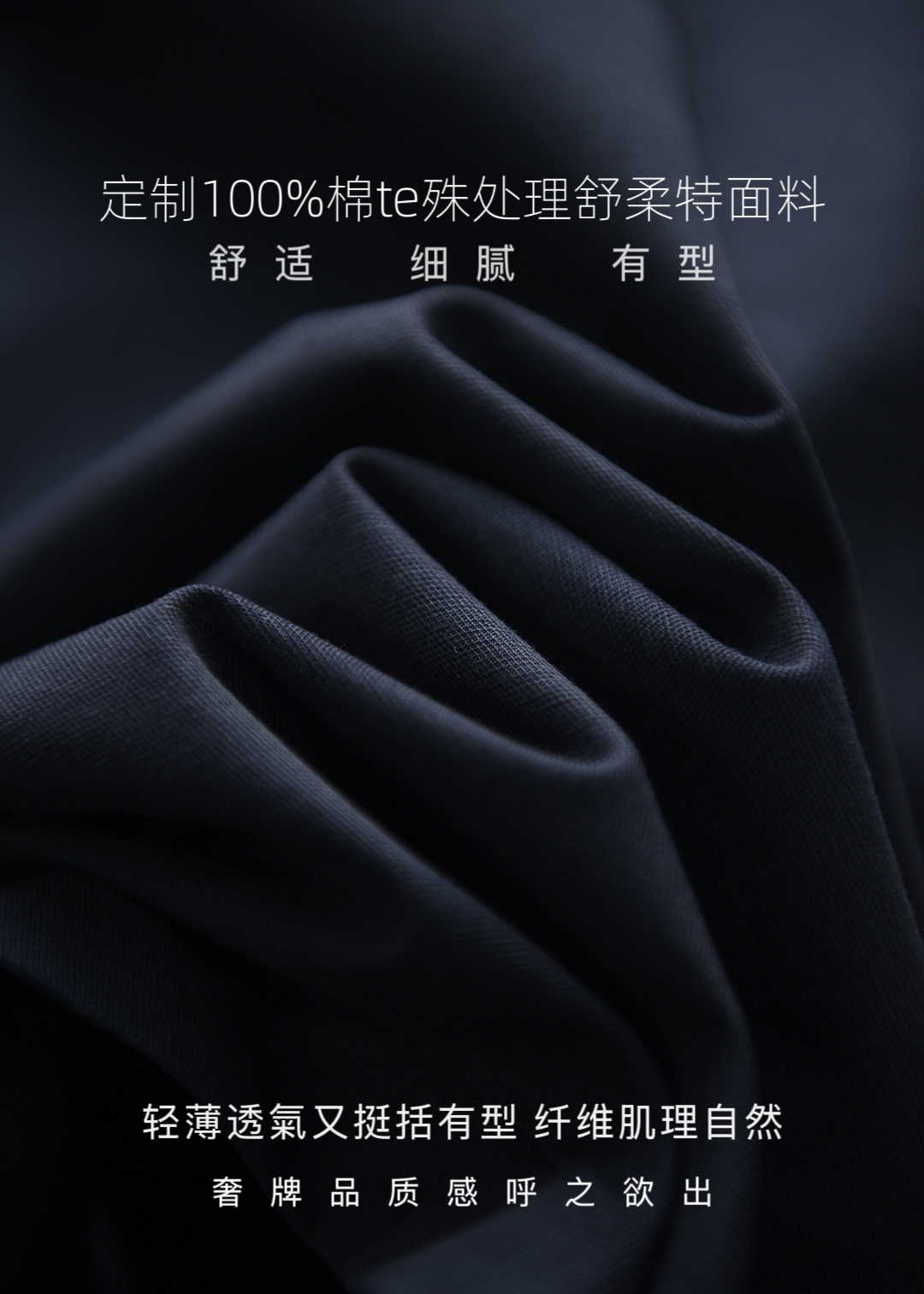 定制100%棉特殊处理舒柔特面料 轻薄透气又挺括有型。