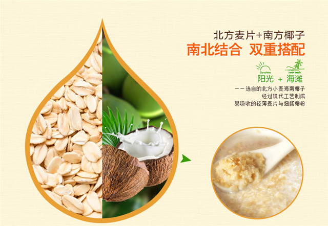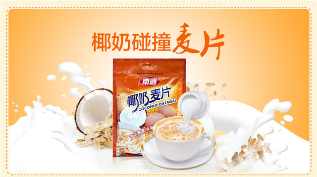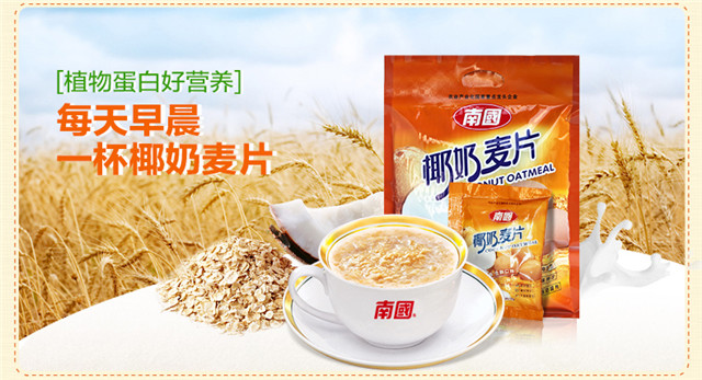 南国椰奶麦片精选北方优质燕麦与南方阳光椰子为原料。北方燕麦粒粒浓郁,得益于昼夜温差大、阳光充足、干旱少雨的独特气候,保留了大部分胚芽、胚乳和麸皮,营养更加丰富。而南方的椰子,则生长在气候温暖、雨水充沛、无工业污染的环境中,经过低温研磨,更大程度地保留了椰子的营养与风味。