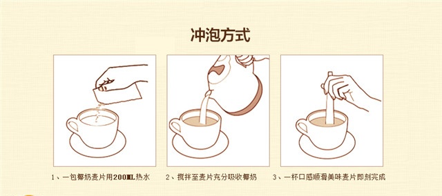 南国椰奶麦片,一大袋有20小包。早上醒来,热水泡上,1分钟轻松搞定快手早餐,暖暖的麦片入口香滑,每一口都能喝到浓醇的椰奶香!如果想要更丰富的口感,也可以搭配上水果坚果,更是美味升级,要是喜欢香脆脆的口感,直接拆袋开吃也很不错!而且,不仅仅是美味哦,麦片还含有丰富的植物蛋白及多种维生素和矿物质,而且0反式脂肪酸,放心吃!