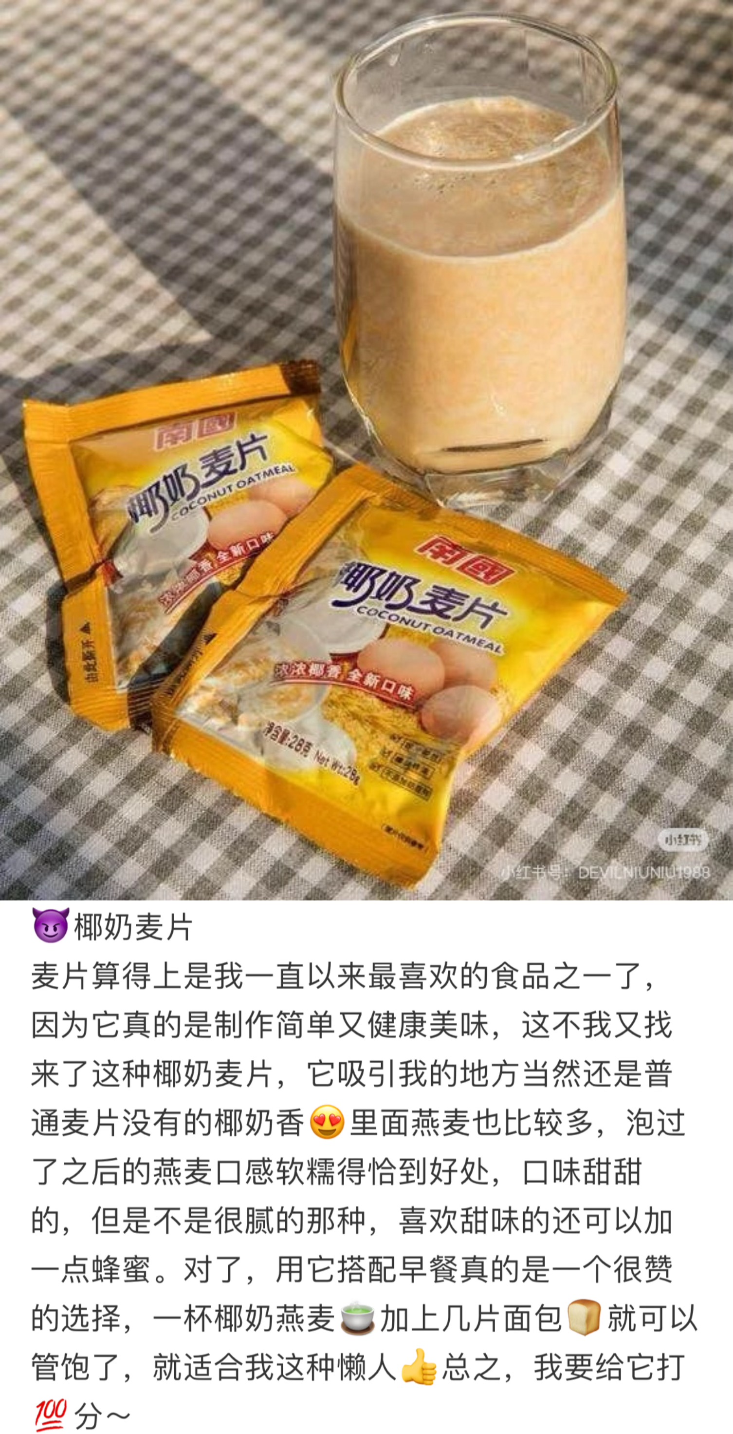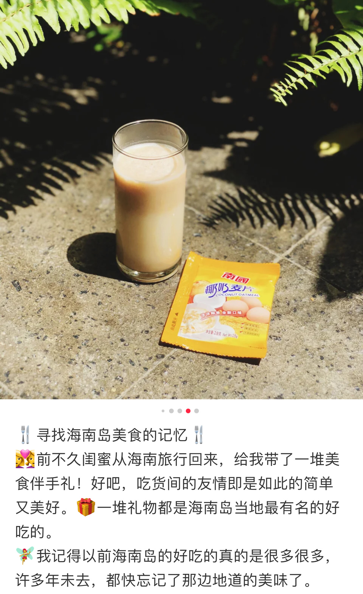 南国的新品来咯,朴实大包的椰奶麦片,将海南的椰子风情与北方的麦片精华完美融合,满满都是来自海岛的阳光与美味!是压扁的那种麦片哦,比较古早的,我妈超爱,所以试吃过的一袋我就留给她了,还有一袋去看外公外婆时,也带给他们,老人家是真爱喝!