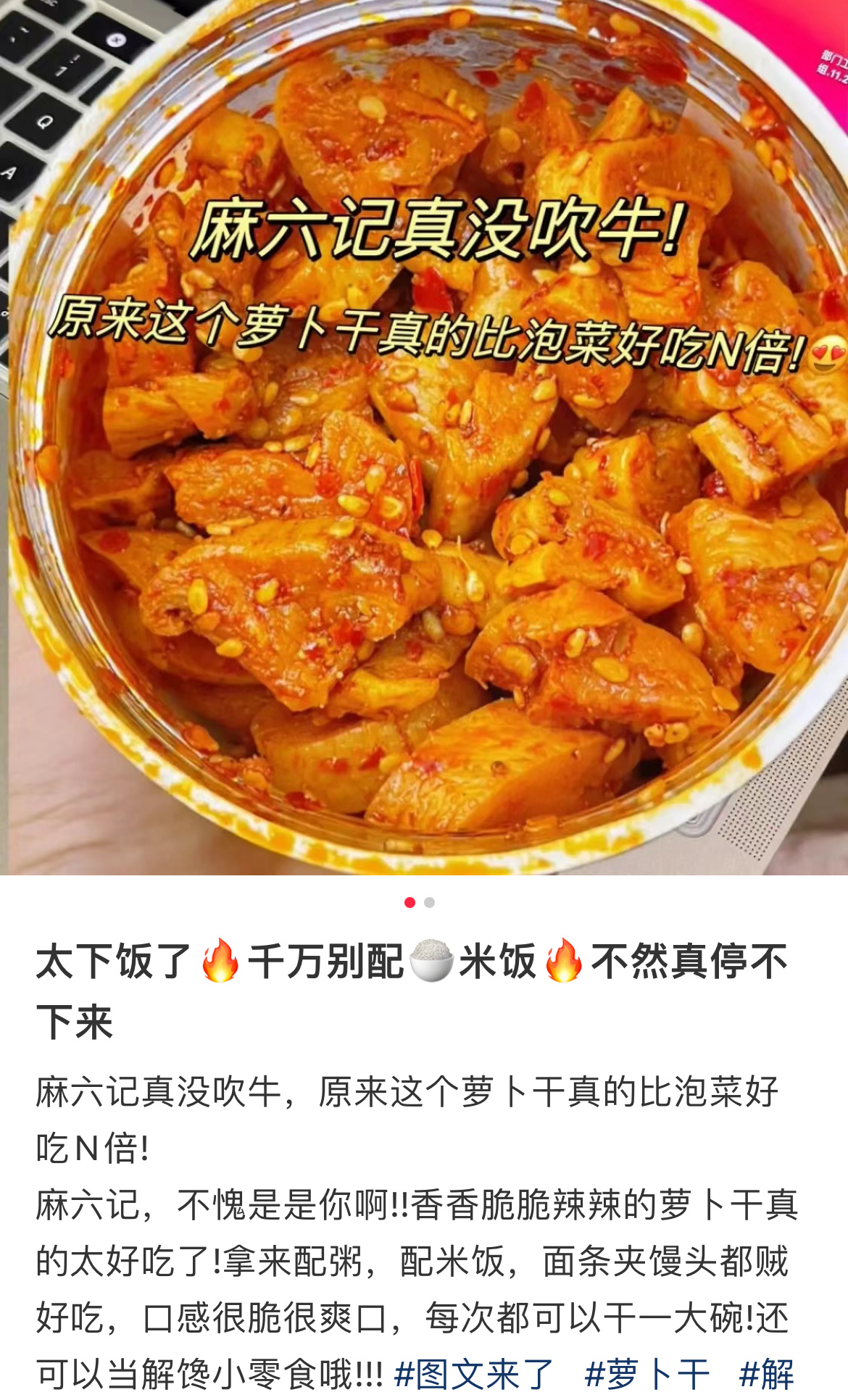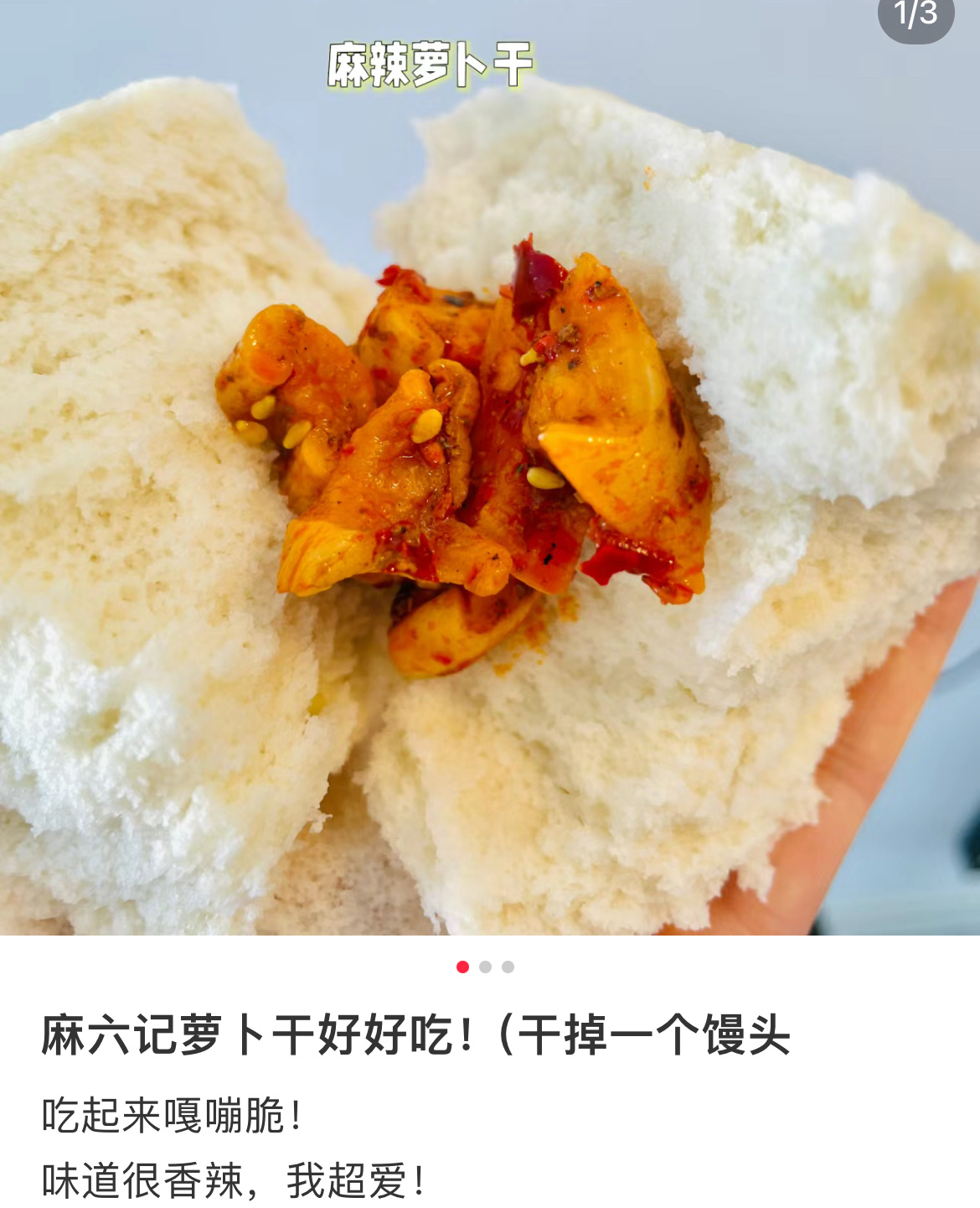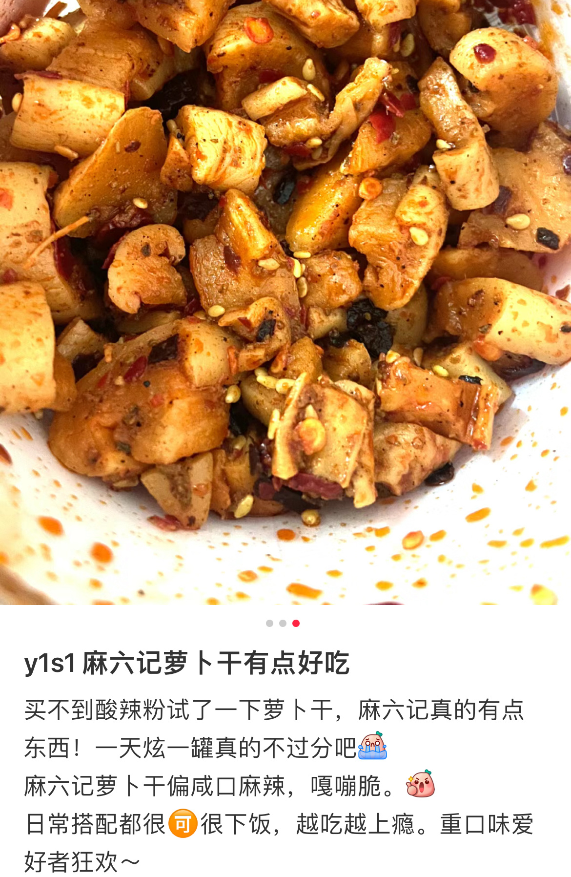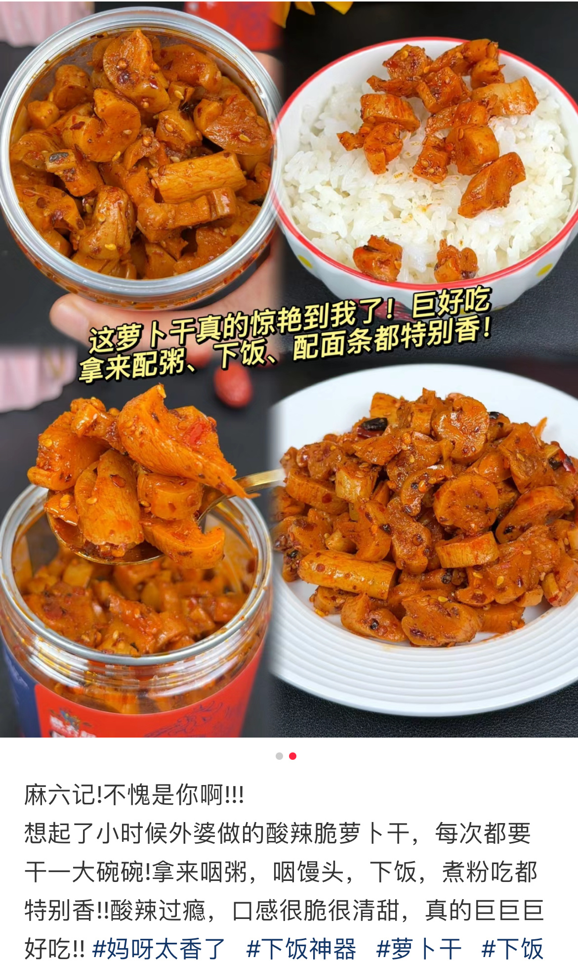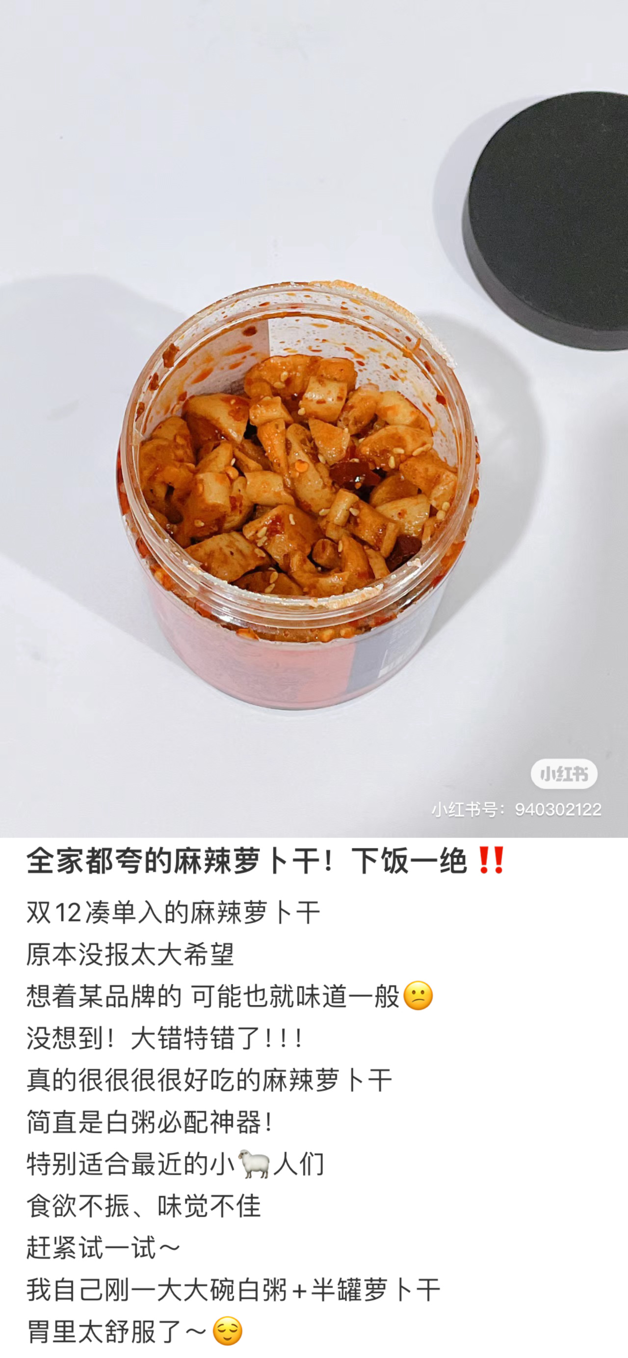 虽然汪前夫一家还蛮抓马的,但,麻六记的酸辣粉,有一说一,确实是不错吃!汤浓、粉滑、味够、料足,泡起来也是非常方便,一杯下去,鼻涕眼泪哗哗,很上头!顺便把拌粥拌饭一绝的辣味萝卜干和饭前饭后午后都可以来一瓶的满满料杨枝甘露,也上一上,也蛮优秀的!