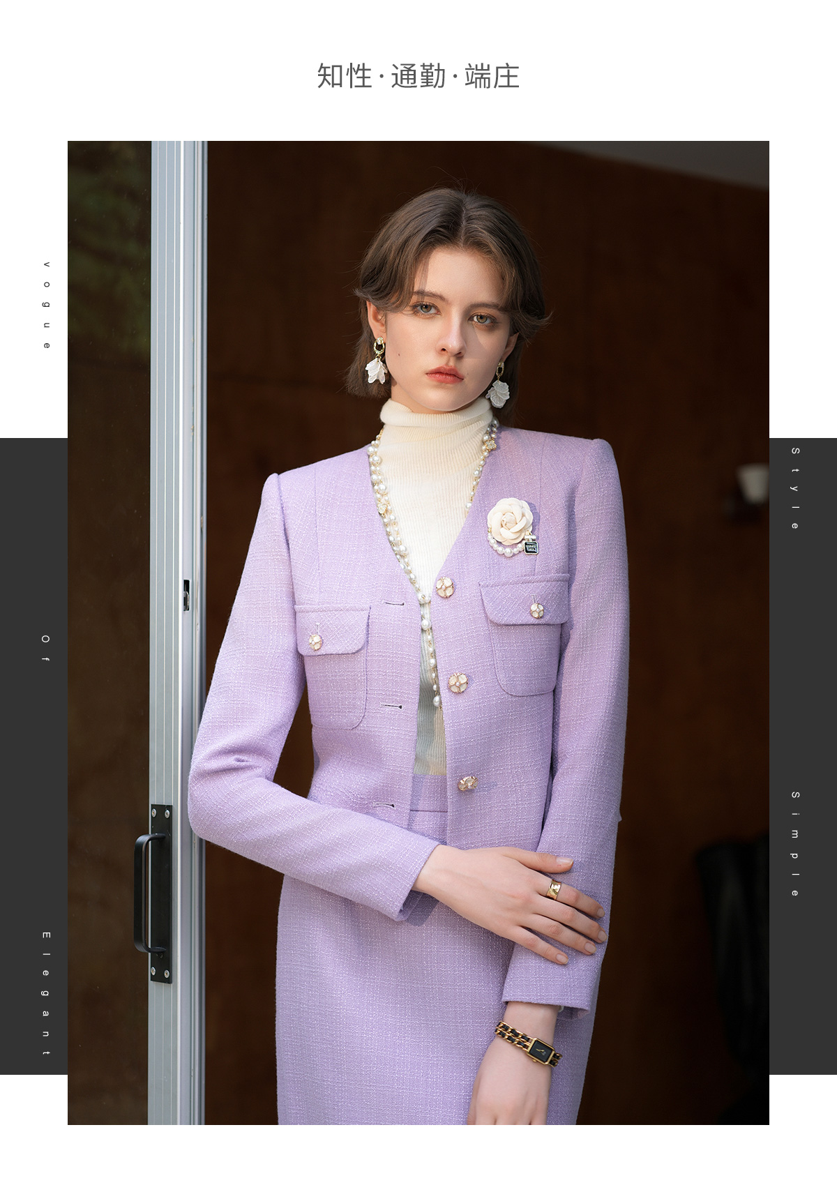 AD紫色小香风套装2024新款女装秋季高端女神范贵妇名媛两件套裙