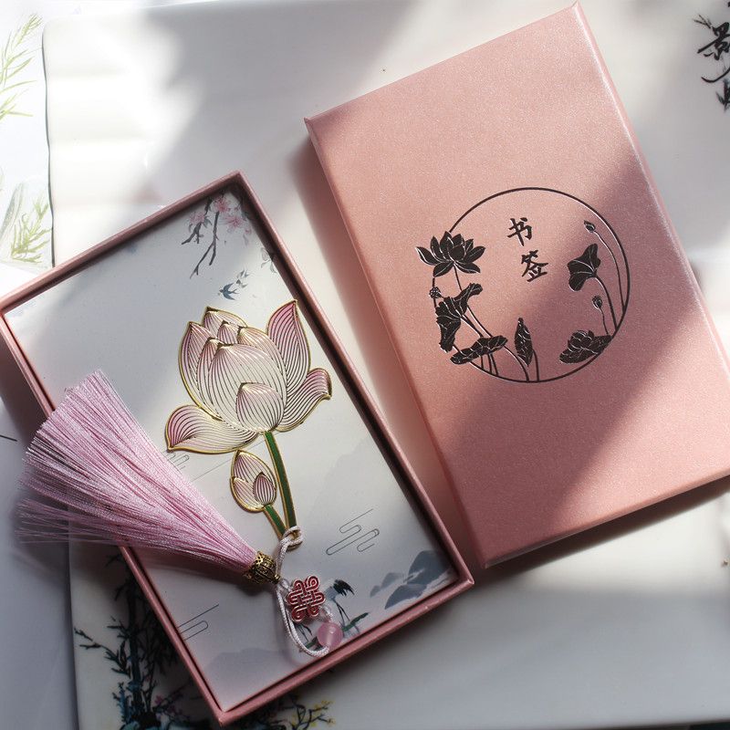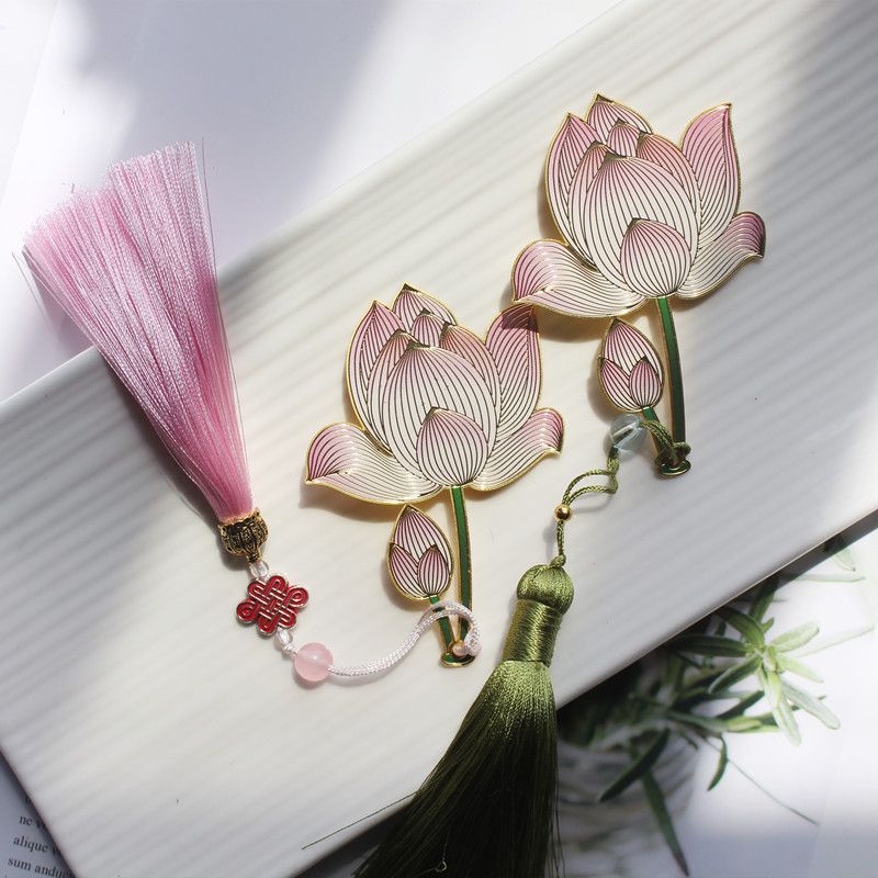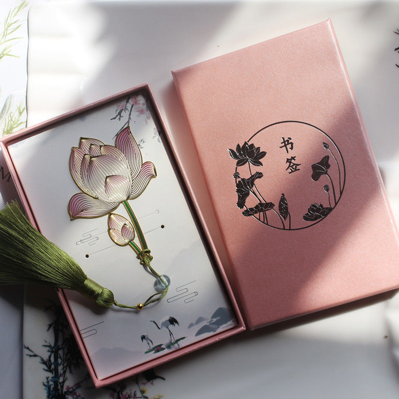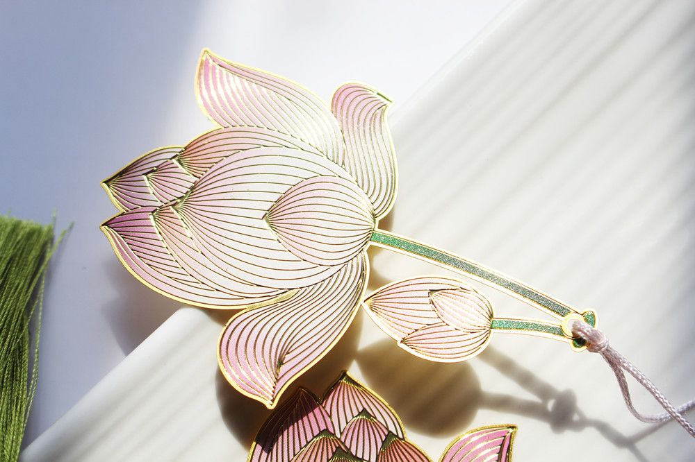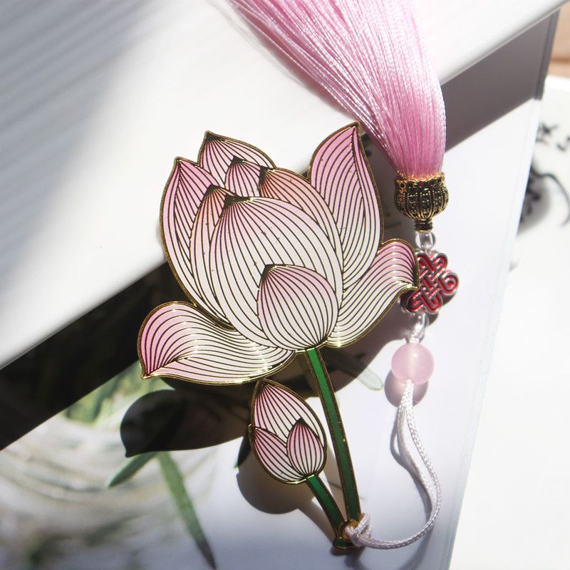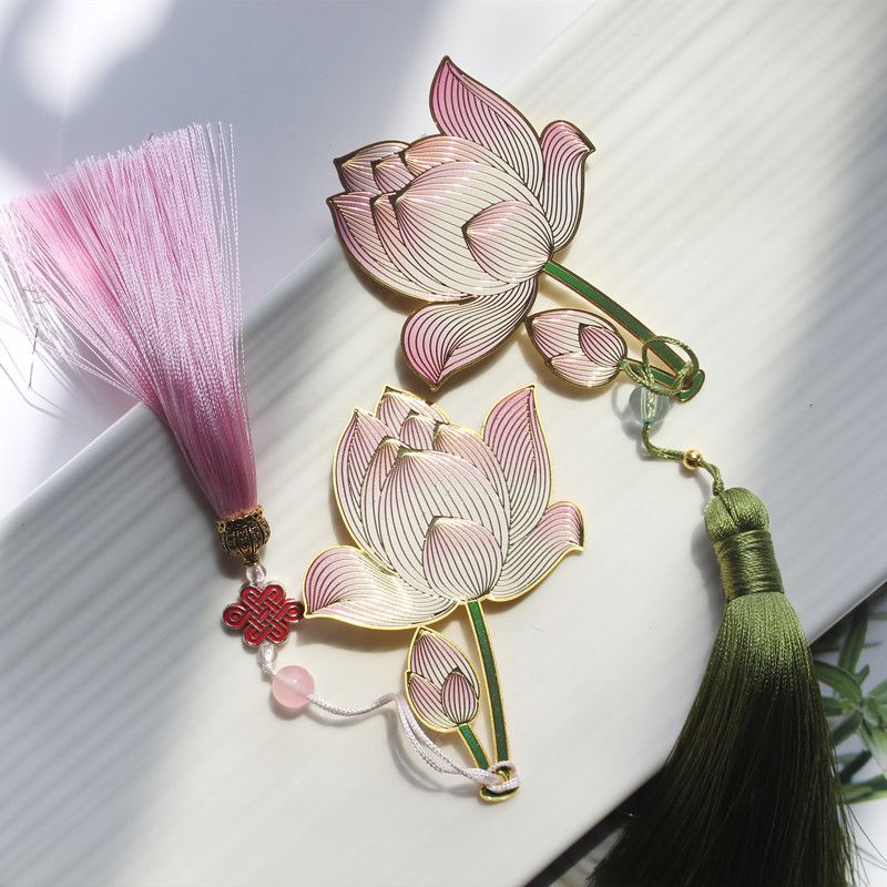 菡萏花开荷花金属黄铜彩色精美创意古典中国风吊坠书签节日礼品