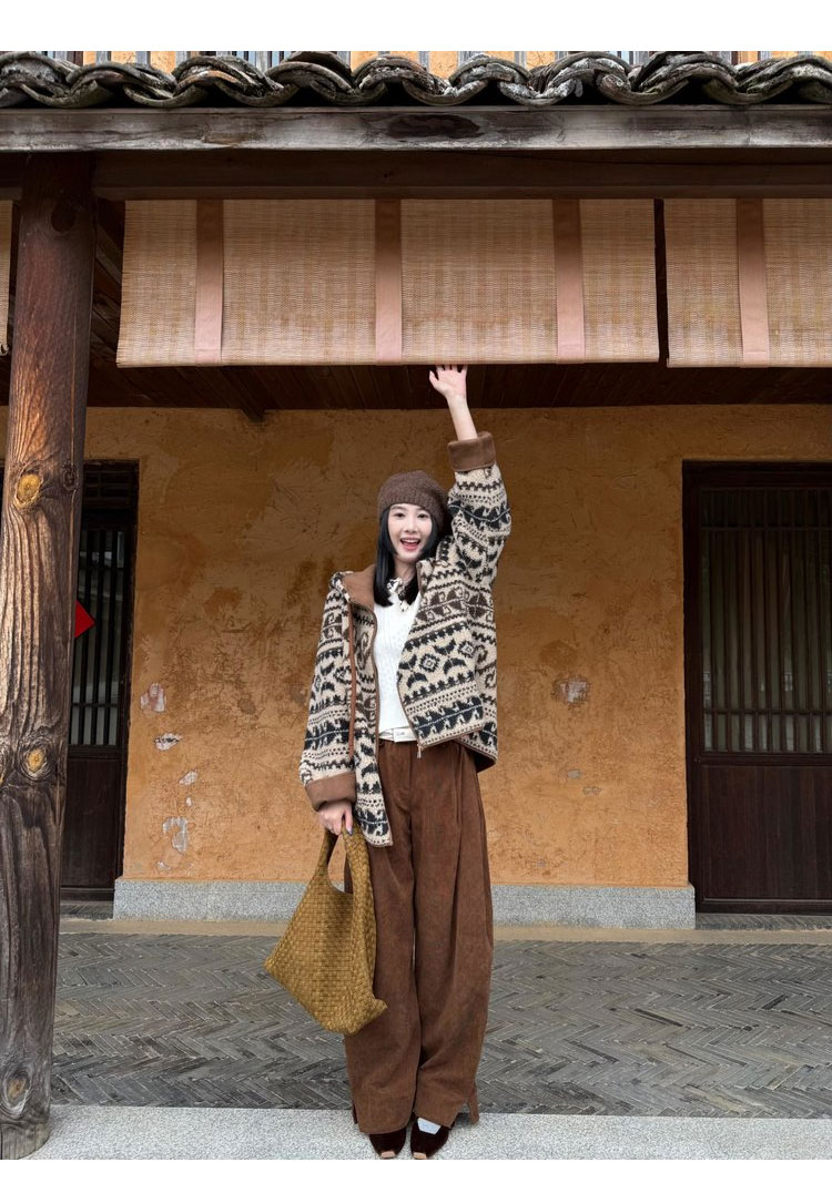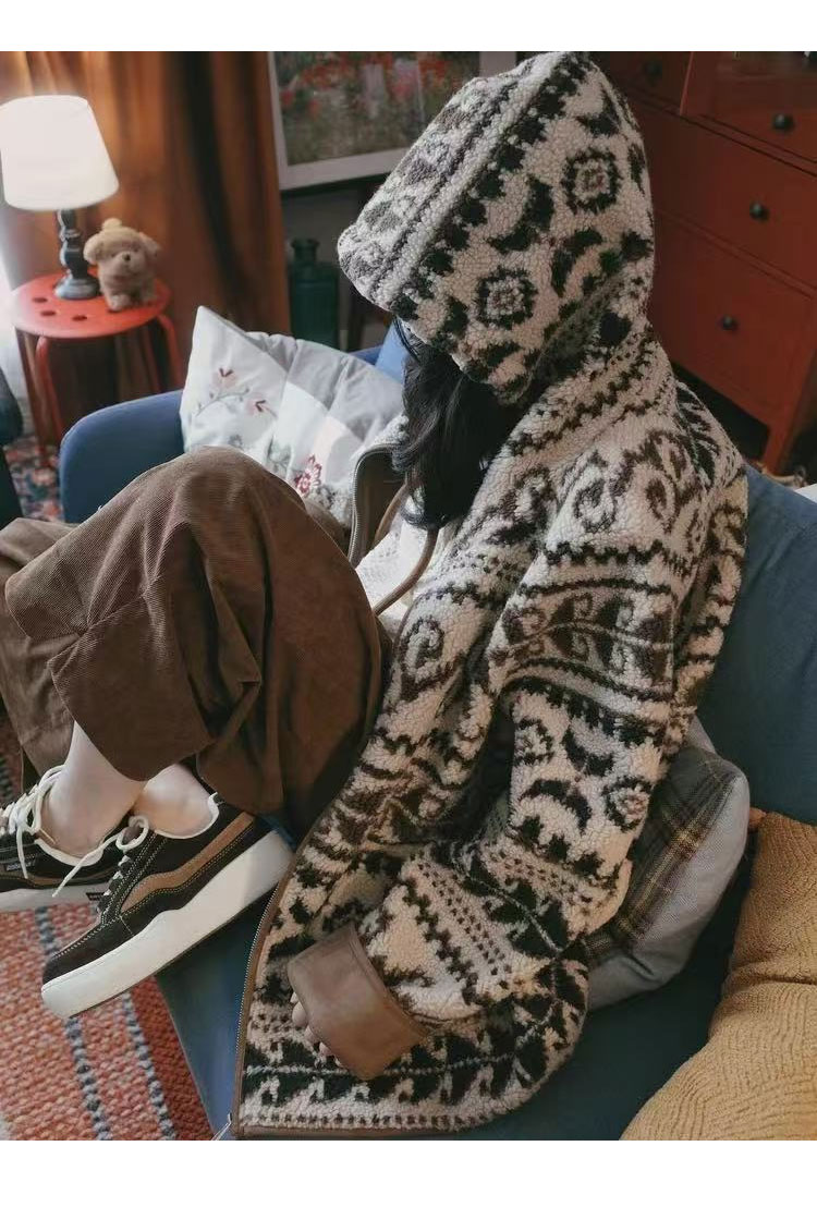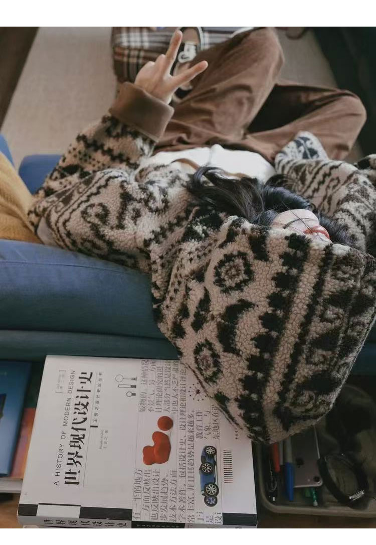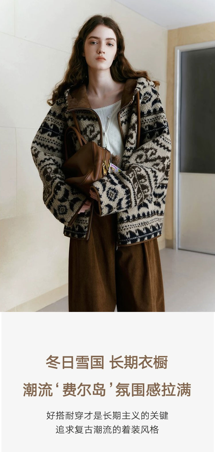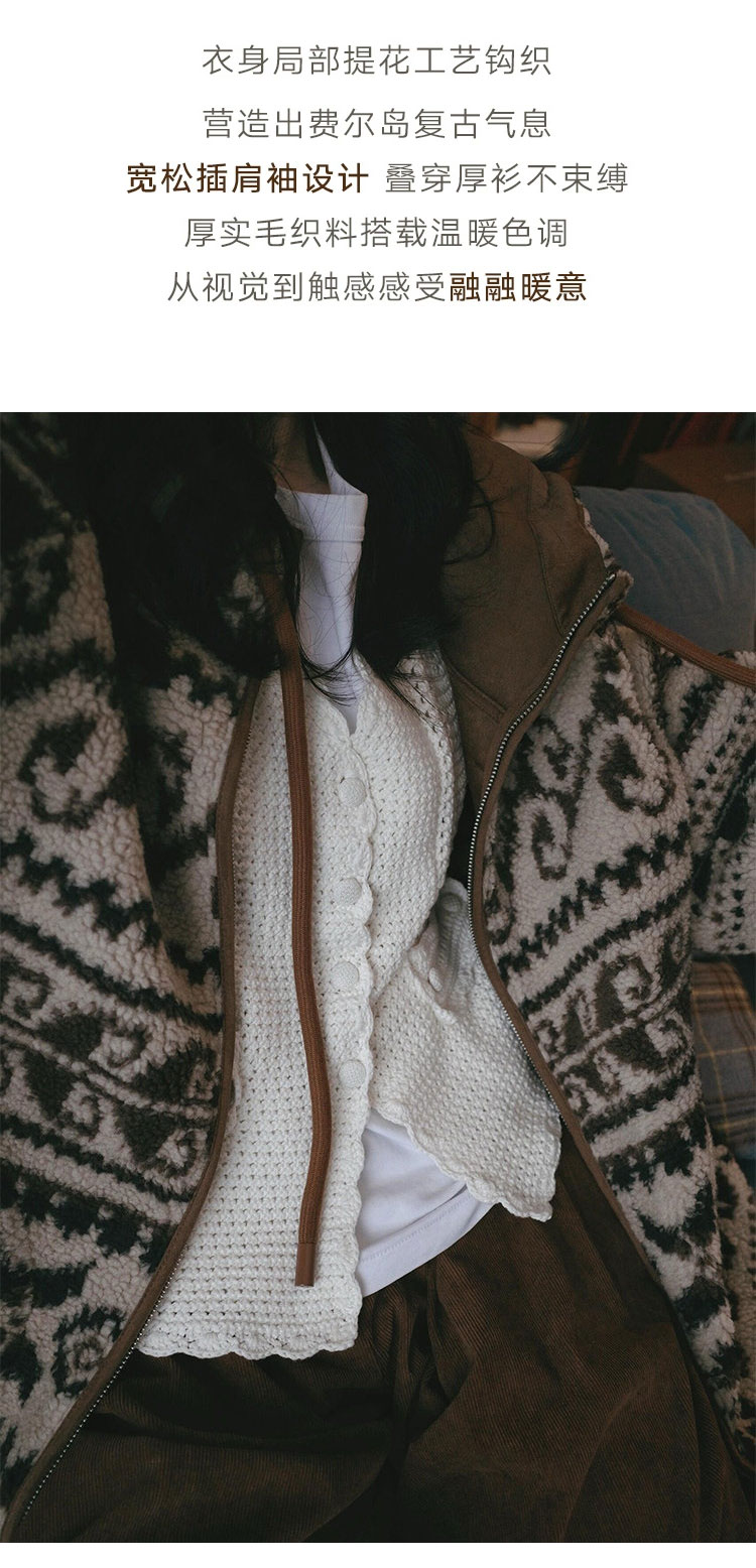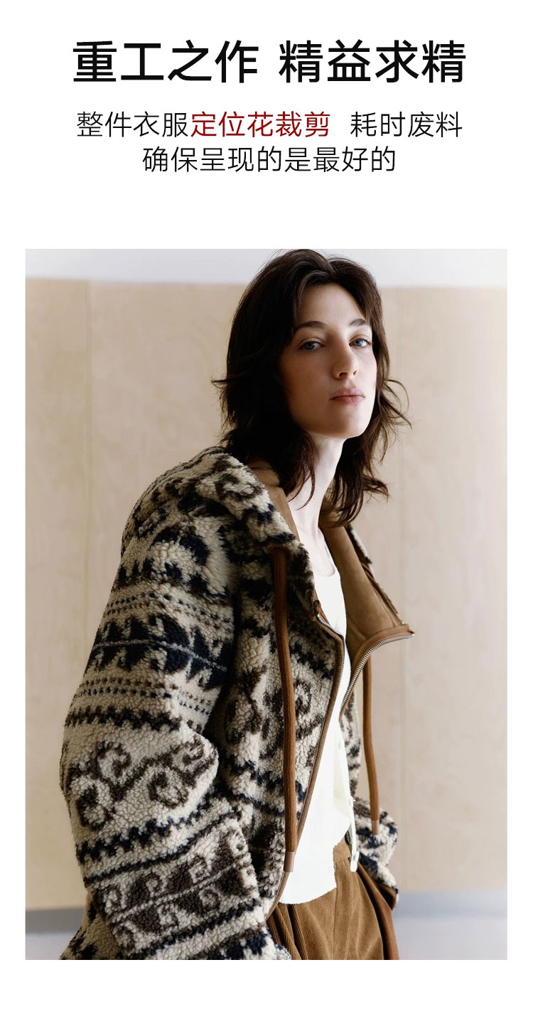 【爆单3-7发货】游牧风费尔岛毛绒外套,重磅780G提花色织环保羊羔毛+皮毛一体环保麂皮绒 层次感很好,超有游牧风氛围,高级感拉满~出片就靠它!