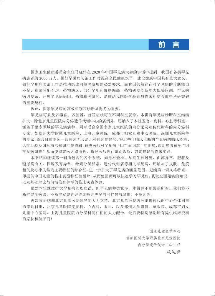 《儿童罕见病( 辑)》是《儿童罕见病》系列书籍的 辑,由全国多家儿童医院的内分泌及遗传代谢科的内分泌科专家,综合临床一线医师尤其是儿科医师的经验,将近年临床诊断的罕见病的临床资料、诊疗经验及国际前沿知识汇集编写而成。本辑文体依旧,包括概述、流行病学、发生机制、临床表现、诊断、鉴别、治疗及遗传咨询几个部分。收录内容既涵盖DIYI辑的部分章节如身材矮小、早期生长过度、面部异常、肥胖及糖尿病、性腺发育异常、激素分泌异常、遗传代谢病等,又增加了皮肤、免疫相关及以心律失常为主要特征的综合征,进一步扩大了罕见病的病种范围。