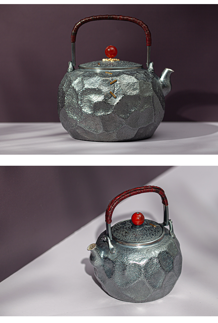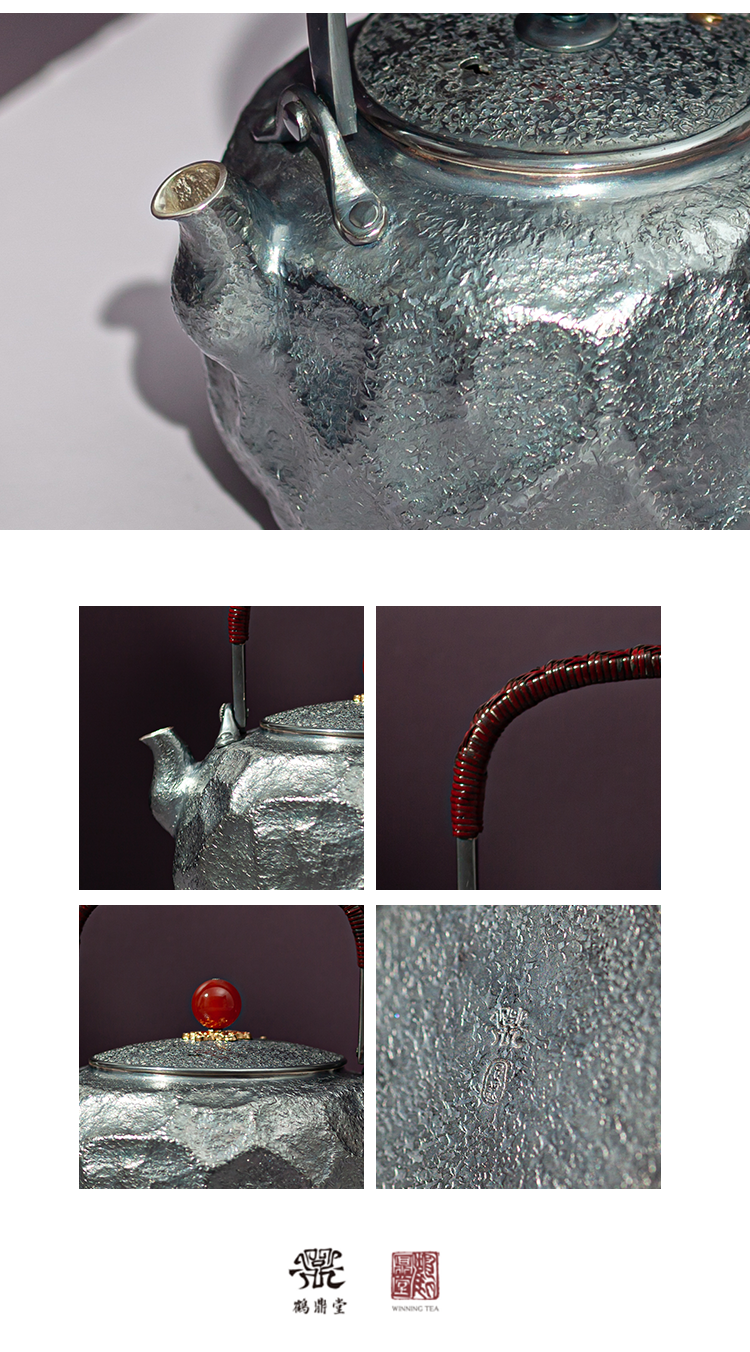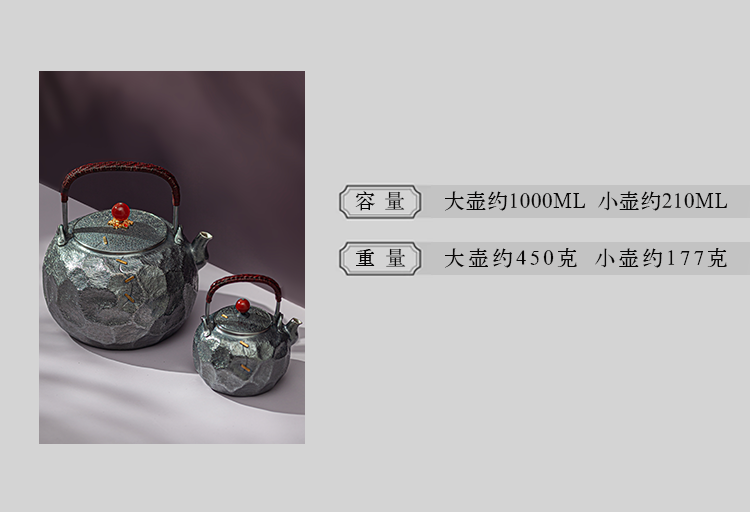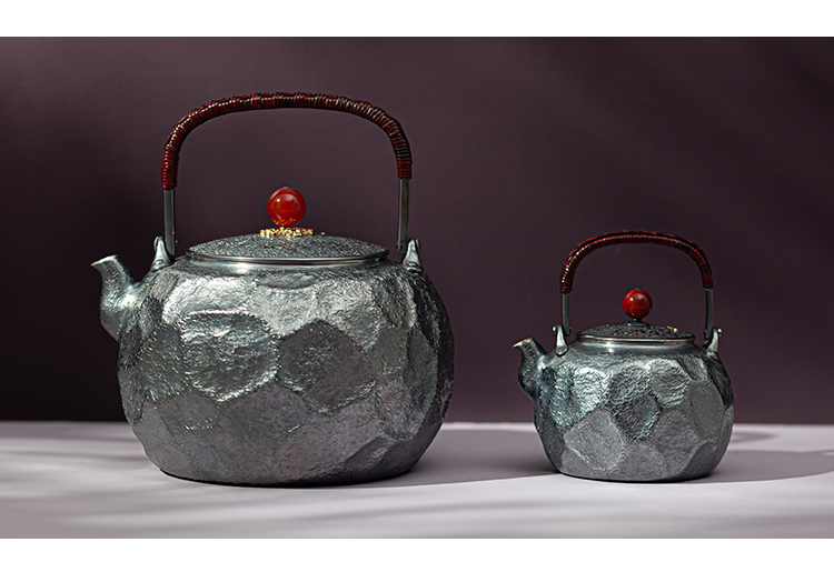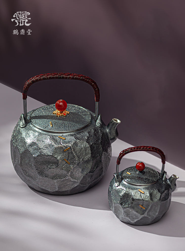鹤鼎堂银壶于野系列天作石纹肌理急须(灰青)(缺货)