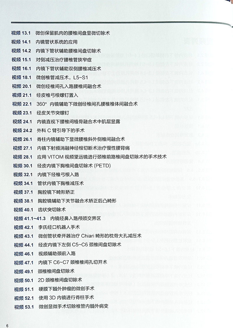 本书包含 1000 多张图像,包括手术照片和医学插图等。此外,随书视频包含说明脊柱病理和手术的实际病例,视频范围从案例演示到逐步的技术演示。这些图像、视频和附带的解释便于读者理解,并为新手和经验丰富的外科医生提供了实质性的指导。本书包括如何更好地进行胸椎手术入路,以及如何有效地清除可能引起症状性椎间孔狭窄的病变、钙化的椎间盘和骨赘。书中不仅讨论了这些流程和技术,而且每个部分都提供了如何避免手术并发症的建议。
